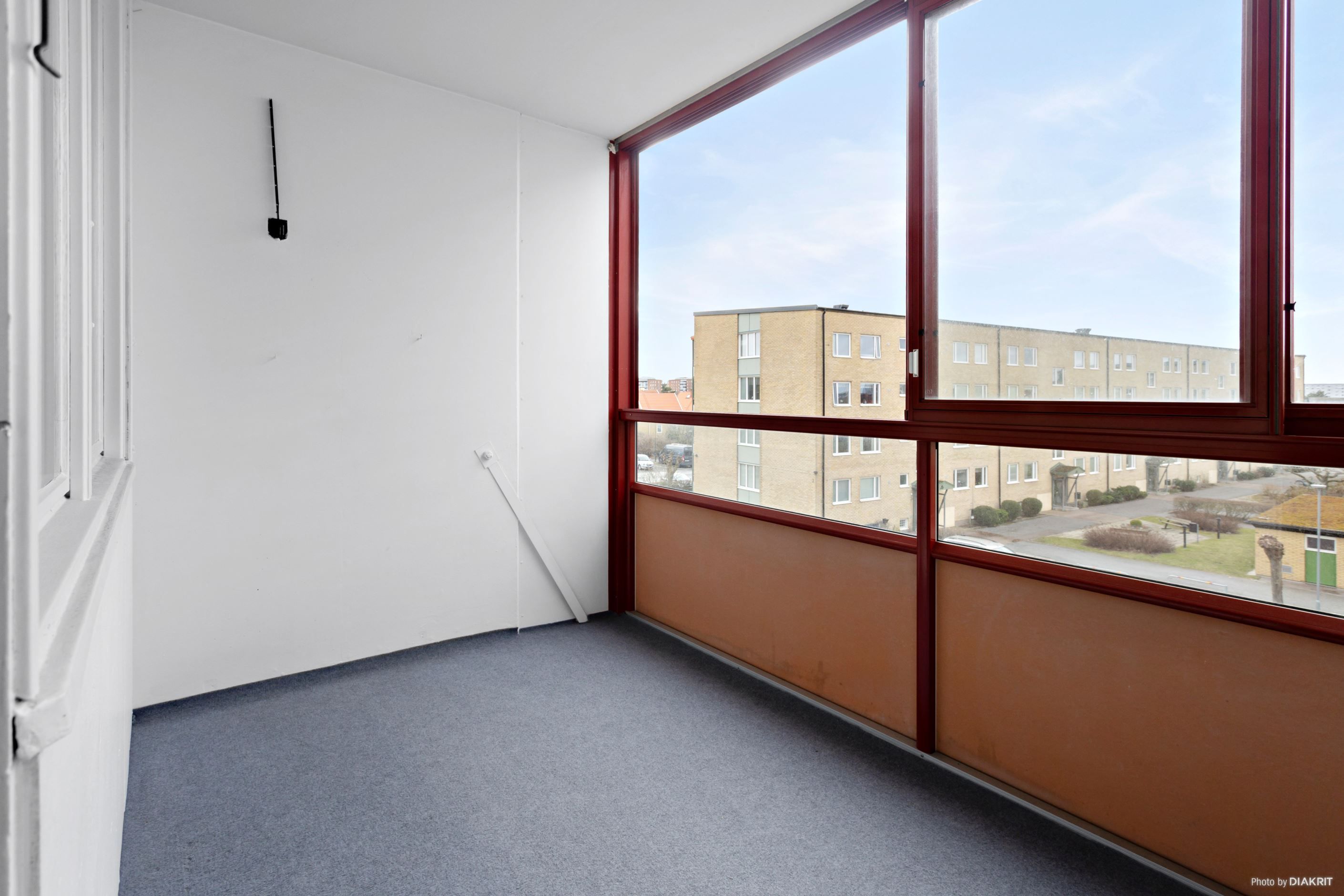 Den inglasade balkongen erbjuder ytterligare en trivsam yta med plats för möblering efter behov. De stora glaspartierna ger ett fint ljusinsläpp och en öppen vy mot omgivningen, vilket gör detta till en uppskattad plats året om.