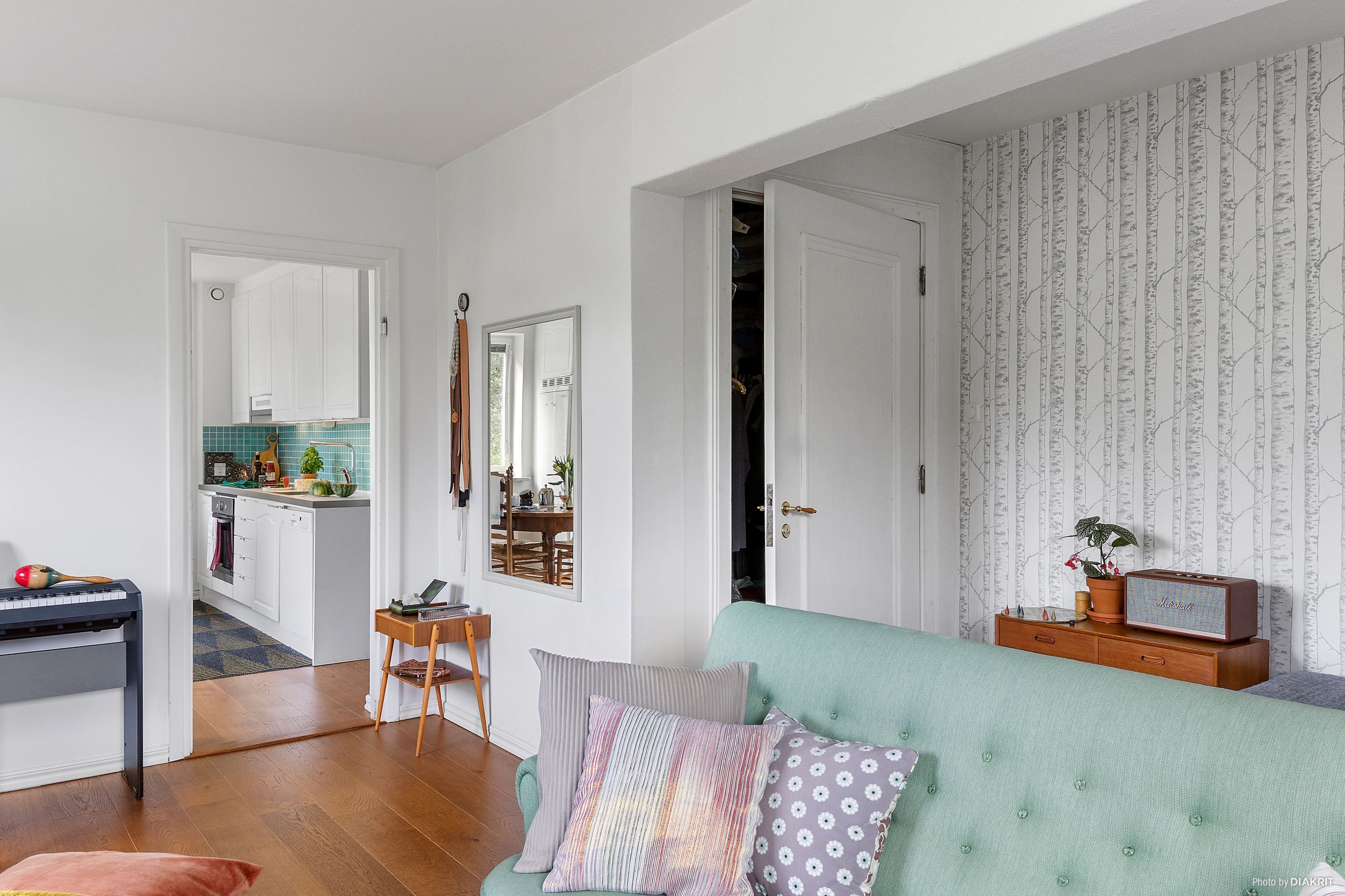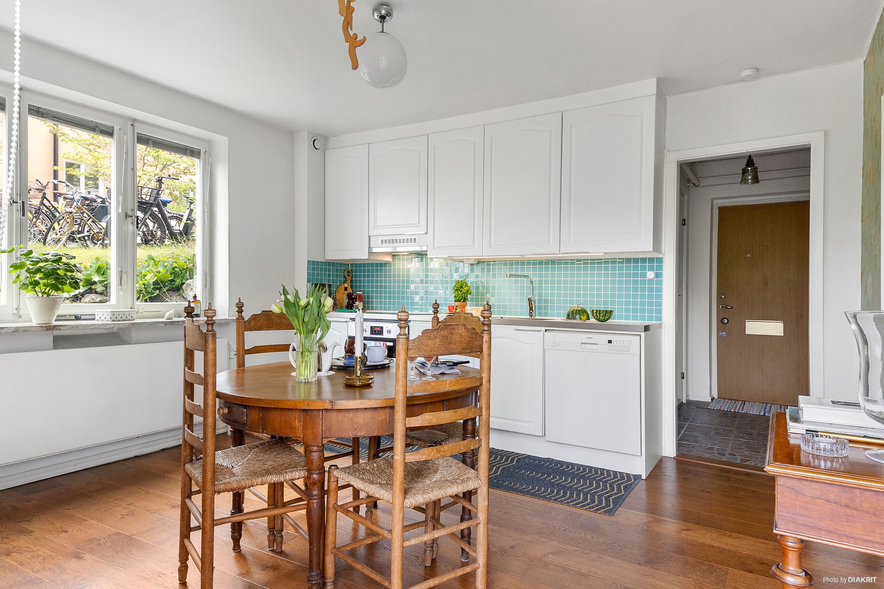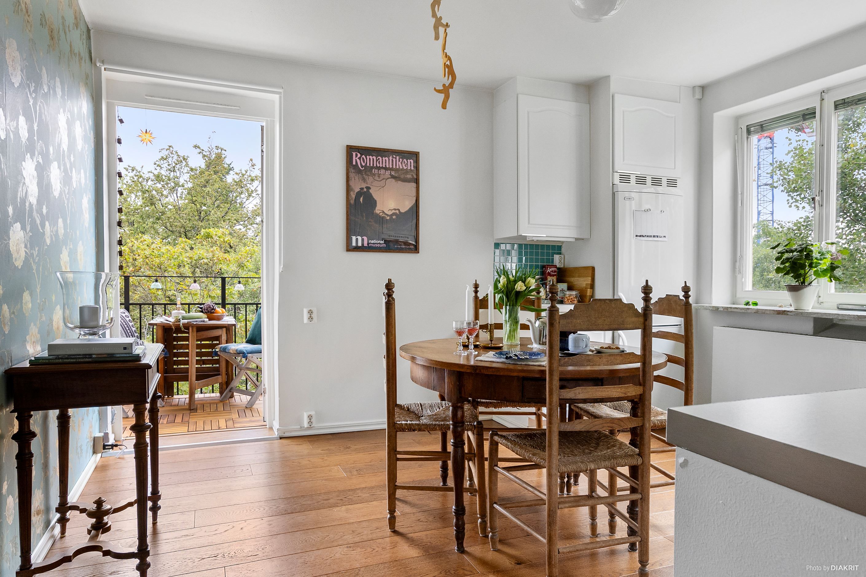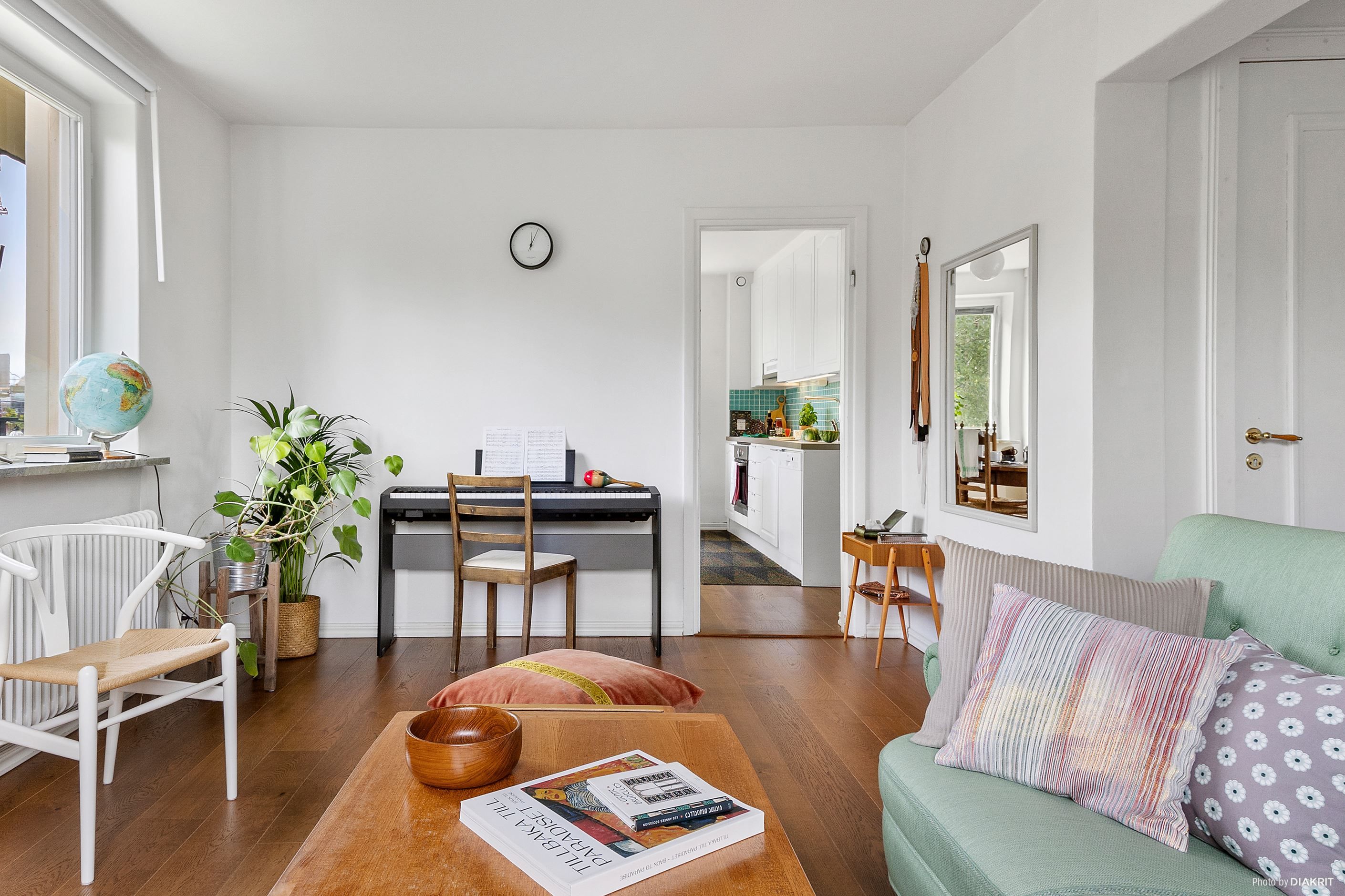 Fantastiskt välbelägen funkislägenhet med ett mysigt och ogenerat gavelläge intill grönska. Fastigheten är belägen på Aspuddens högsta punkt och från lägenheten har man fin utsikt mot Aspudden och staden. Lägenheten erbjuder en stor balkong i ett privat läge och med skön eftermiddags- och kvällssol. Intill skogspartiet utanför kan man ta del av ett sprudlande djurliv. Lägenheten är genomgående i gott skick, har en mycket trivsam planlösning samt mycket fint ljusinsläpp såväl på morgon som kväll. För den som önskar går det även att bygga om lägenheten till en 2:a, genom att öppna upp klädkammaren från hallen och bygga ett mindre sovrum i anslutning till ett av fönstren. Mycket välskött förening som äger marken och nyligen gjorde en större amortering på lånen samt diskuterar ytterligare amortering. Attraktivt läge i charmiga Aspudden med t-bana och bra service. Närhet även till såväl city som naturområden och Mälaren.