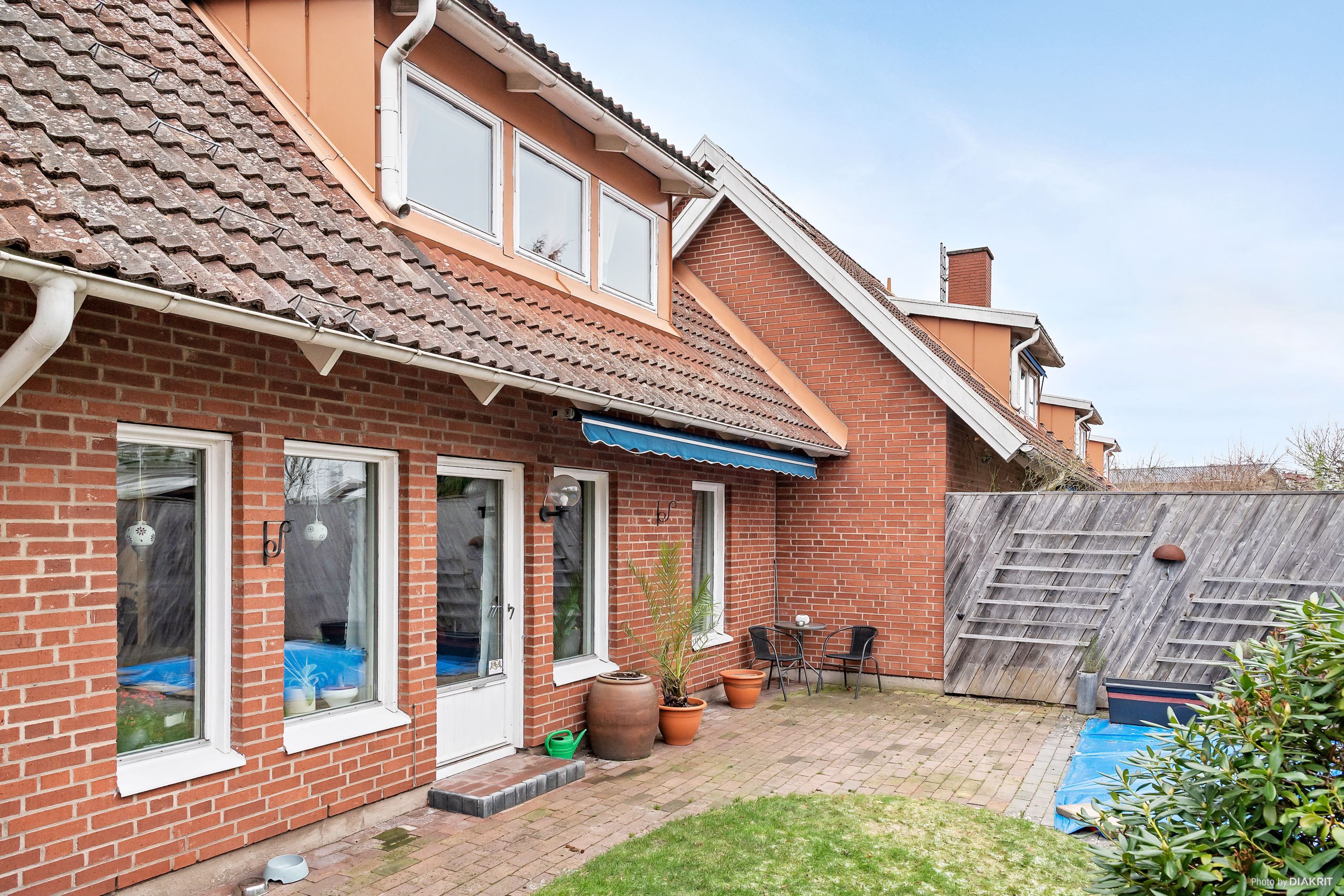 Till bostaden hör ett stort förråd som nås från såväl framsidan som trädgården samt ett garage med mekanisk port, precis runt hörnet.