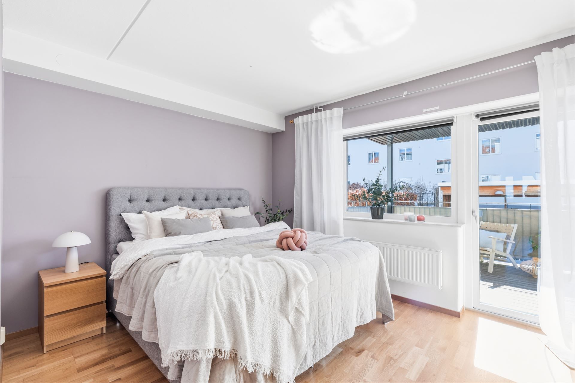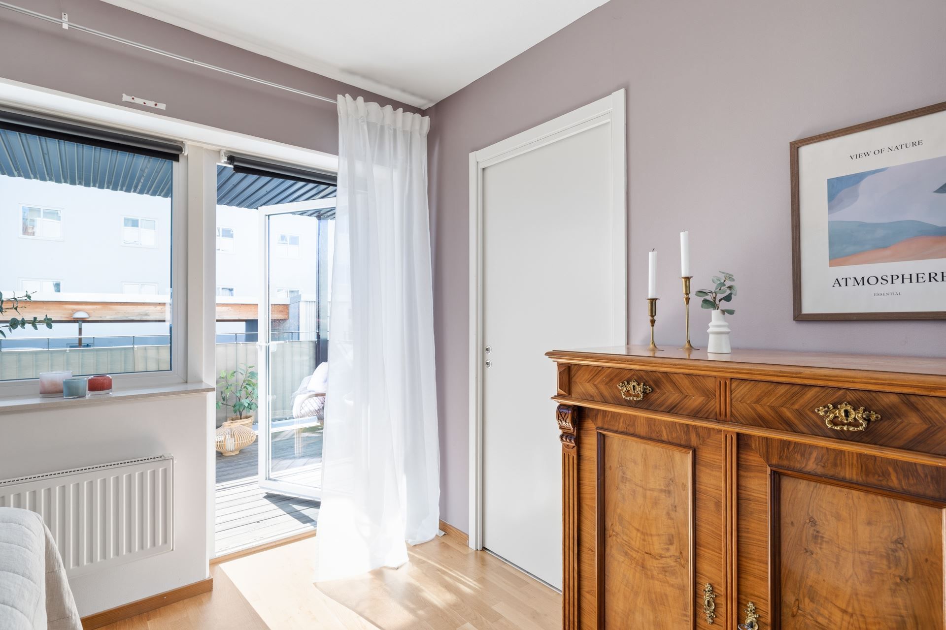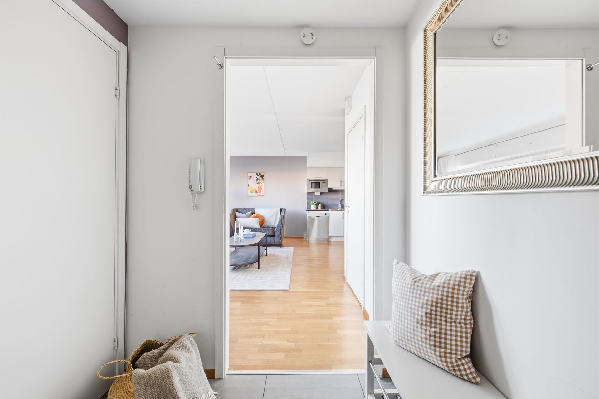 Lägenheten ligger på våning 1 av 4 i ett insynsskyddat läge och erbjuder en stor balkong i perfekt söderläge. Här kan du njuta av solen större delen av dagen och balkongen blir en naturlig förlängning av bostaden under årets varmare månader.