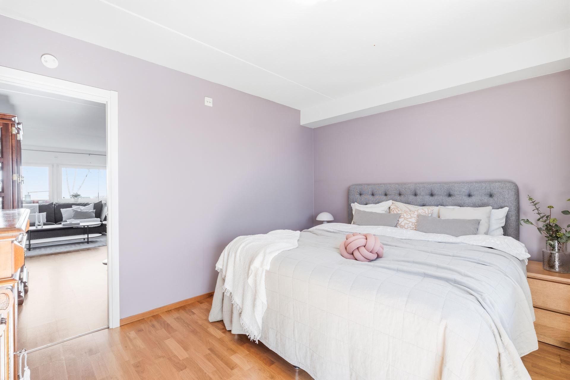 Sovrummet är rymligt med plats för dubbelsäng och har en praktisk klädkammare som ger utmärkta förvaringsmöjligheter. Även i hallen finns gott om garderober.