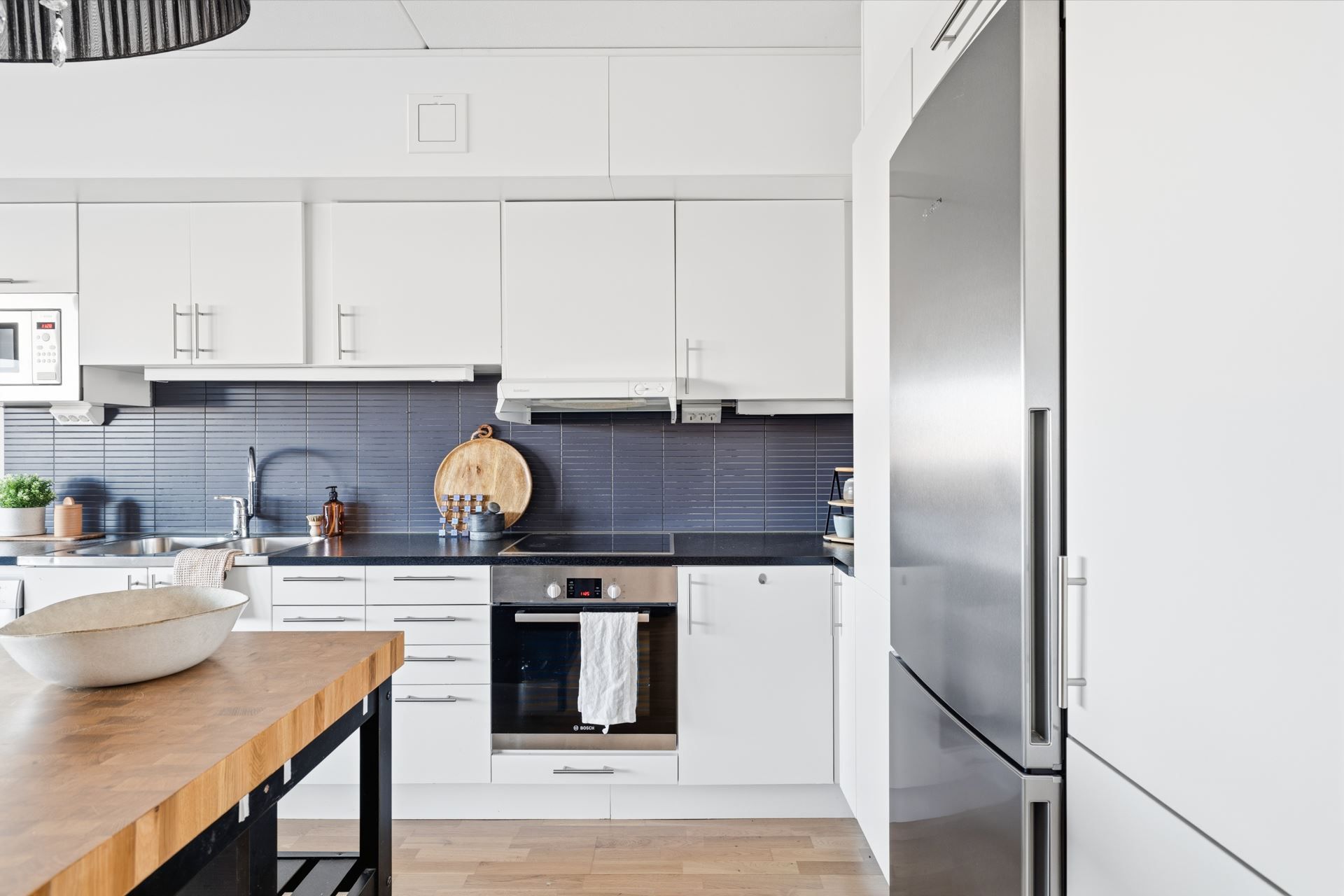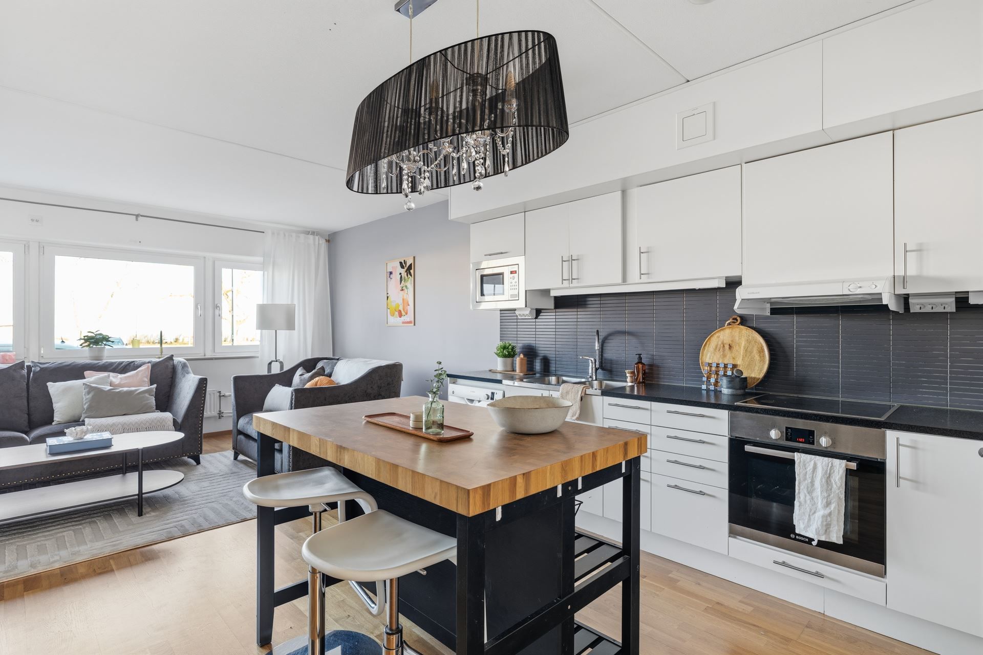 Invändigt möts du av ett hem i mycket gott skick med generösa och luftiga ytor. Den öppna planlösningen mellan kök och vardagsrum skapar en social och inbjudande miljö där det finns gott om plats för både matgrupp och soffhörna.