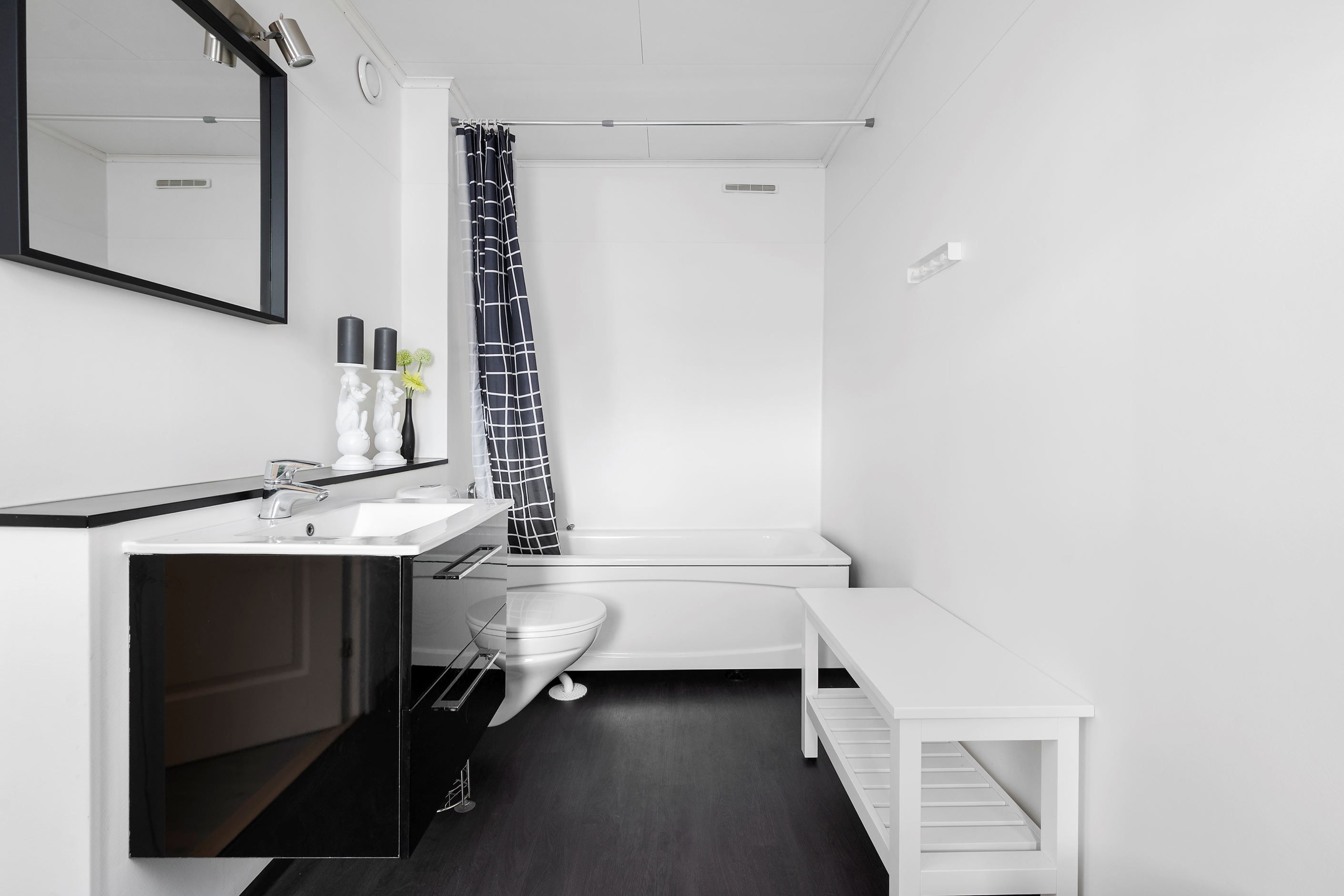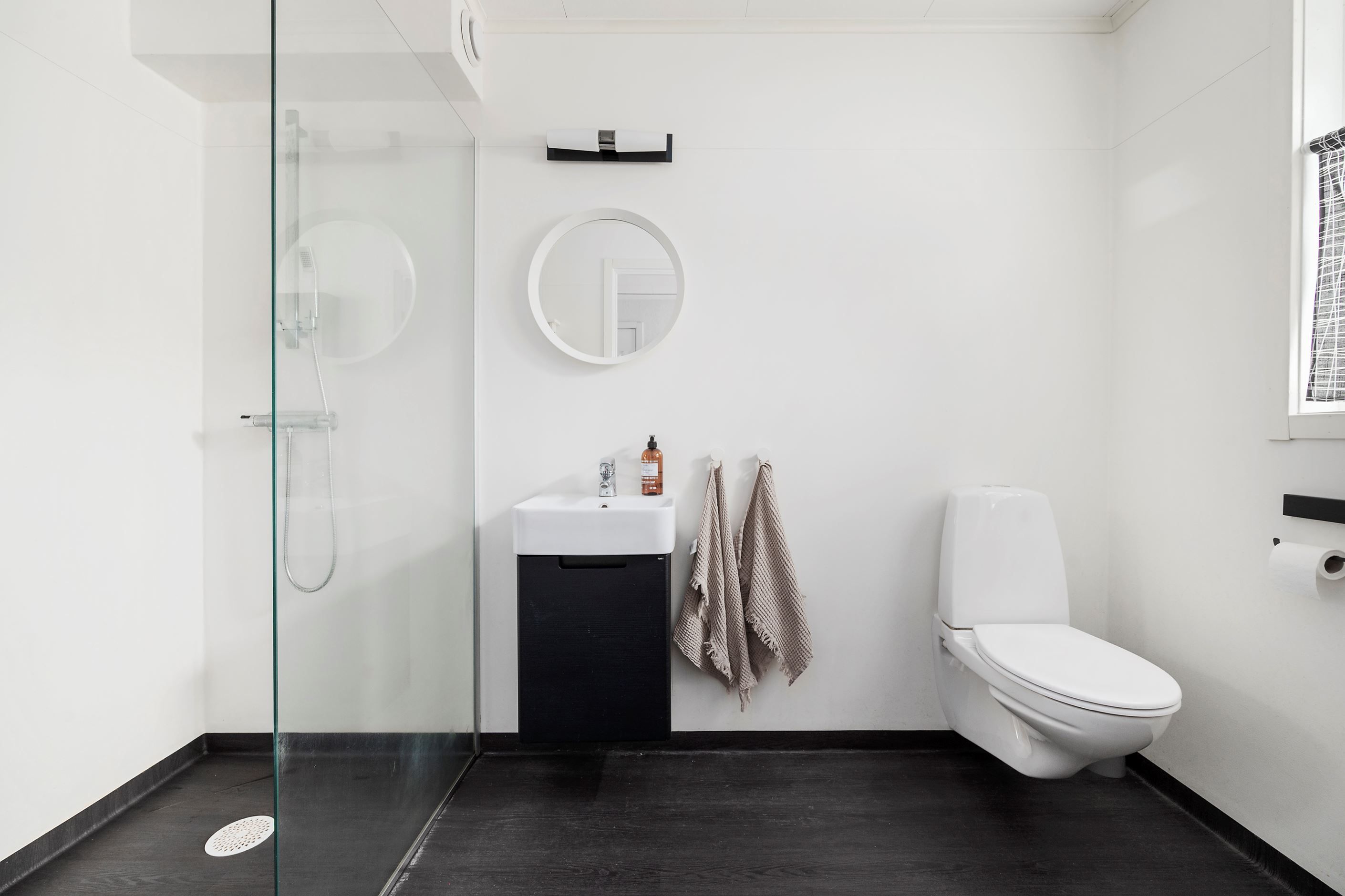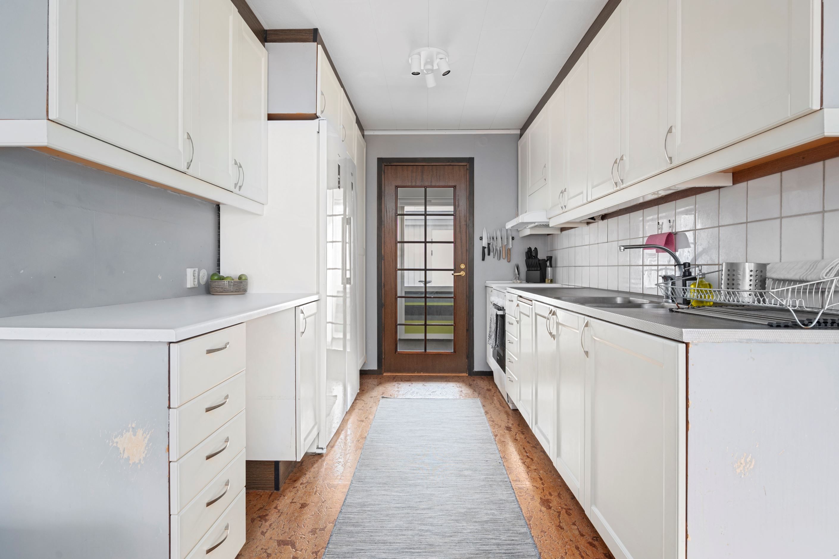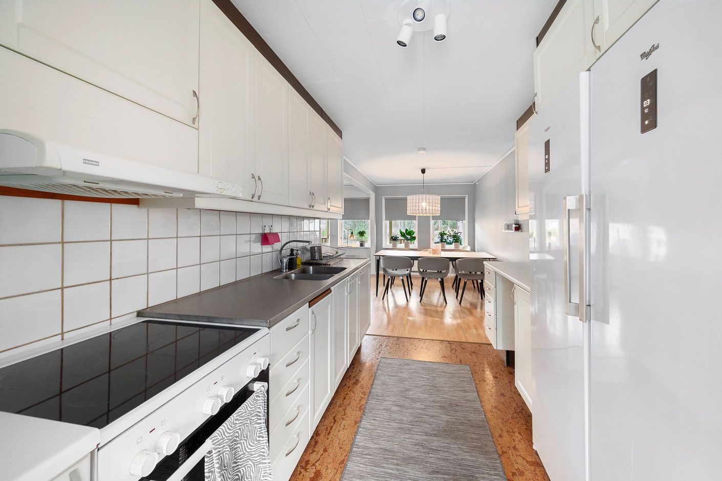 På entréplan möts du av en välkomnande hall med bra förvaringsmöjligheter. Här finns även ett smakfullt renoverat badrum direkt till höger samt ett sovrum som passar lika bra som gästrum, tonårsrum eller kanske ett bekvämt sovrum på markplan till vänster. Köket med matplats ligger i öppen planlösning mot vardagsrummet och skapar en ljus och social miljö där familj och vänner gärna samlas. Intill köket finns en praktisk och stilfull tvättstuga med goda arbetsytor och förvaring – en uppskattad detalj i vardagen. Från vardagsrummet nås en härlig altan i sydvästläge som bjuder på många soltimmar och plats för både middagar, grillkvällar och avkoppling.