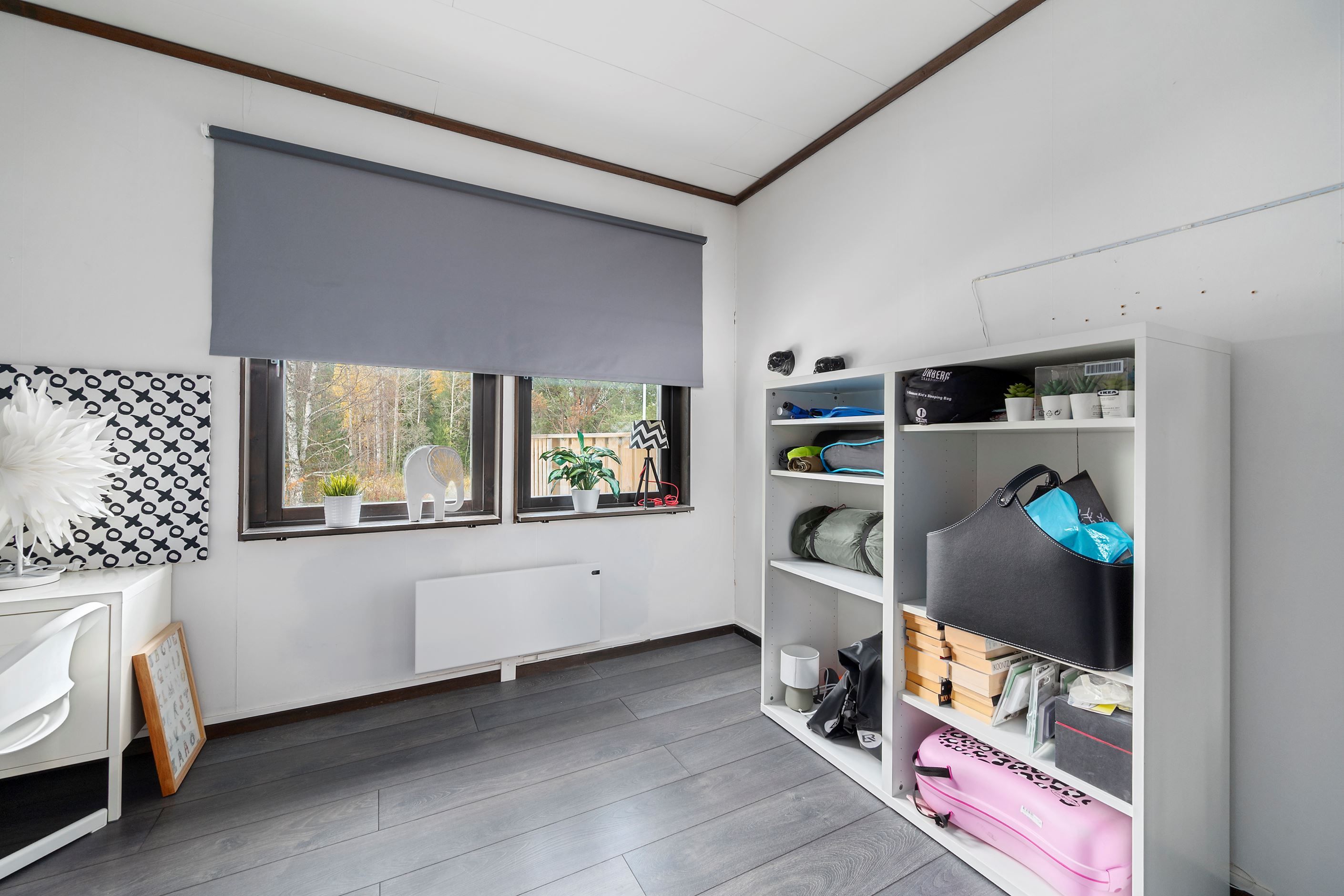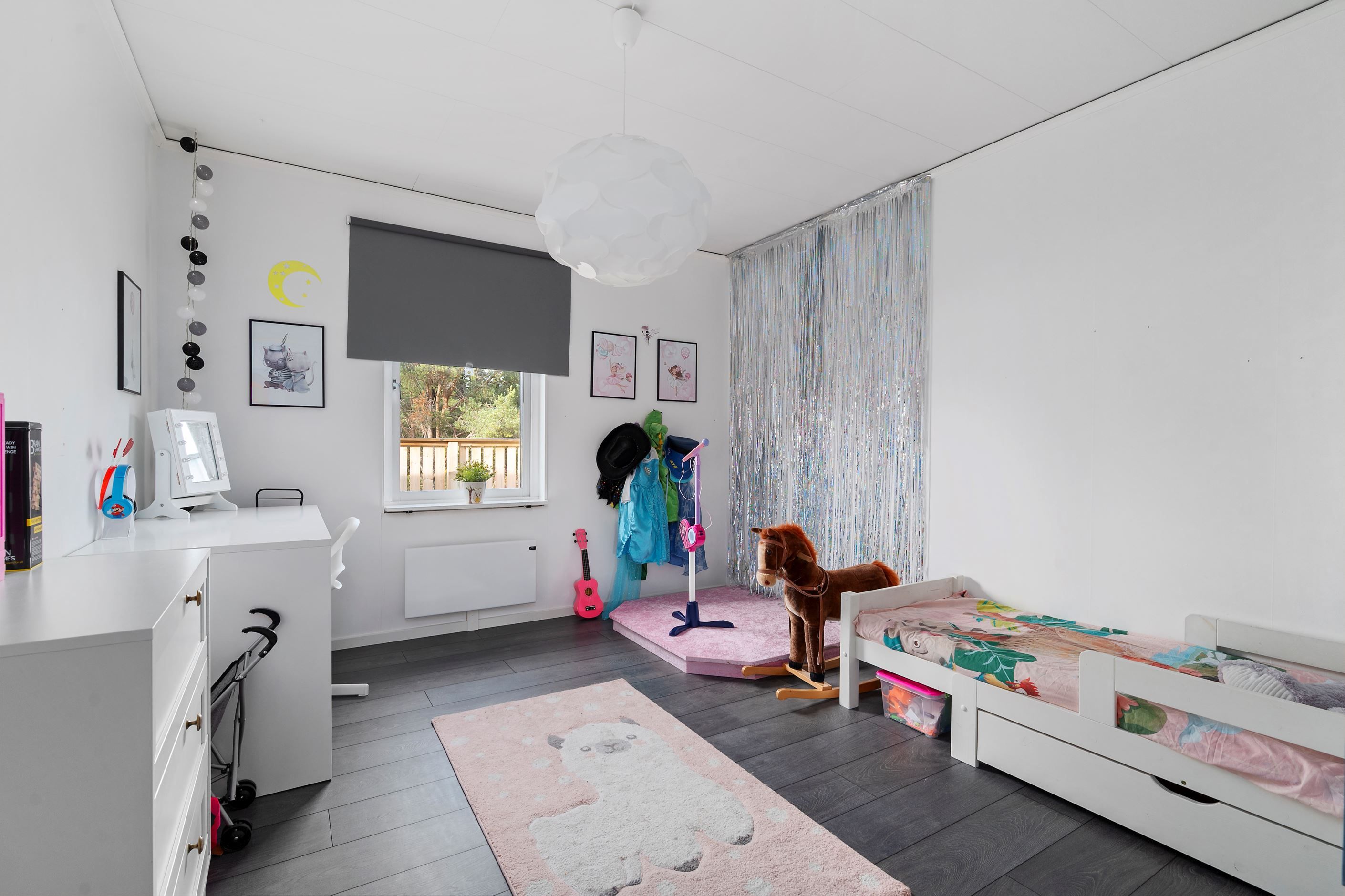 På övre plan fortsätter känslan av rymd. Här finns ett inbjudande allrum, två väl tilltagna sovrum samt ett badrum med badkar för både vardagslyx och familjens behov. Dessutom finns ett kontorsrum, – perfekt för distansarbete – med utgång till en generös terrass i bästa sydvästläge. Här kan du njuta av solen större delen av dagen, odla i krukor eller skapa en egen oas för sommarkvällarna. Kontorsrummet kan också nyttjas som ett 4:e sovrum om man så skulle önska och behov finns för fler sovrum.