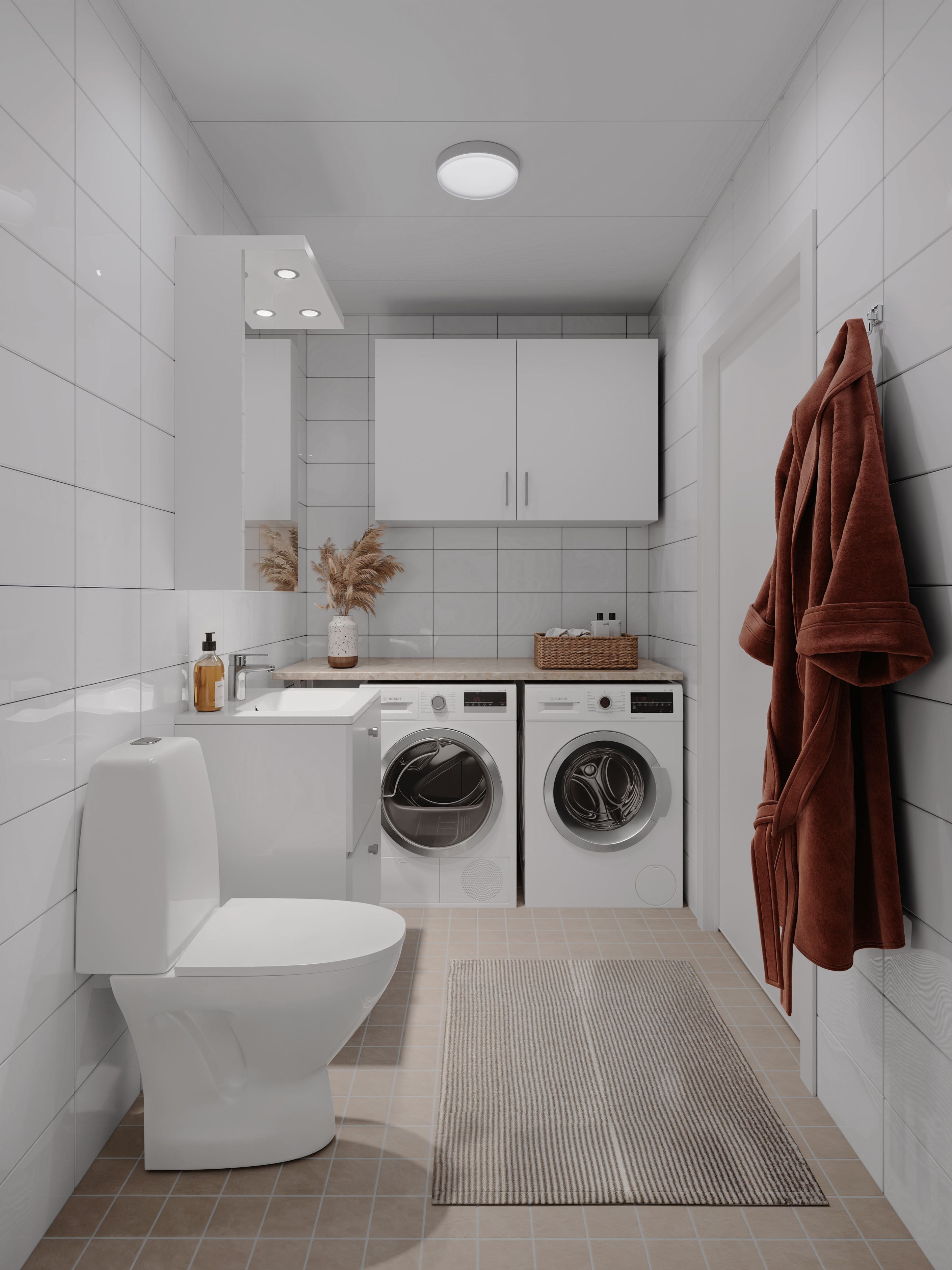 Samtliga lägenheter har en rymlig WC/dusch med tvättmaskin och torktumlare och de större lägenheterna har även en extra WC. Köken från Ballingslöv är välutrustade och samtliga vitvaror är från Bosch. I anslutning till den gemensamma gårdsytan finns markering där varje lägenhet kan hyra en parkeringsplats med motorvärmare eller laddmöjlighet.