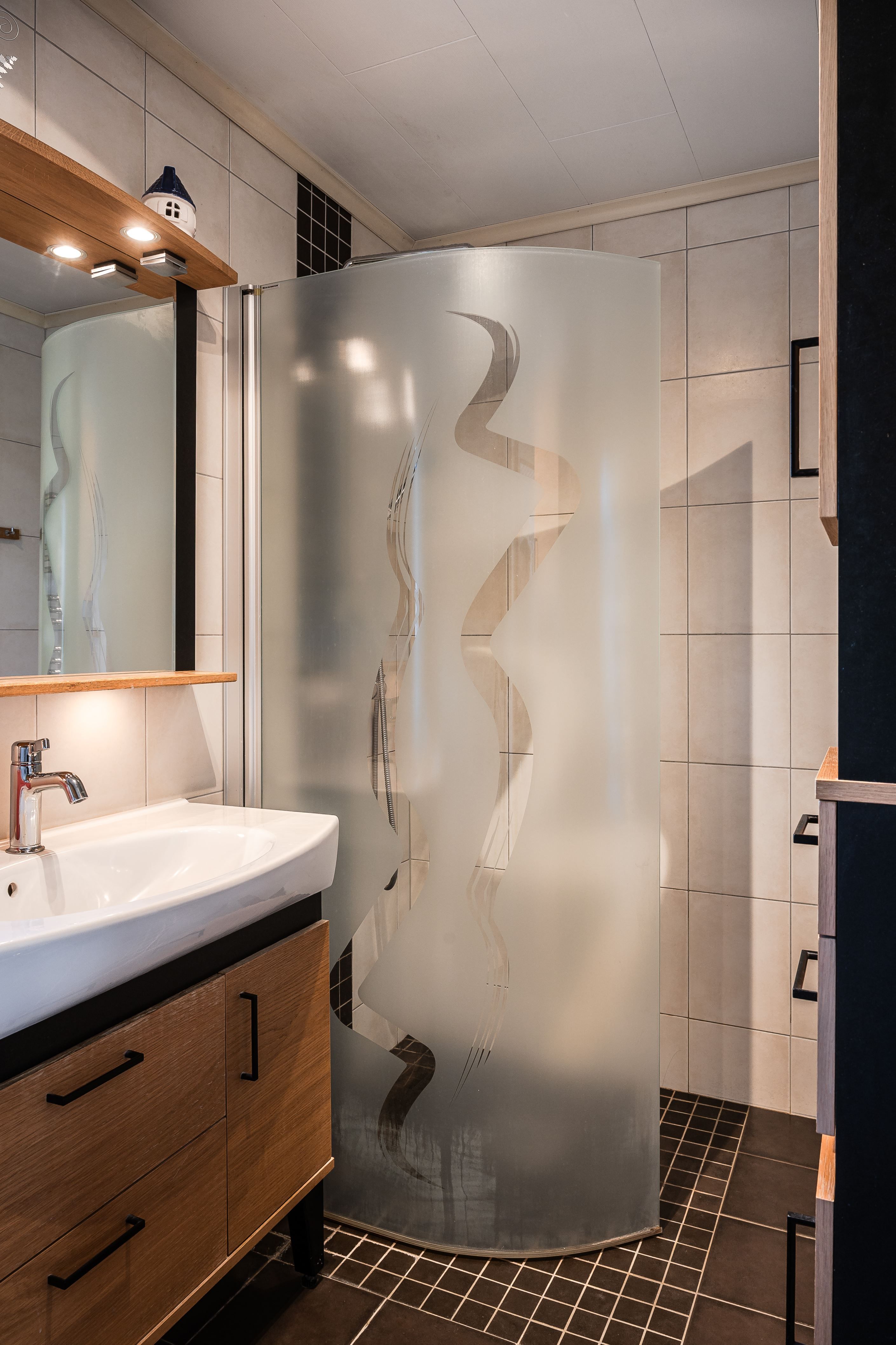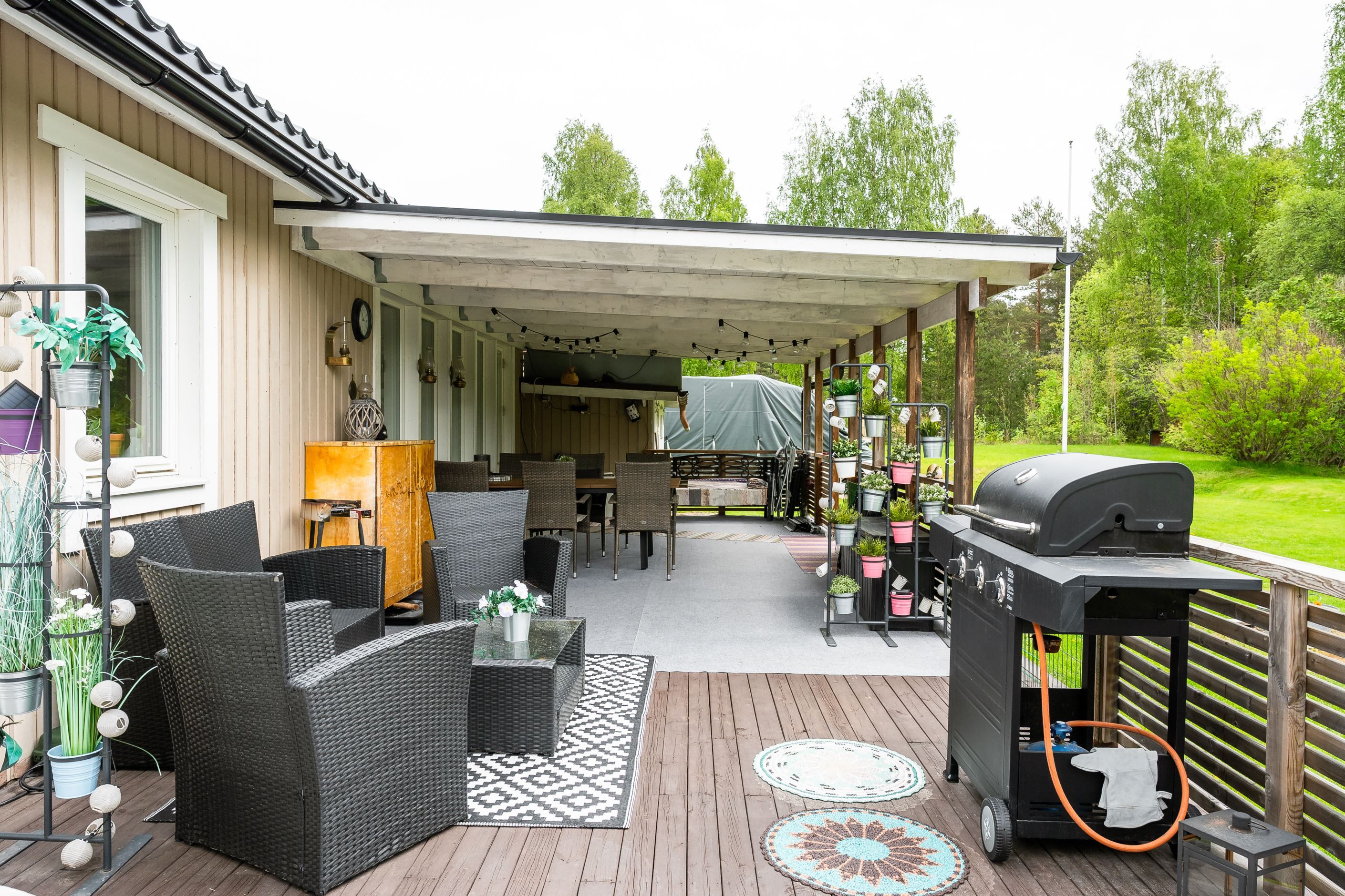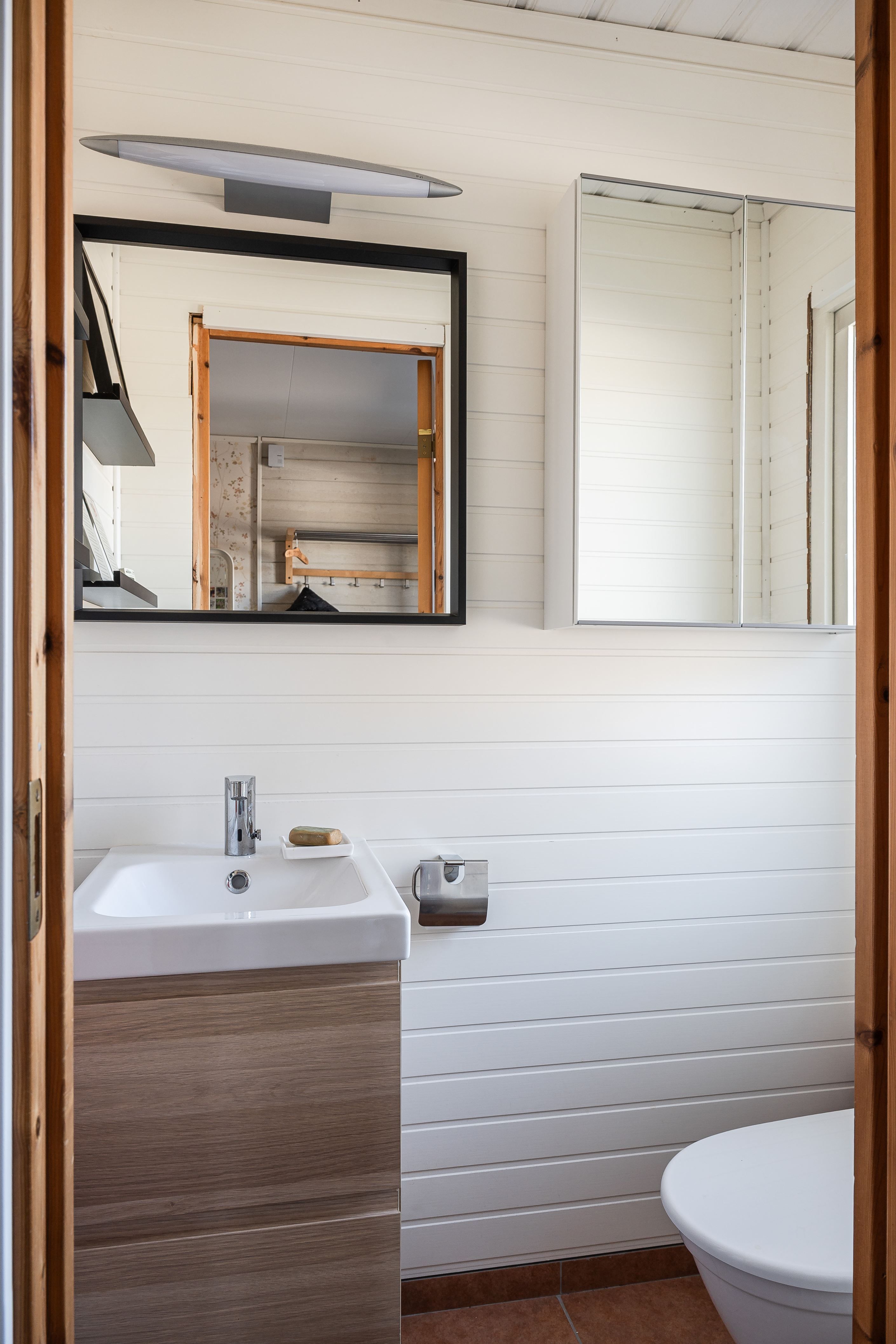 En trappa ner fortsätter den hemtrevliga känslan. Här finns en inbjudande gillestuga med kamin som värmer gott under vintern, en rymlig och välplanerad tvättstuga, gott om förvaringsutrymmen samt ett fräscht duschrum. I anslutning till detta finns även en bastu – den självklara platsen för avkoppling efter en lång dag.