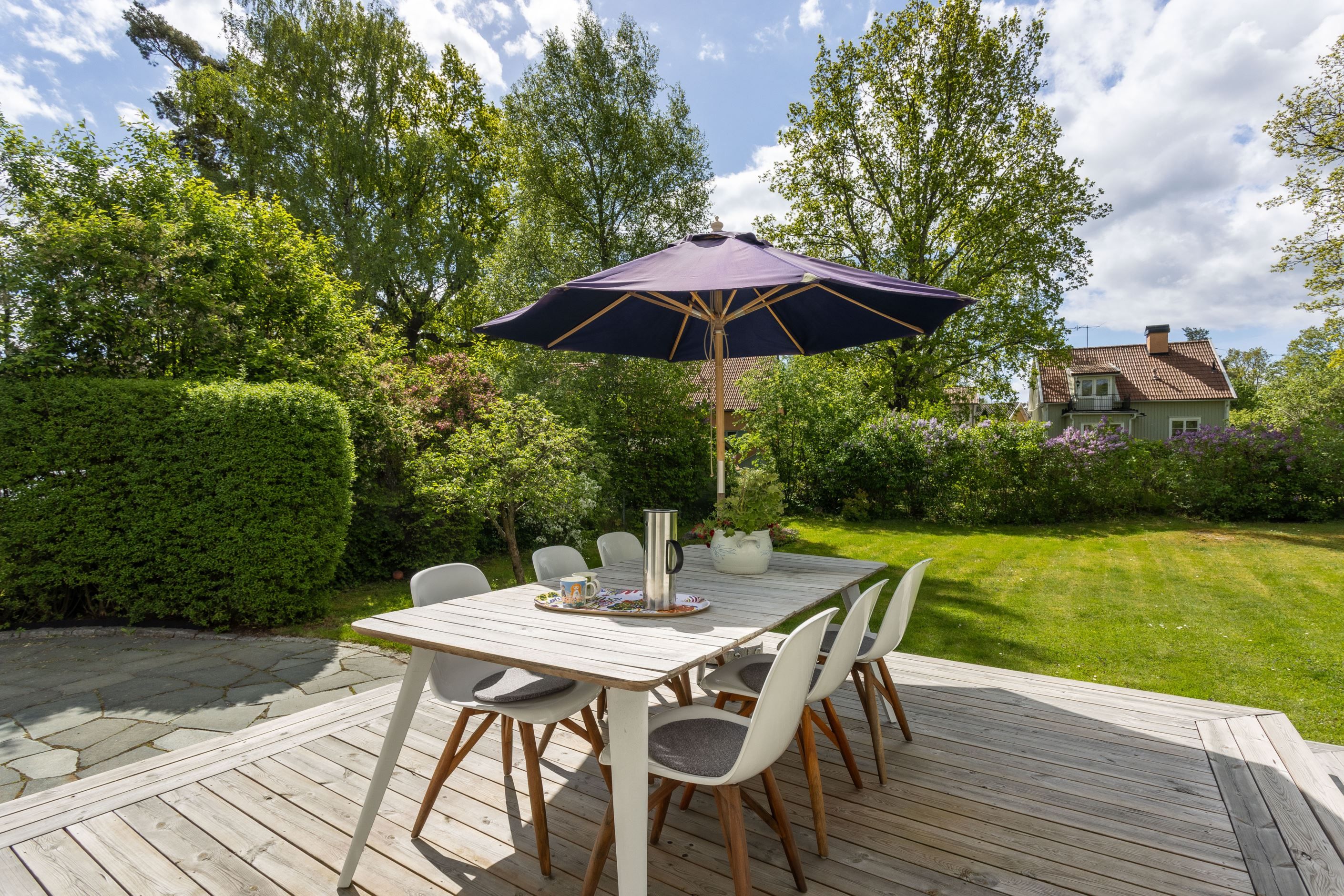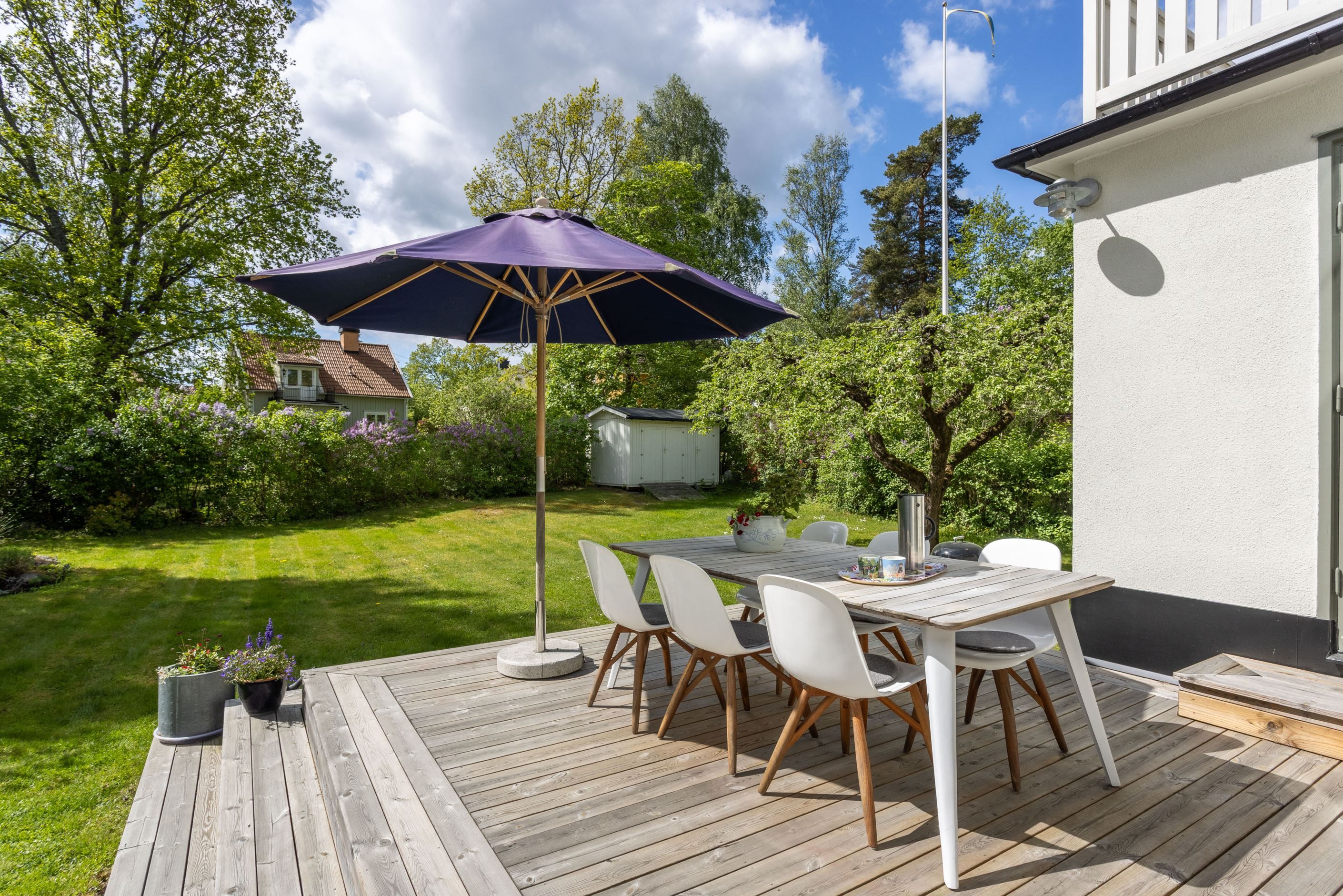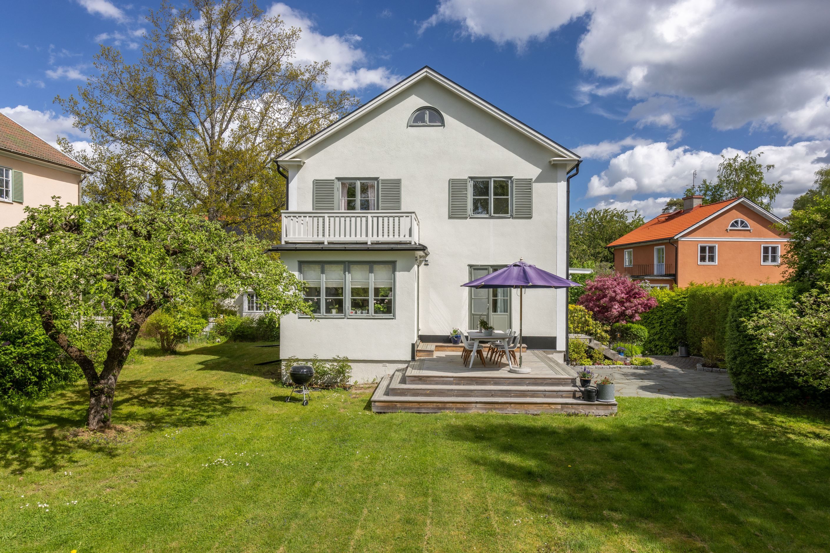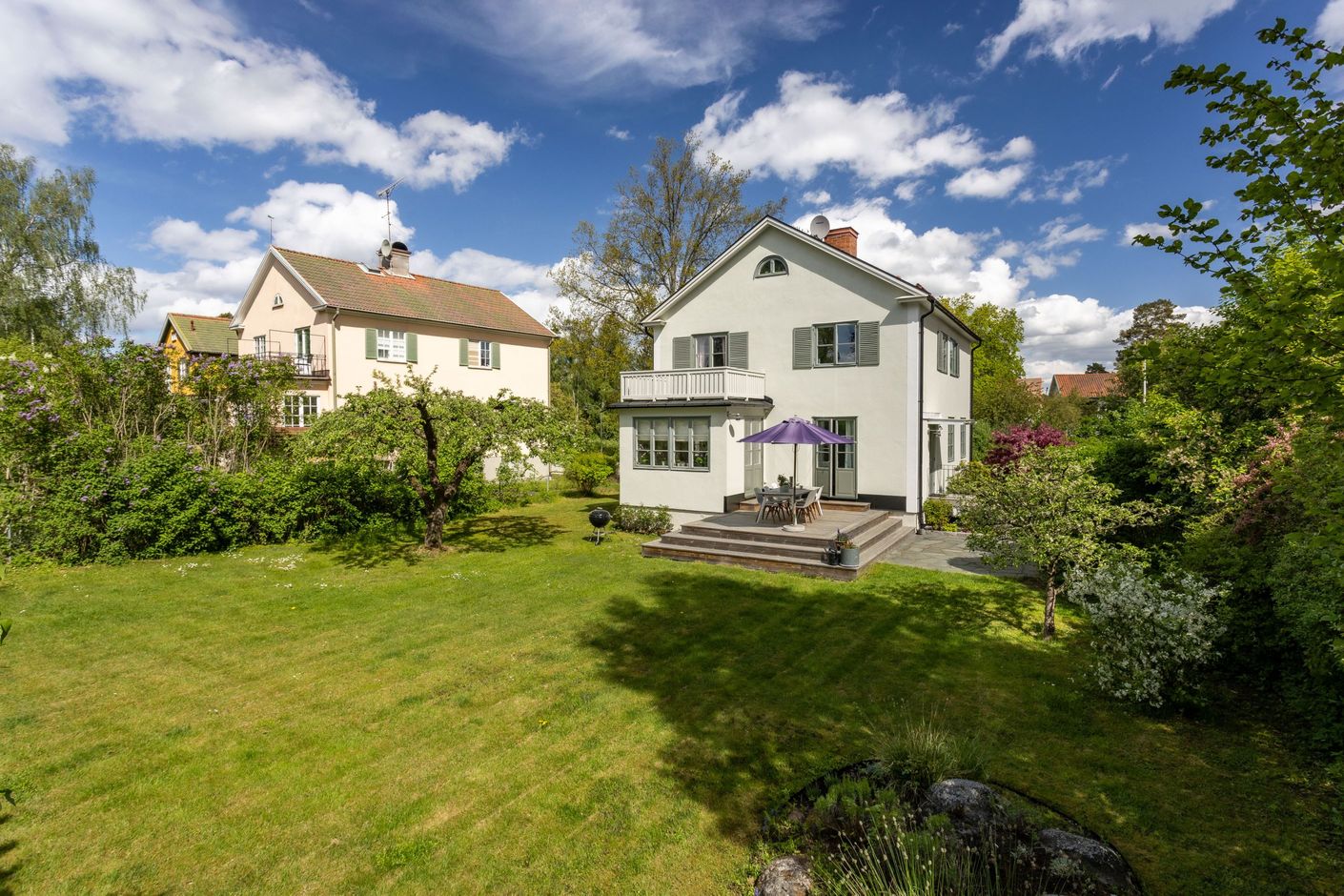Stilfull villa med fritt läge och vackert anlagd tomt med många soltimmar. Genomgående påkostade materialval och luftiga ytor. Genomtänkt och välplanerat, bara att flytta rakt in. Ett varmt och trivsamt hem som erbjuder såväl moderna smakfulla lösningar som vackra originaldetaljer i trägolven av stavparkett, fungerande eldstad och dörrspeglar med mera. Ett härligt hus för den stora familjen med krav på sitt boende. Tillfälle att förvärva en villa med en väl tilltagen och skyddad tomt där man ogenerat njuter av soliga sommardagar hemma.