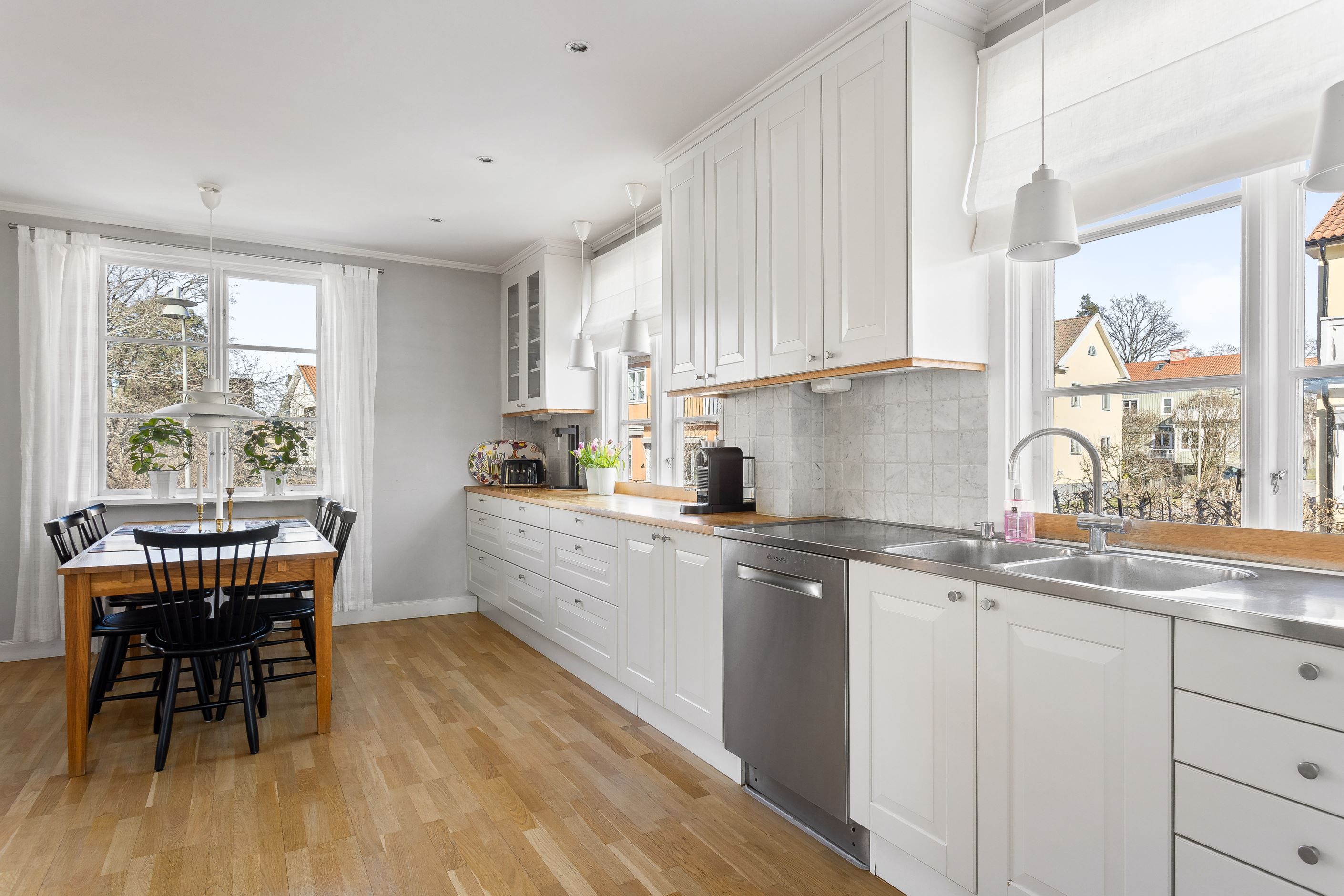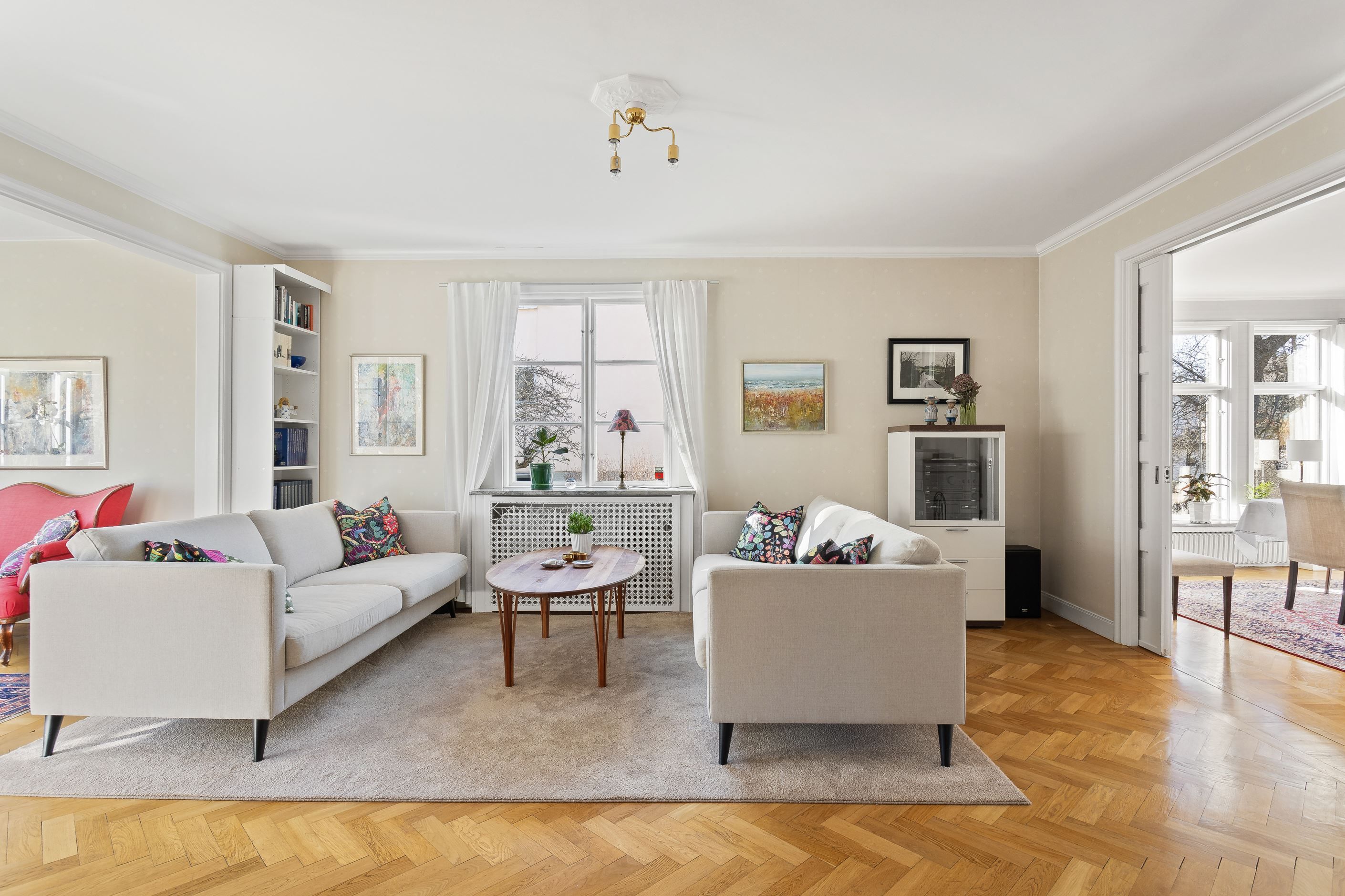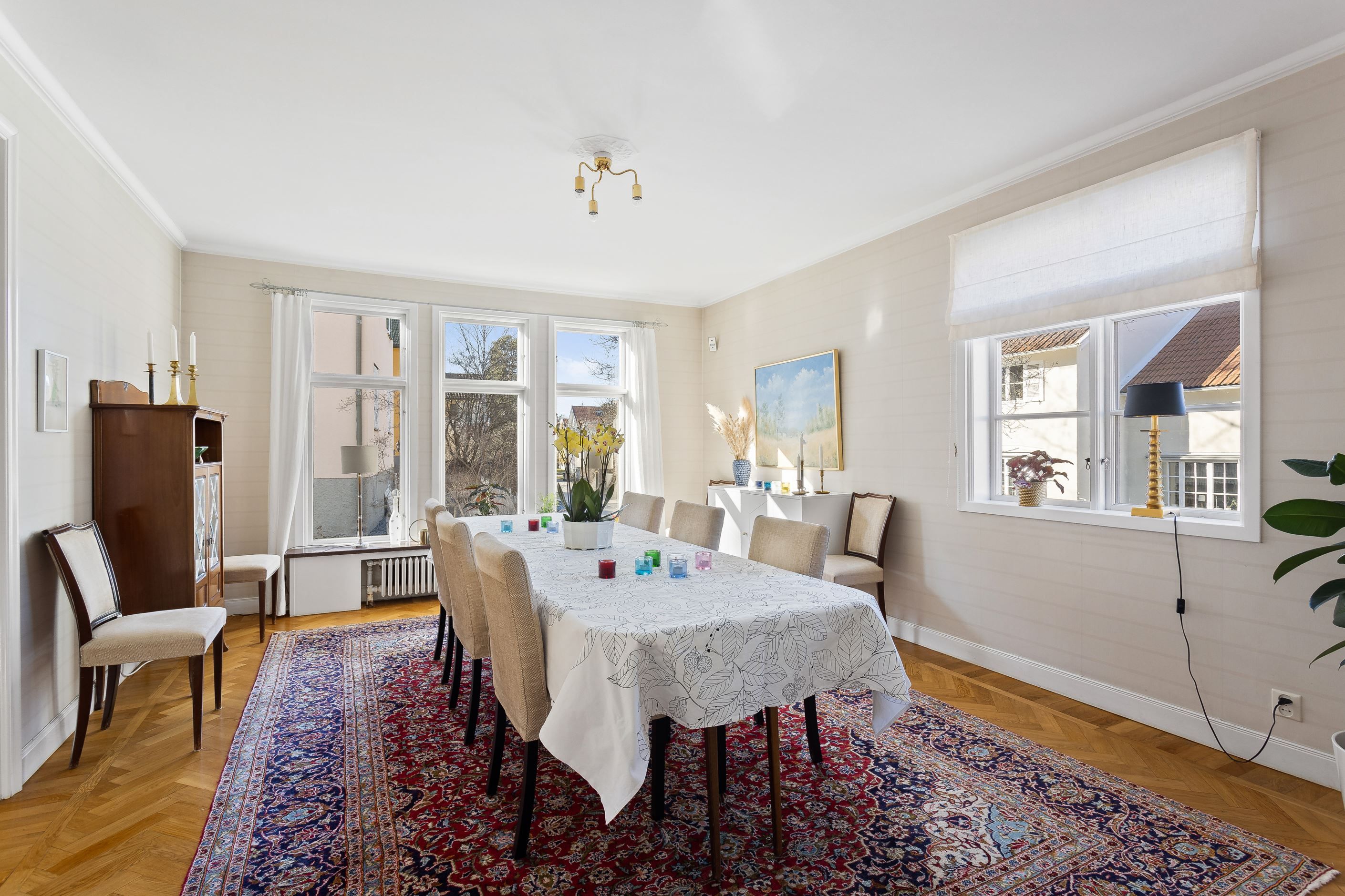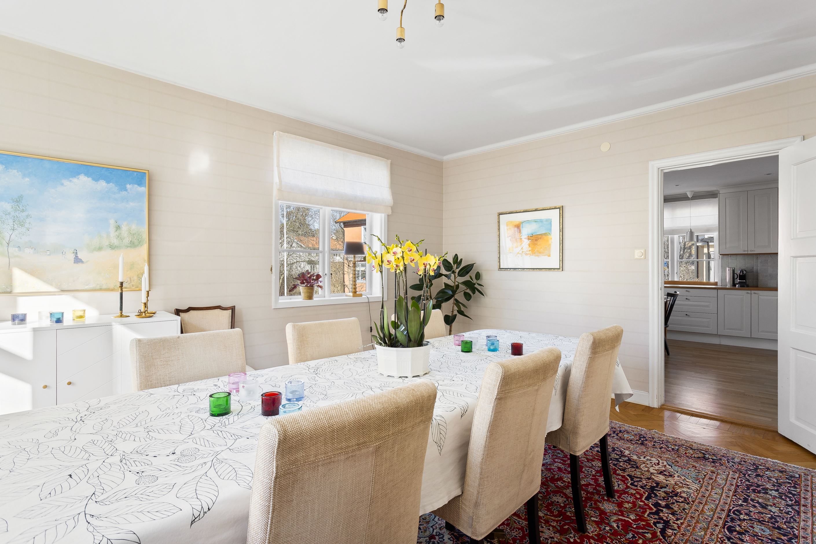 Stilfull villa med fritt läge och vackert anlagd tomt med många soltimmar. Genomgående påkostade materialval och luftiga ytor. Genomtänkt och välplanerat, bara att flytta rakt in. Ett varmt och trivsamt hem som erbjuder såväl moderna smakfulla lösningar som vackra originaldetaljer i trägolven av stavparkett, fungerande eldstad och dörrspeglar med mera. Ett härligt hus för den stora familjen med krav på sitt boende. Tillfälle att förvärva en villa med en väl tilltagen och skyddad tomt där man ogenerat njuter av soliga sommardagar hemma.