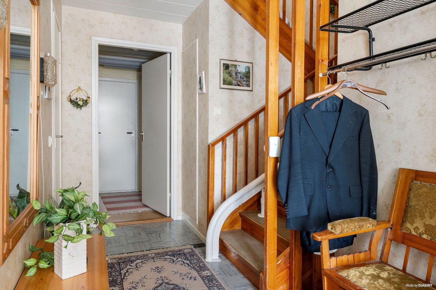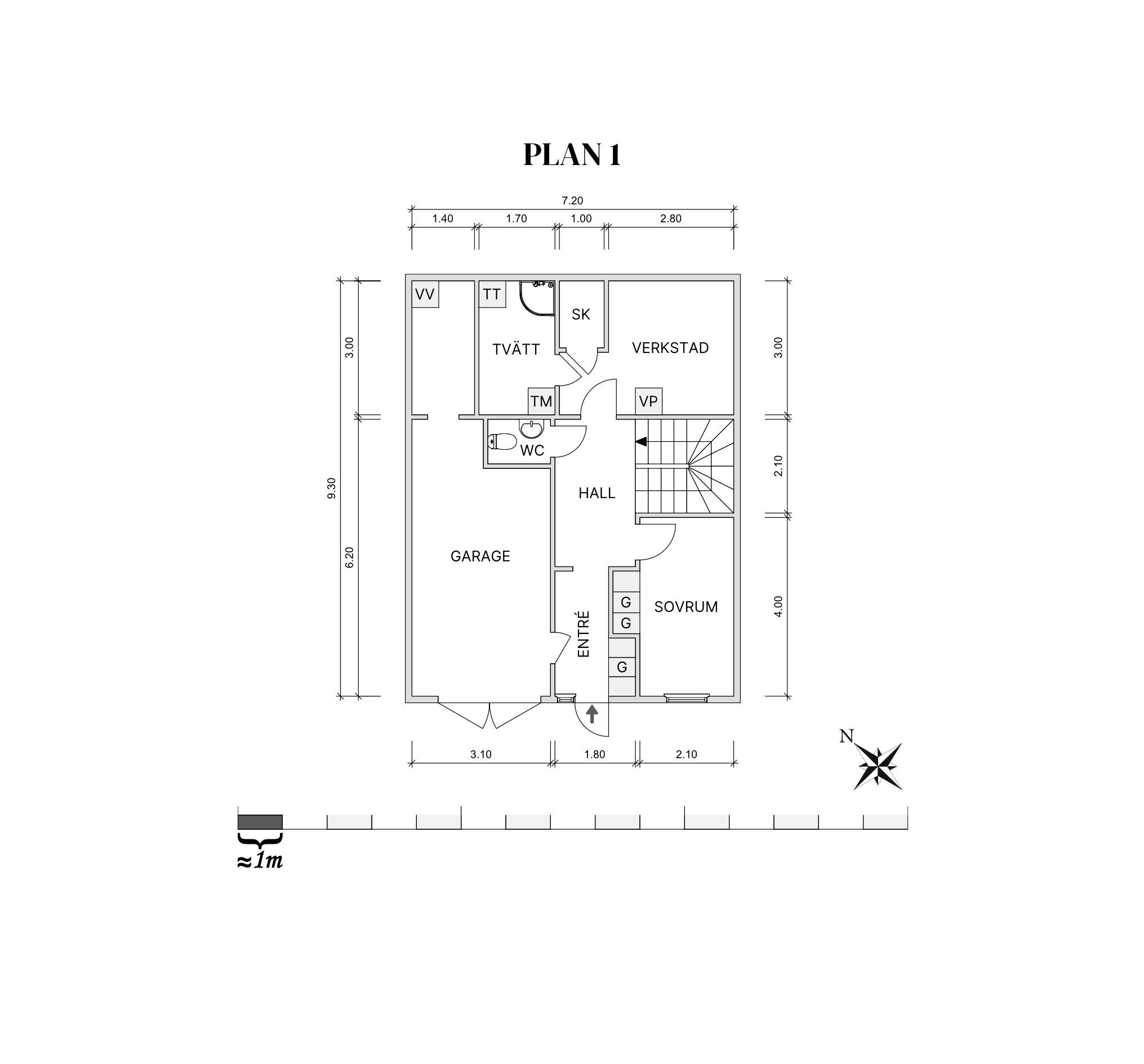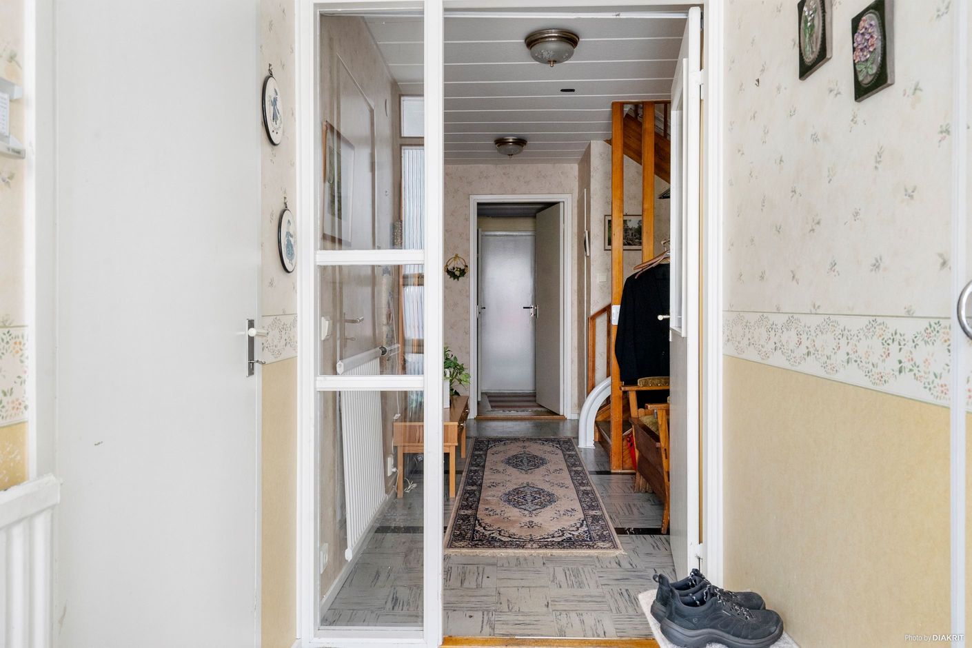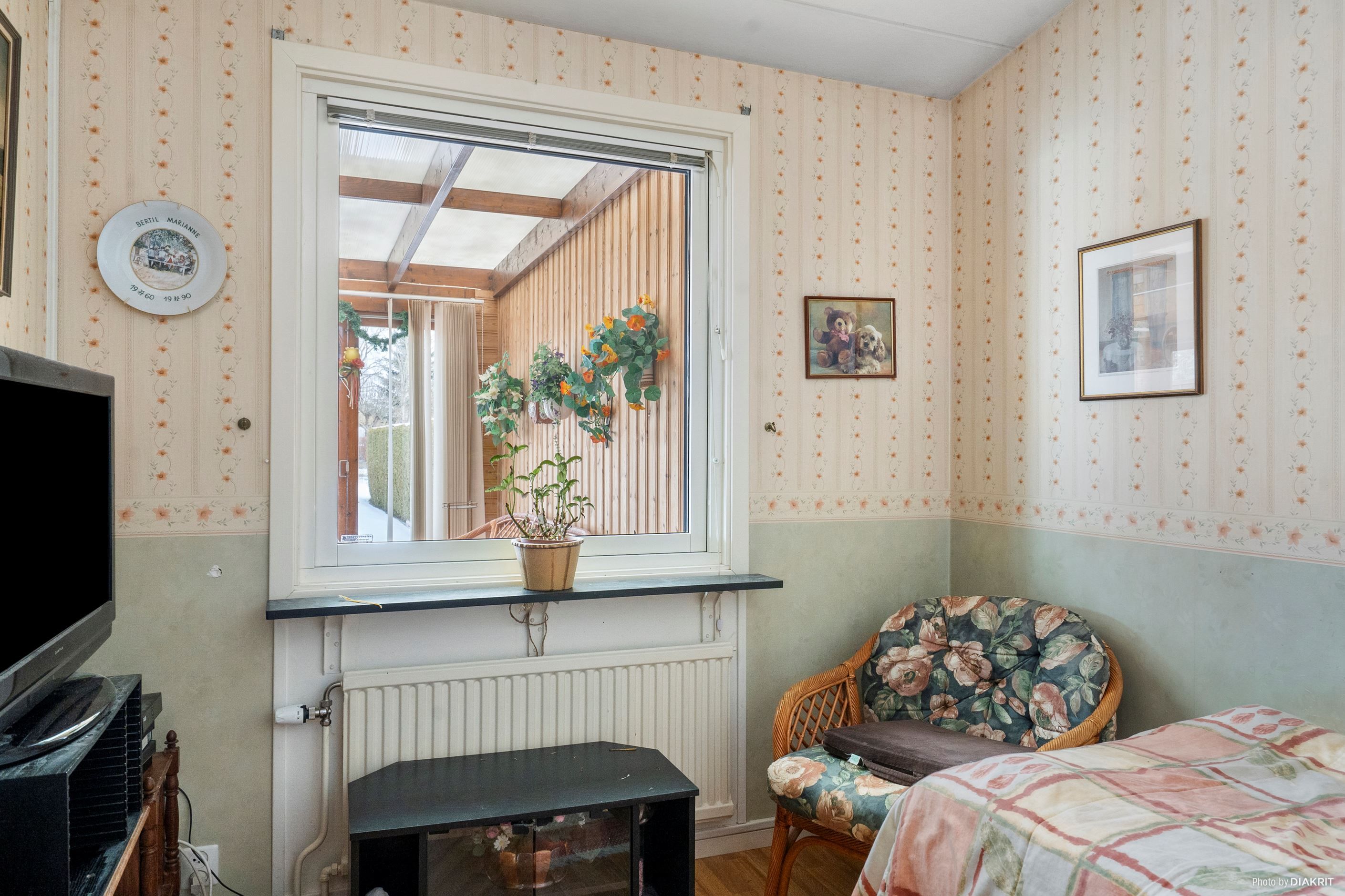 Trädgård på fram och baksida. Entré via parkeringsplatsen eller via uterummet.