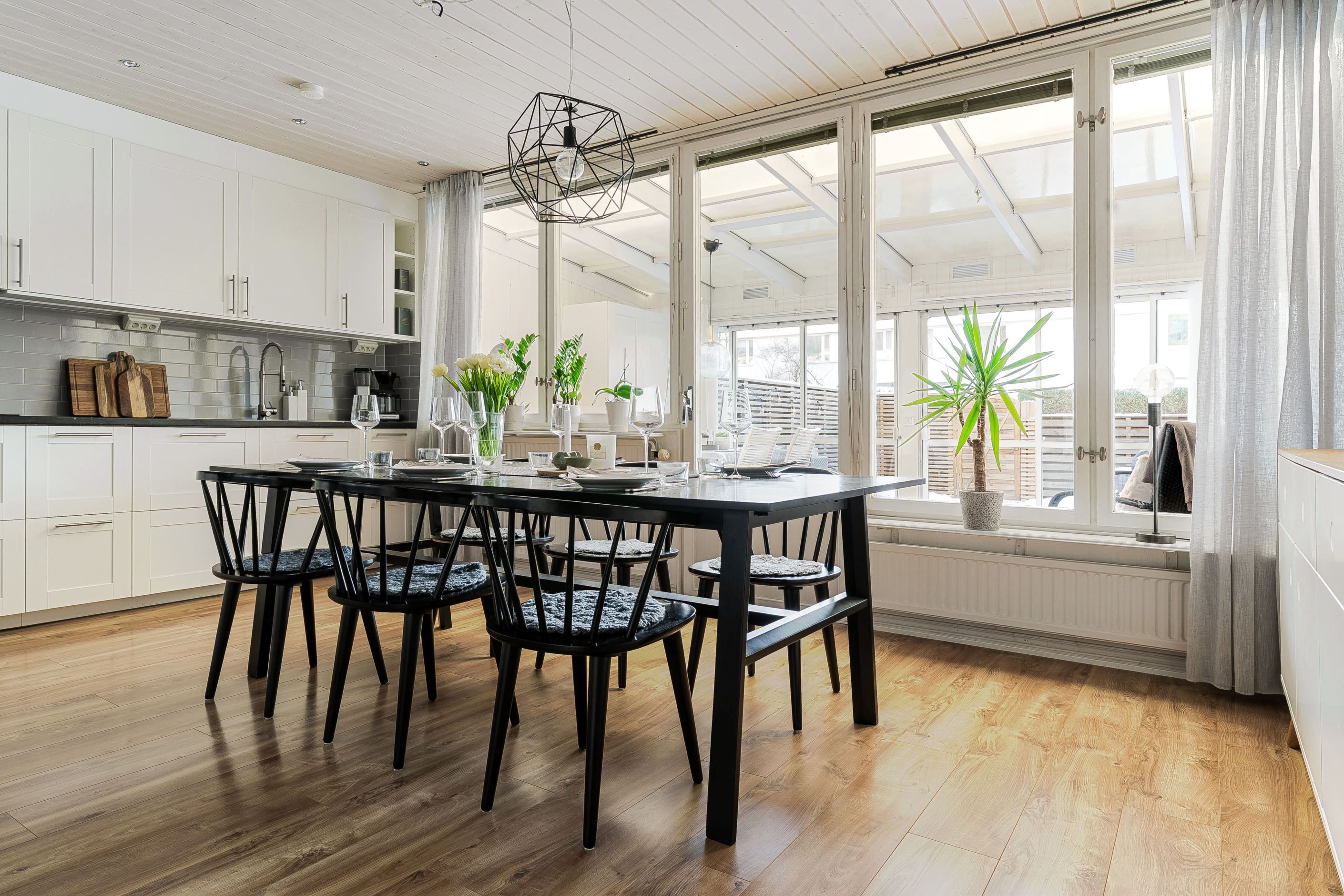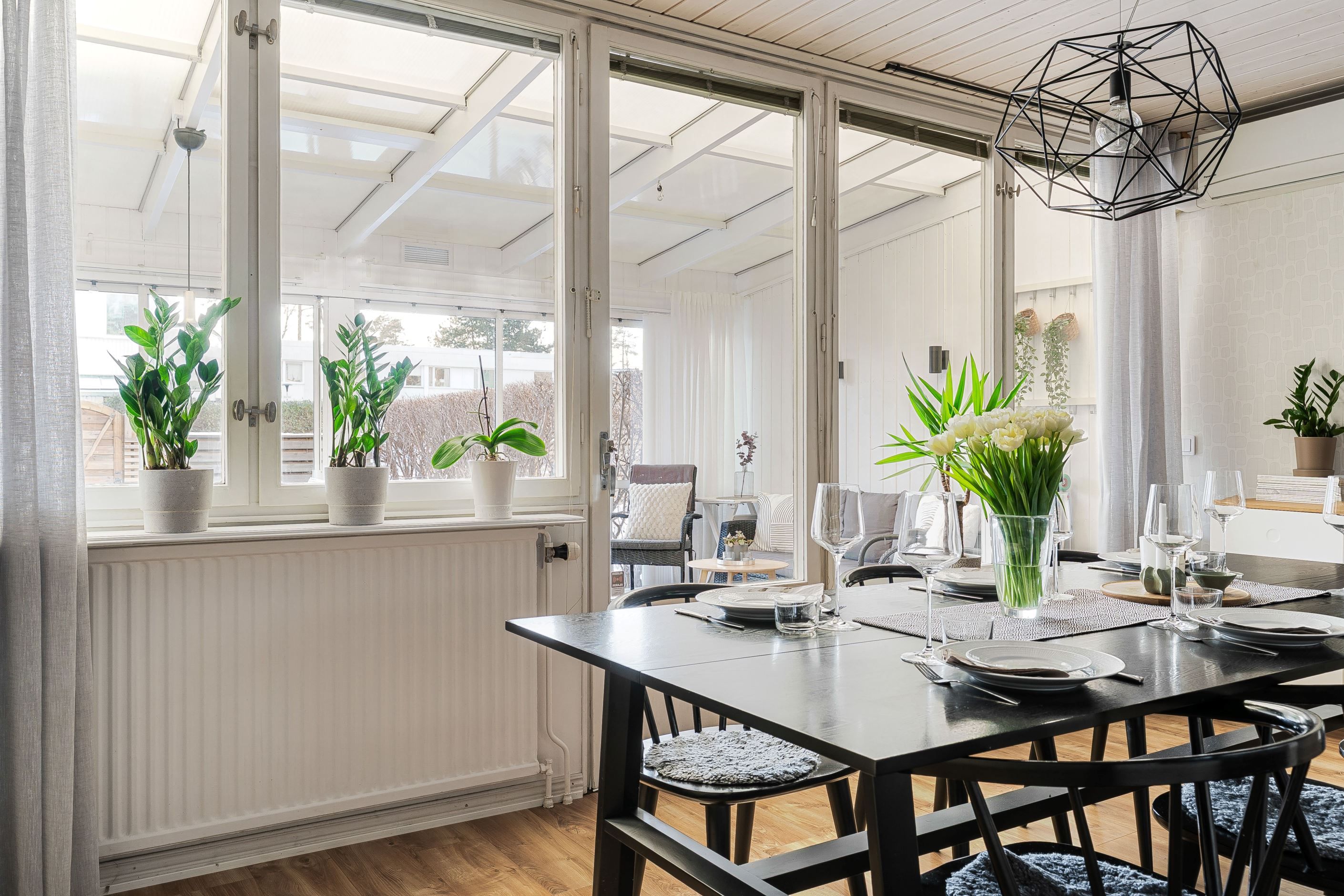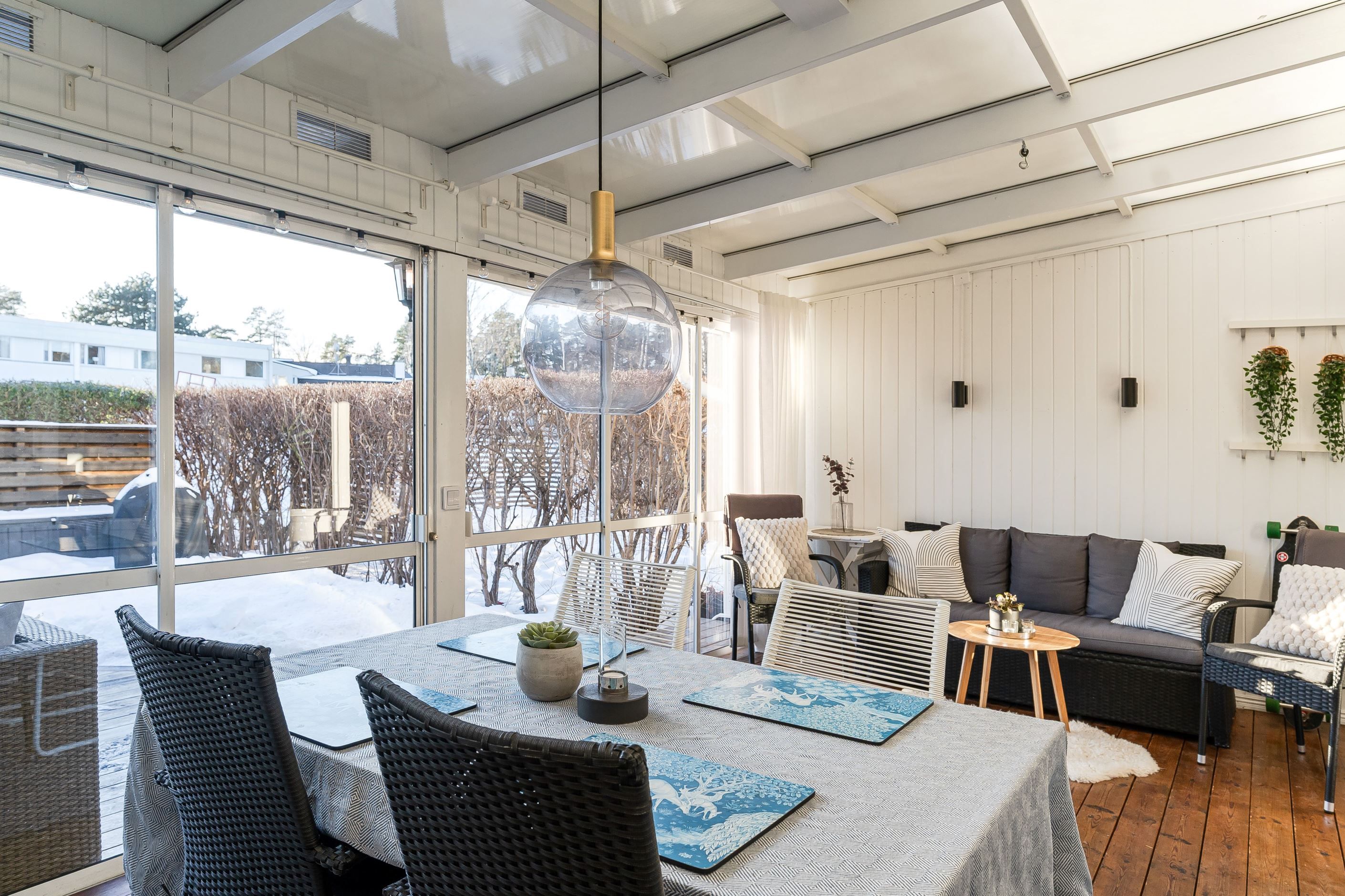 Här erbjuds ett hemtrevligt och välplanerat radhus där vardagen får flyta lite enklare. Ett stilrent renoverat kök sätter tonen, kompletterat av två helkaklade badrum som ger både komfort och flexibilitet för familjen. Den separata klädvårdsavdelningen är en uppskattad detalj som frigör tid och yta, medan det inglasade uterummet blir en naturlig favoritplats stora delar av året. Uteplatsen med gräsmatta bjuder in till lek, odling och lata sommardagar, och garage i länga gör parkeringen smidig. Allt detta i ett populärt och omtyckt område där många trivs och stannar länge.