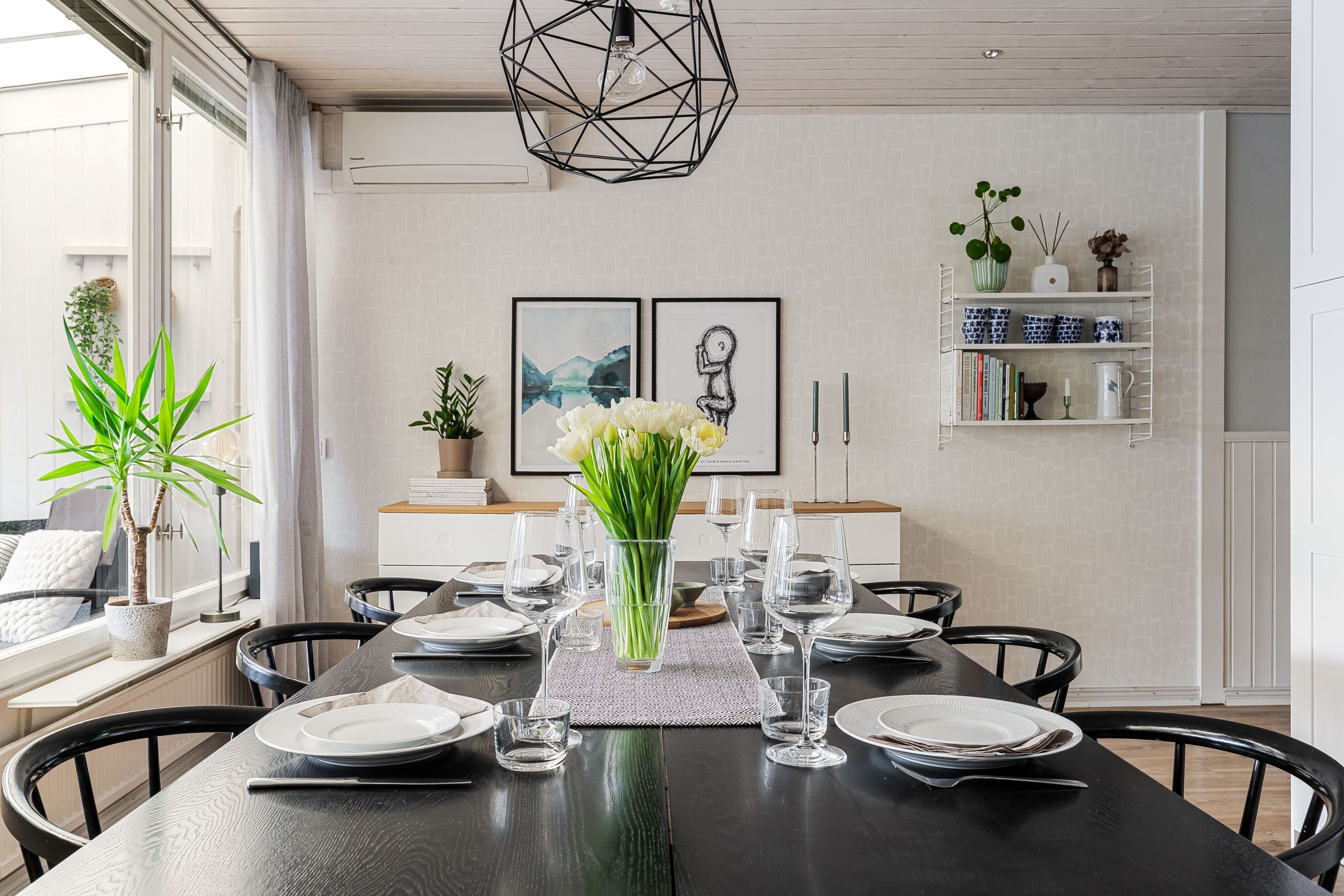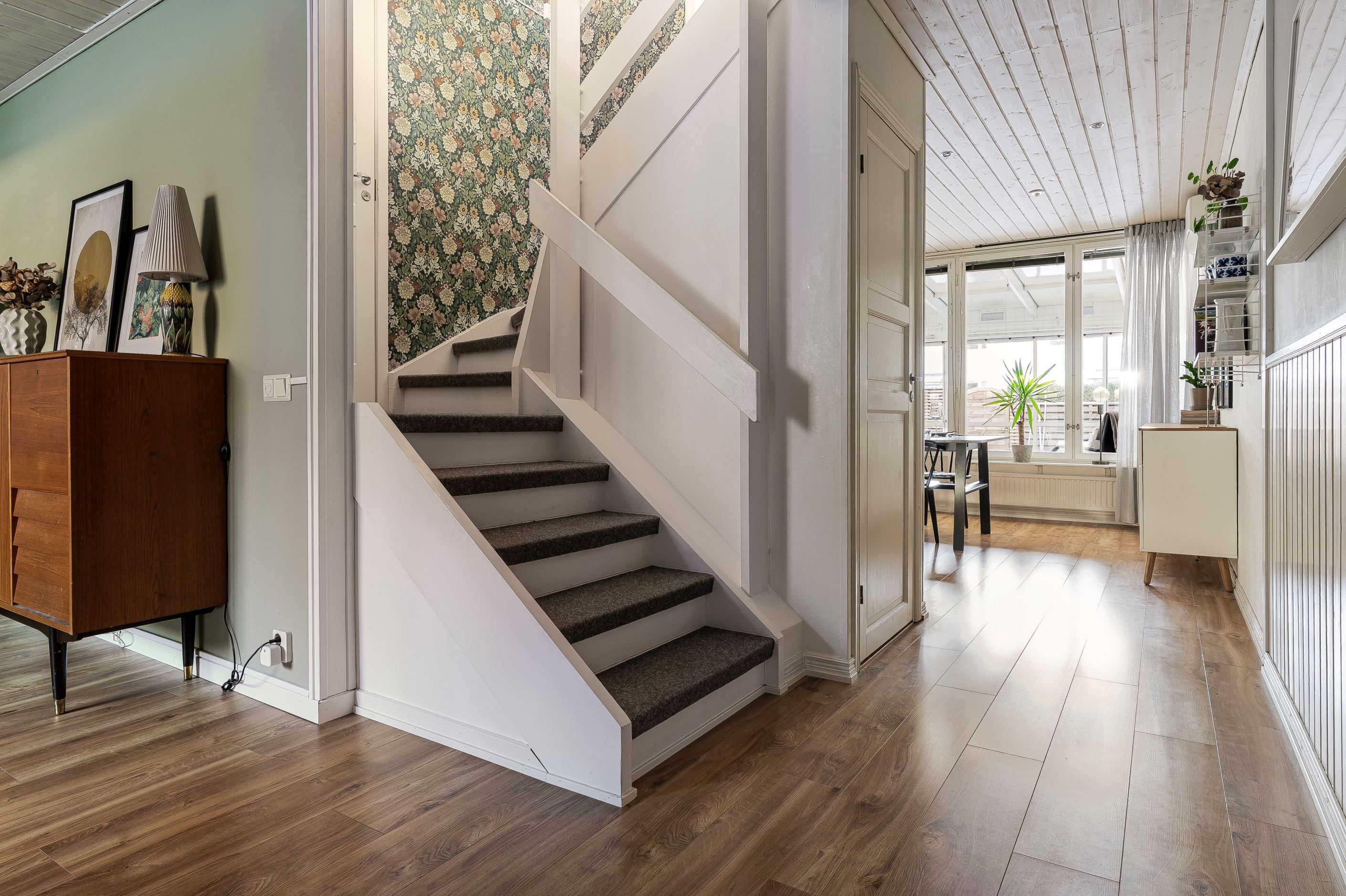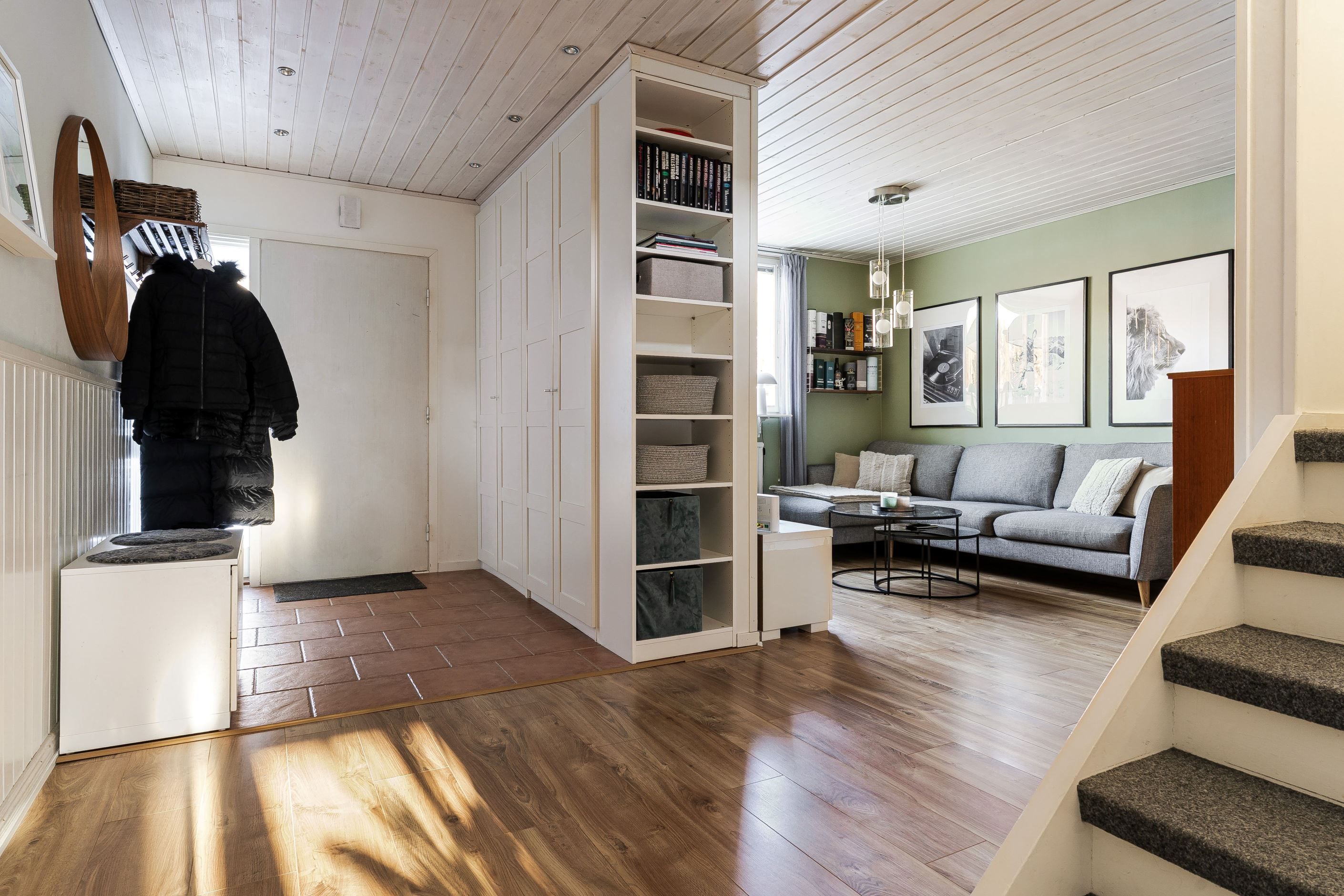 Redan vid entrén möts du av en välkomnande känsla med god förvaring och ljusa, harmoniska ytskikt. Huset präglas av ett fint ljusinsläpp och en genomtänkt planlösning som skapar en naturlig rörelse mellan sociala och privata ytor. Köket är både funktionellt och inbjudande, med gott om arbetsyta och plats för matbord, och härifrån når du det inglasade uterummet som suddar ut gränsen mellan inne och ute. Vardagsrummet är trivsamt och lättmöblerat, perfekt för både vardagskvällar och helgmys. Övre plan rymmer flera flexibla rum som kan anpassas efter livets olika skeden, oavsett om behovet är sovrum, hemmakontor eller lekyta och kompletteras av ett badrum med badkar för extra vardagslyx. Ett hem som känns lika praktiskt som ombonat.