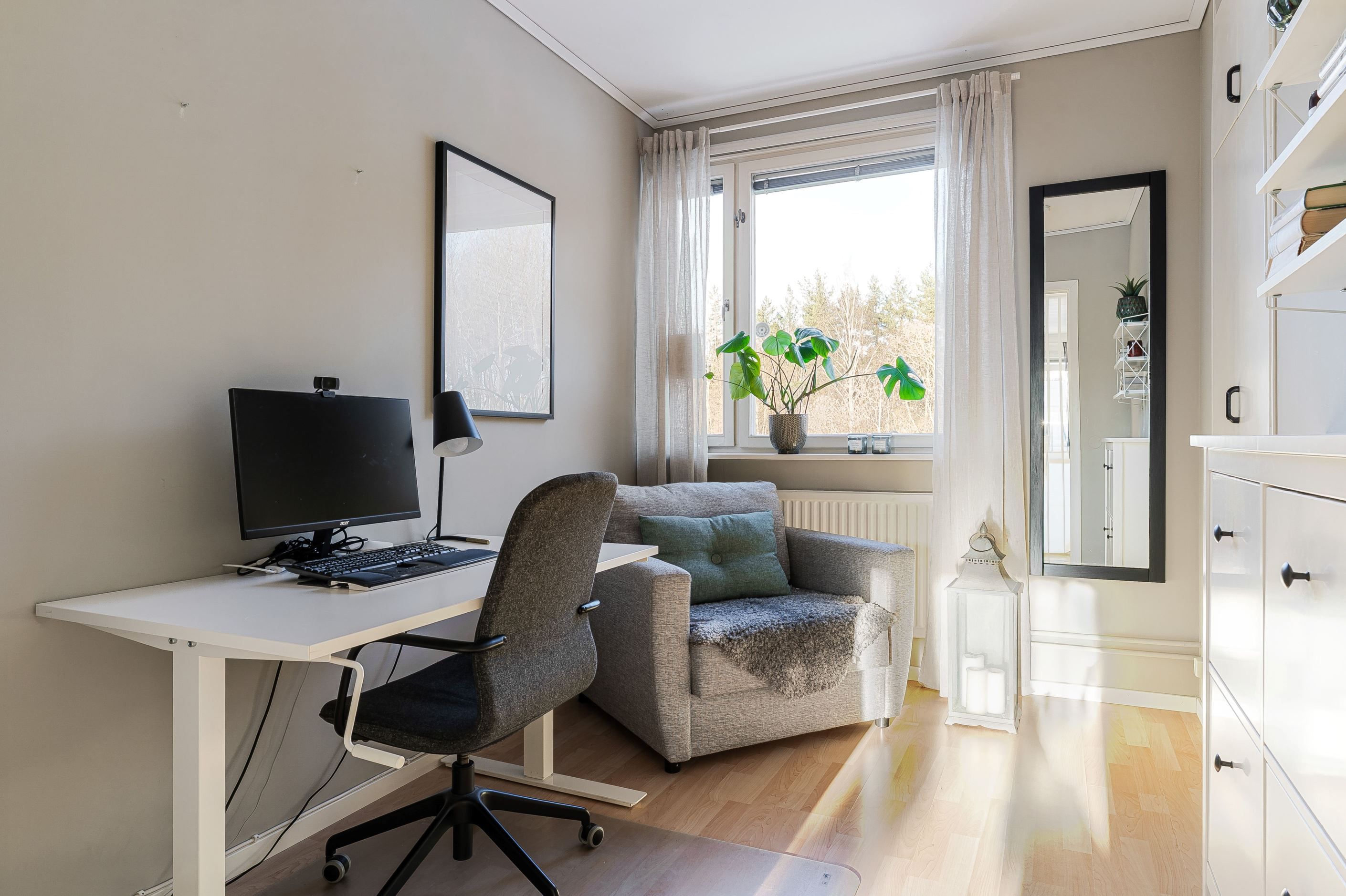 När du kliver utanför dörren möts du av Viksängs lugna och gröna omgivningar, med Mälarens glittrande vatten och småbåtshamnen inom bekvämt promenadavstånd. Här bor du i ett område som kombinerar natur och stad på ett fint sätt, perfekt för både morgonpromenader och ett aktivt familjeliv. Förskolor, skolor, familjecentrum och service finns nära till hands, liksom Viksängs centrum med butiker och samhällsservice. Kommunikationerna är utmärkta med buss, cykelstråk och snabb access till E18, vilket gör vardagen smidig oavsett färdsätt. Ett område där barnfamiljer, unga vuxna och äldre trivs sida vid sida.