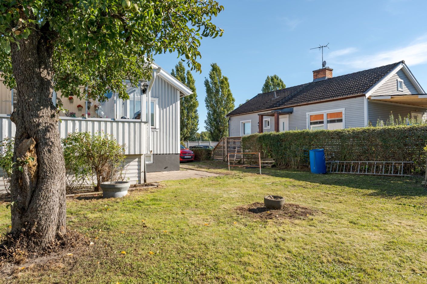 Bostaden är fördelad på två våningar med praktiska ytor att utveckla vidare, samt en delvis inredd vind som erbjuder extra förvaring eller potential att anpassas för andra behov. Den generösa, friköpta tomten ger goda möjligheter att skapa trädgård, uteplats eller andra projekt utefter dina visioner.