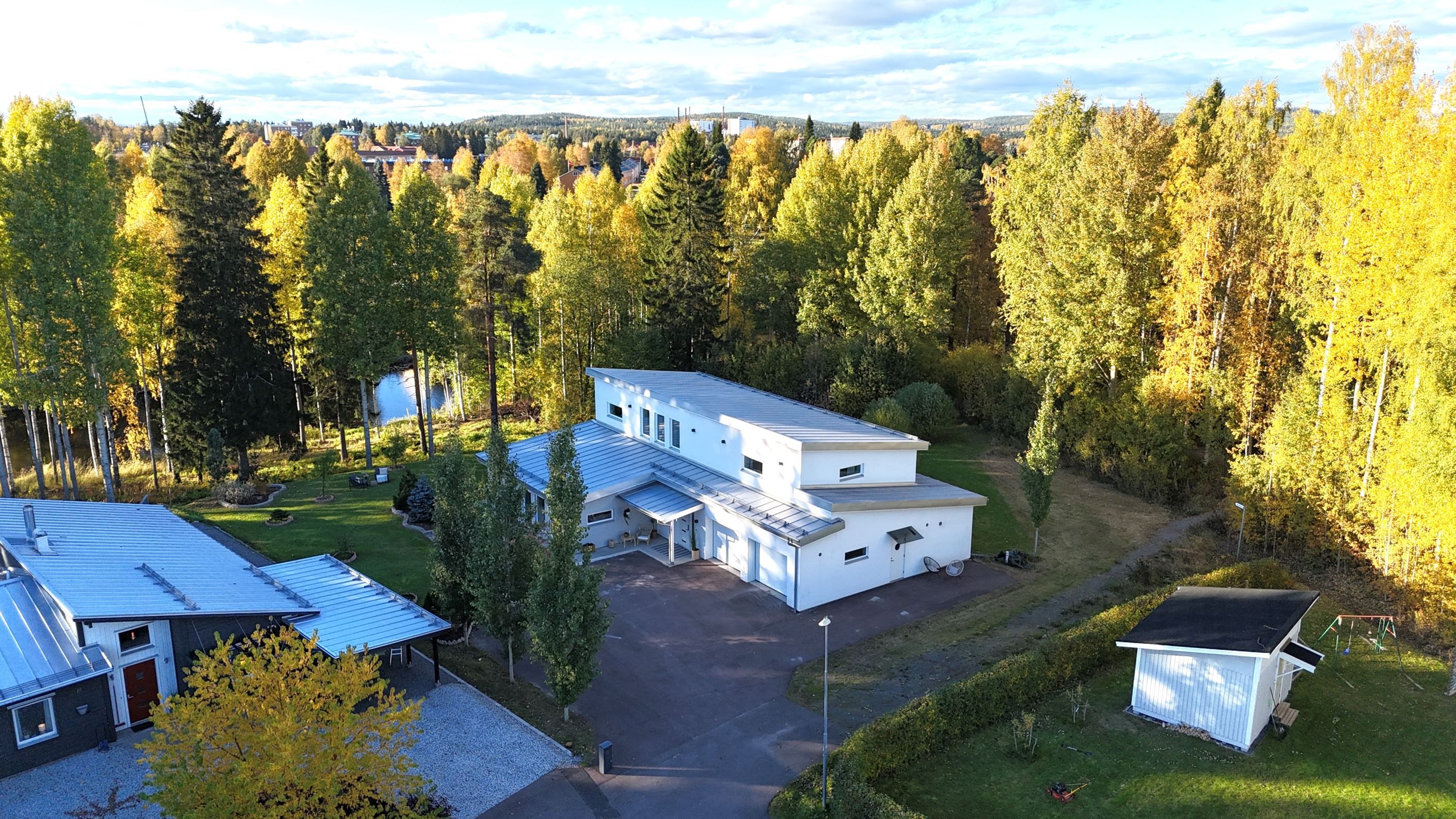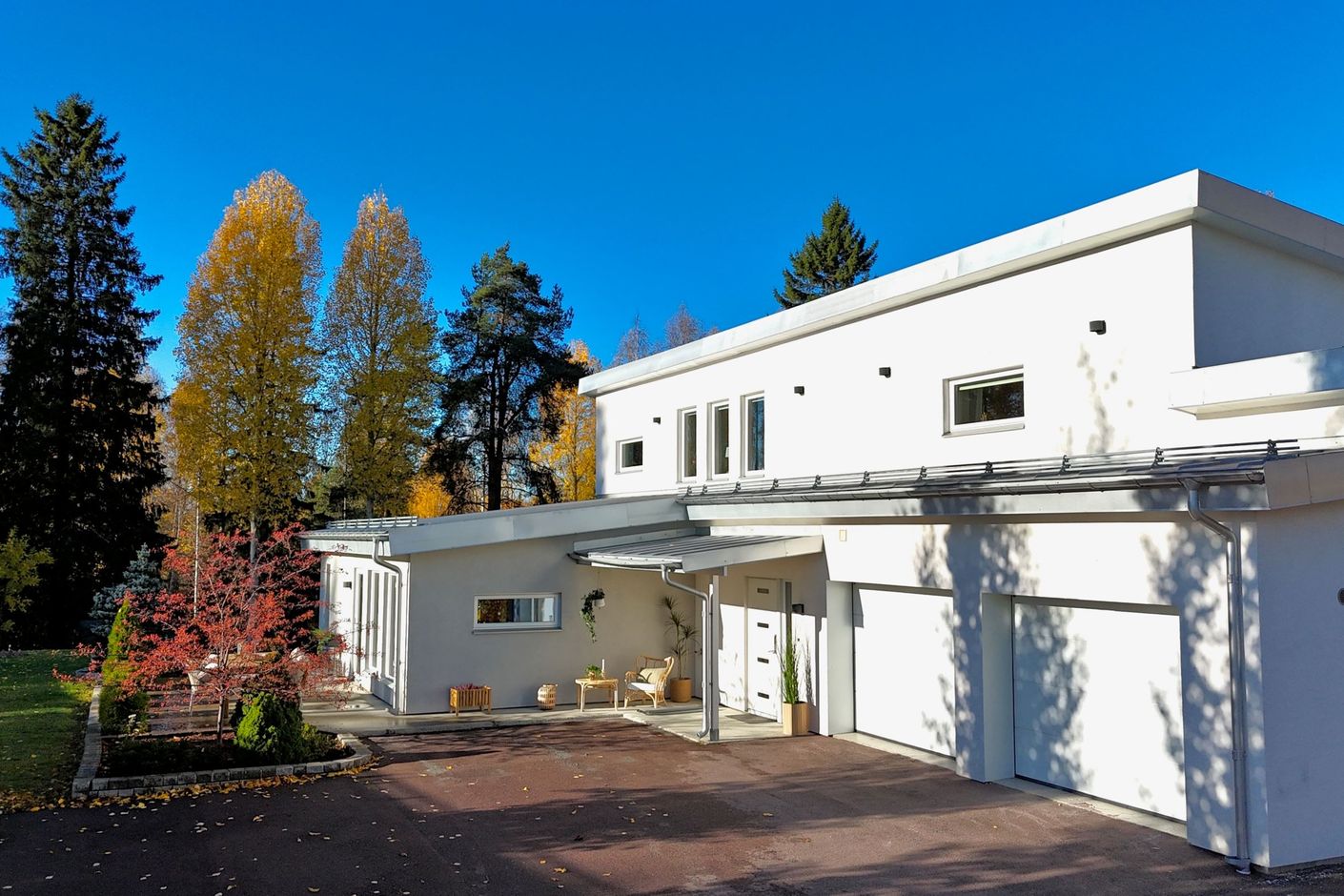 Denna arkitektritade villa ligger vackert inbäddad intill Bodån och erbjuder dubbla vardagsrum, två kök, fyra sovrum, relaxavdelning med bastu, dubbelgarage med elektriska portar och en utemiljö som gör varje årstid till en njutning.