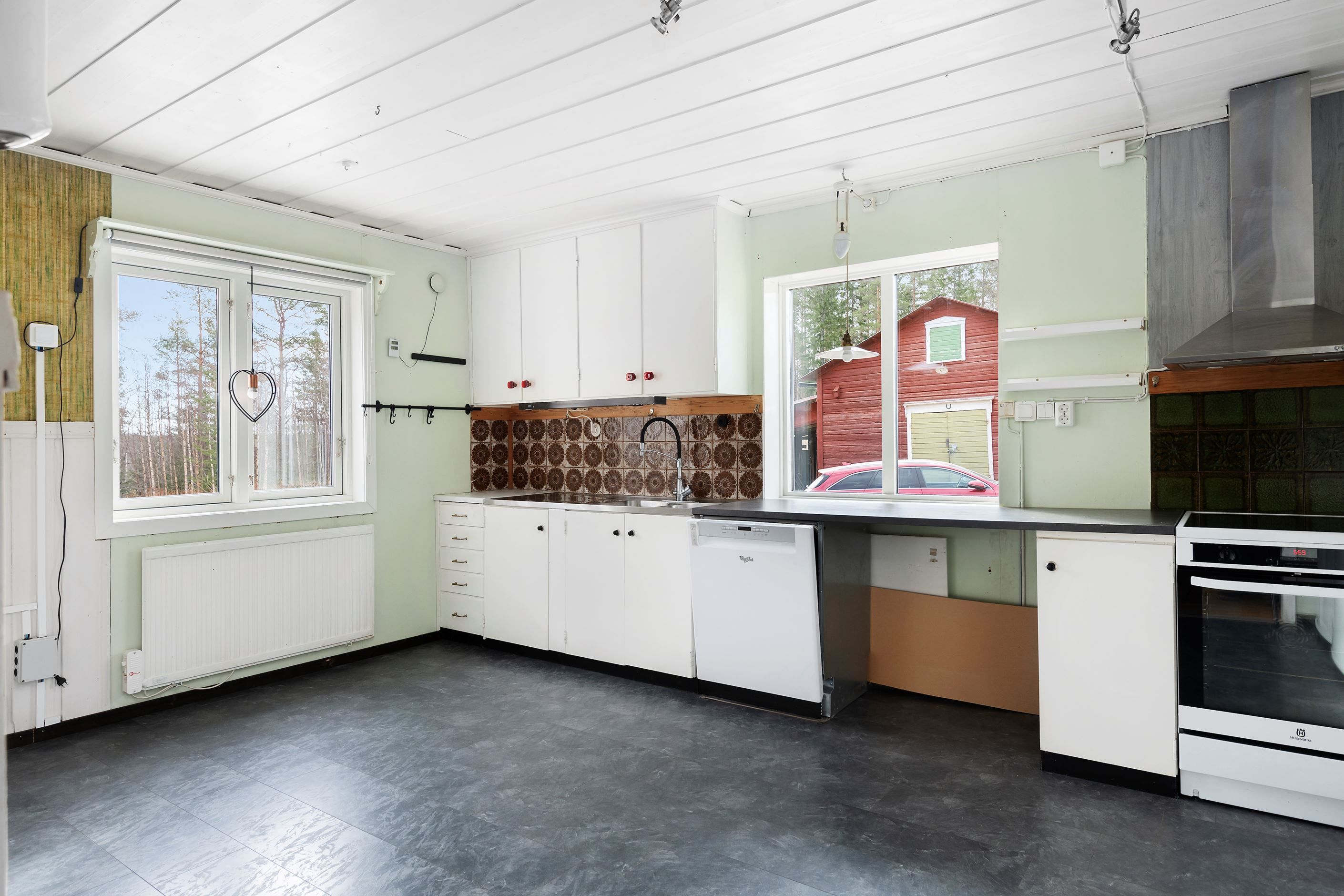 Vidare erbjuds ett mysigt vardagsrum med kamin som sprider både värme och atmosfär, en inre passage som passar perfekt som läshörna eller arbetsyta samt ett fräscht duschrum utrustat med tvättmaskin och torkmöjligheter. Bostaden är i gott skick men erbjuder samtidigt potential för den som vill utveckla och förädla vidare.