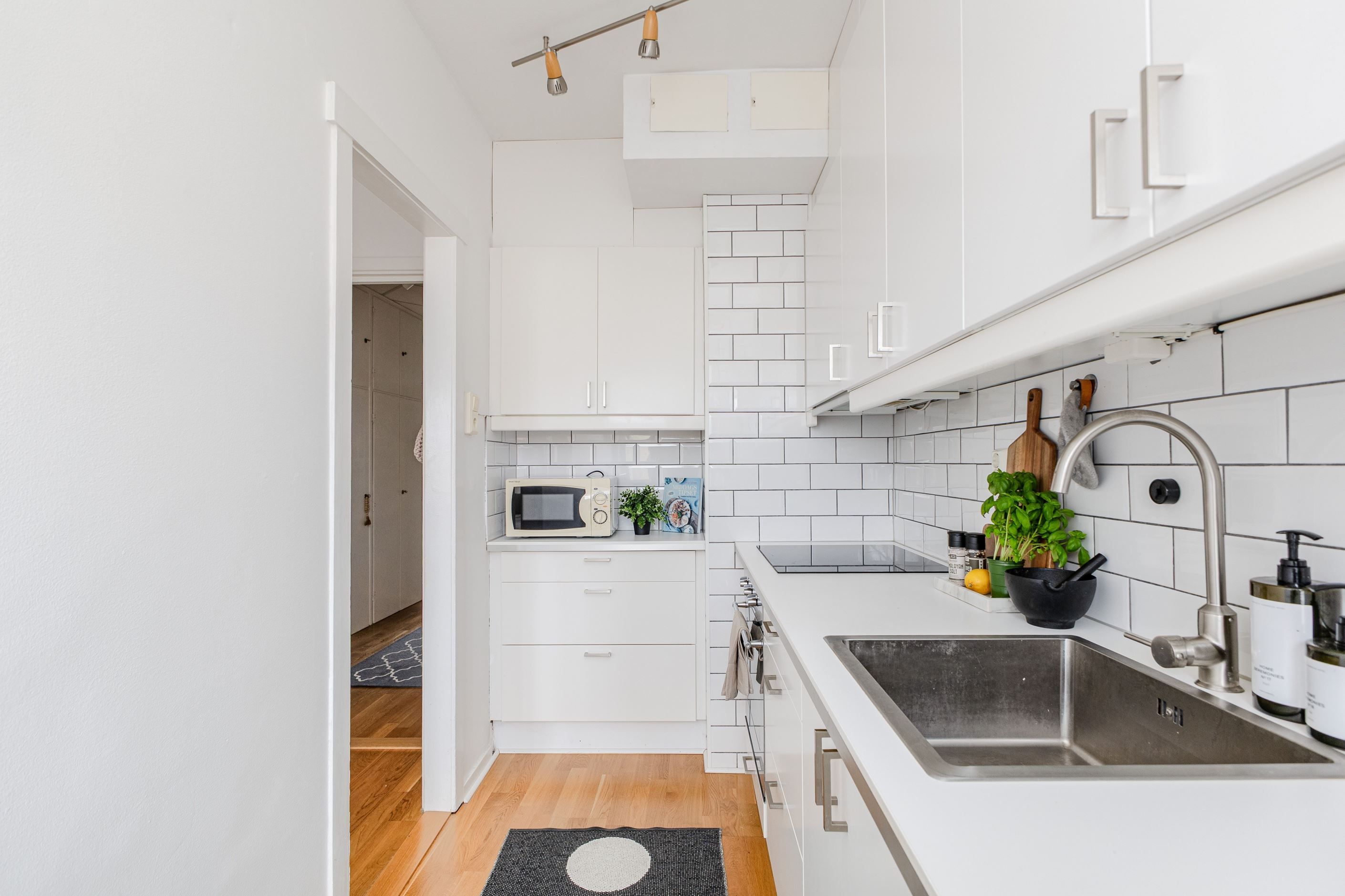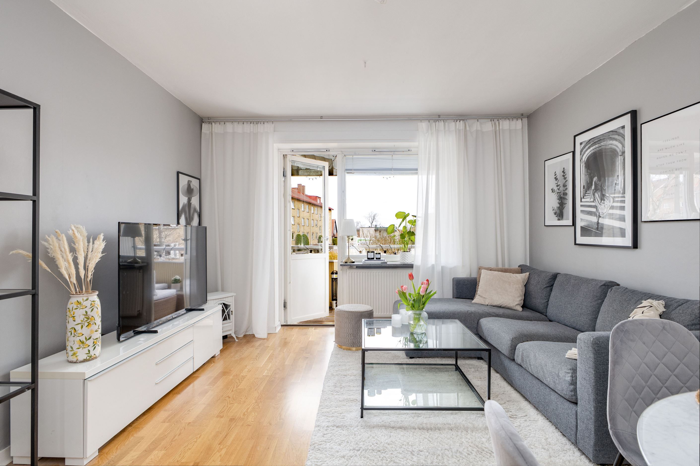 Bostaden erbjuder ett stilrent och smakfullt renoverat kök med goda förvaringsmöjligheter, samt ett ljust och luftigt vardagsrum med plats för både soffgrupp och matbord. Från vardagsrummet nås balkongen i eftertraktat västerläge, en perfekt plats för att njuta av soliga eftermiddagar och harmoniska sommarkvällar i kvällssolen.