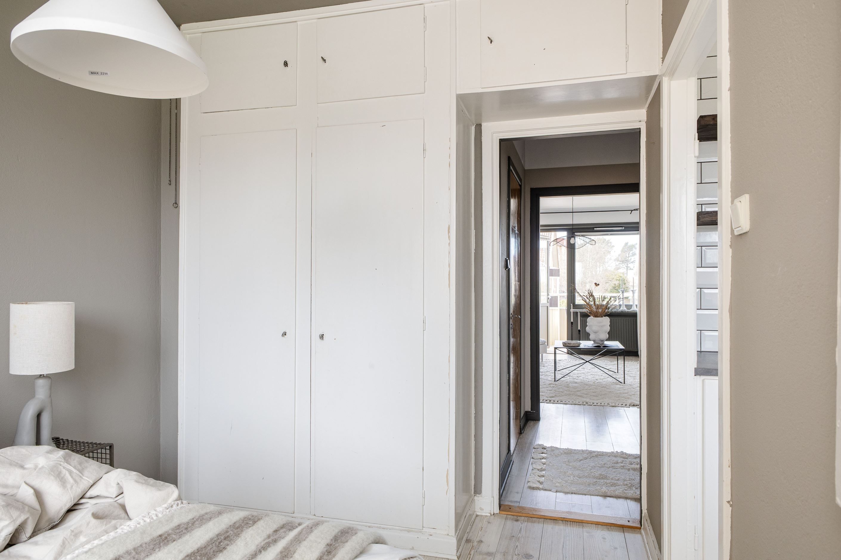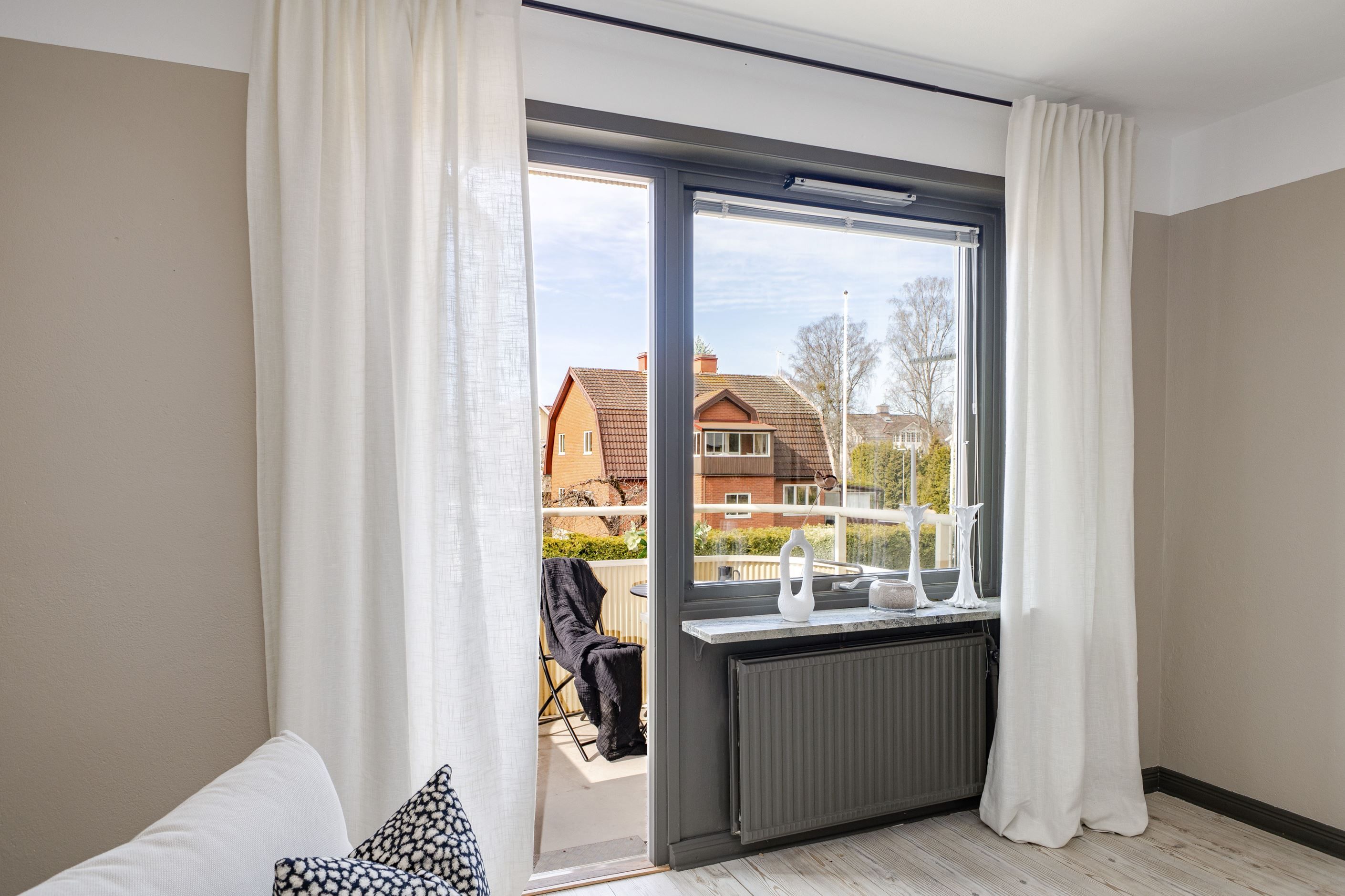 Köket är stilrent och funktionellt med plats för en mindre matgrupp - perfekt för både vardagsmiddagar och mysiga helgfrukostar. Intill ligger ett flexibelt rum som kan användas som sovrum eller matsal, helt utifrån dina behov och önskemål. Det rymliga vardagsrummet blir bostadens självklara samlingspunkt, med gott om plats för både soffgrupp och matplats för den som önskar. Härifrån kliver du ut på den härliga balkongen i soligt sydvästläge som blir en given favoritplats där du kan njuta av eftermiddagssol och ljumma sommarkvällar. Vidare finner du badrummet som är helkaklat, dessutom förberett för tvättmaskin för extra bekvämlighet i vardagen.