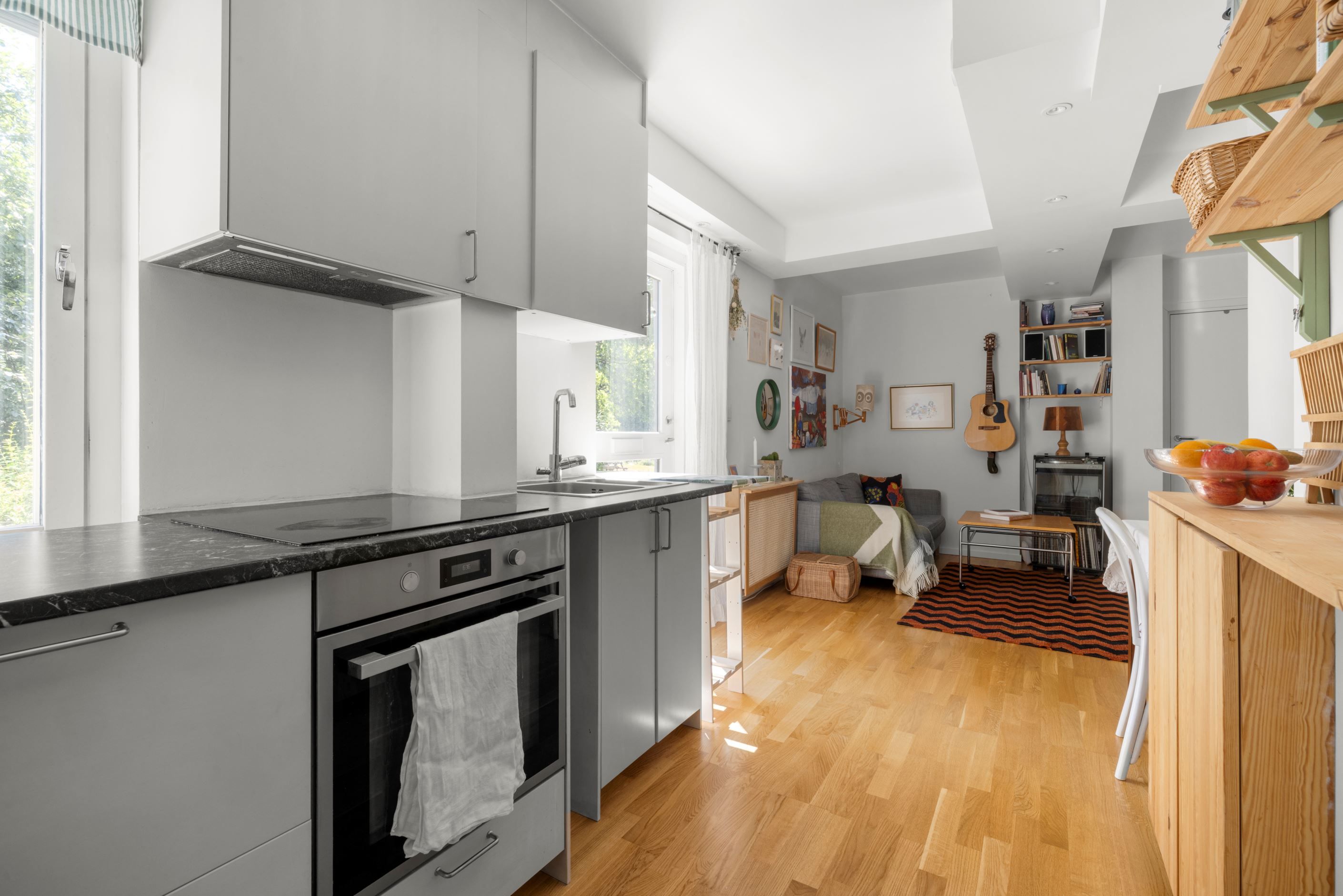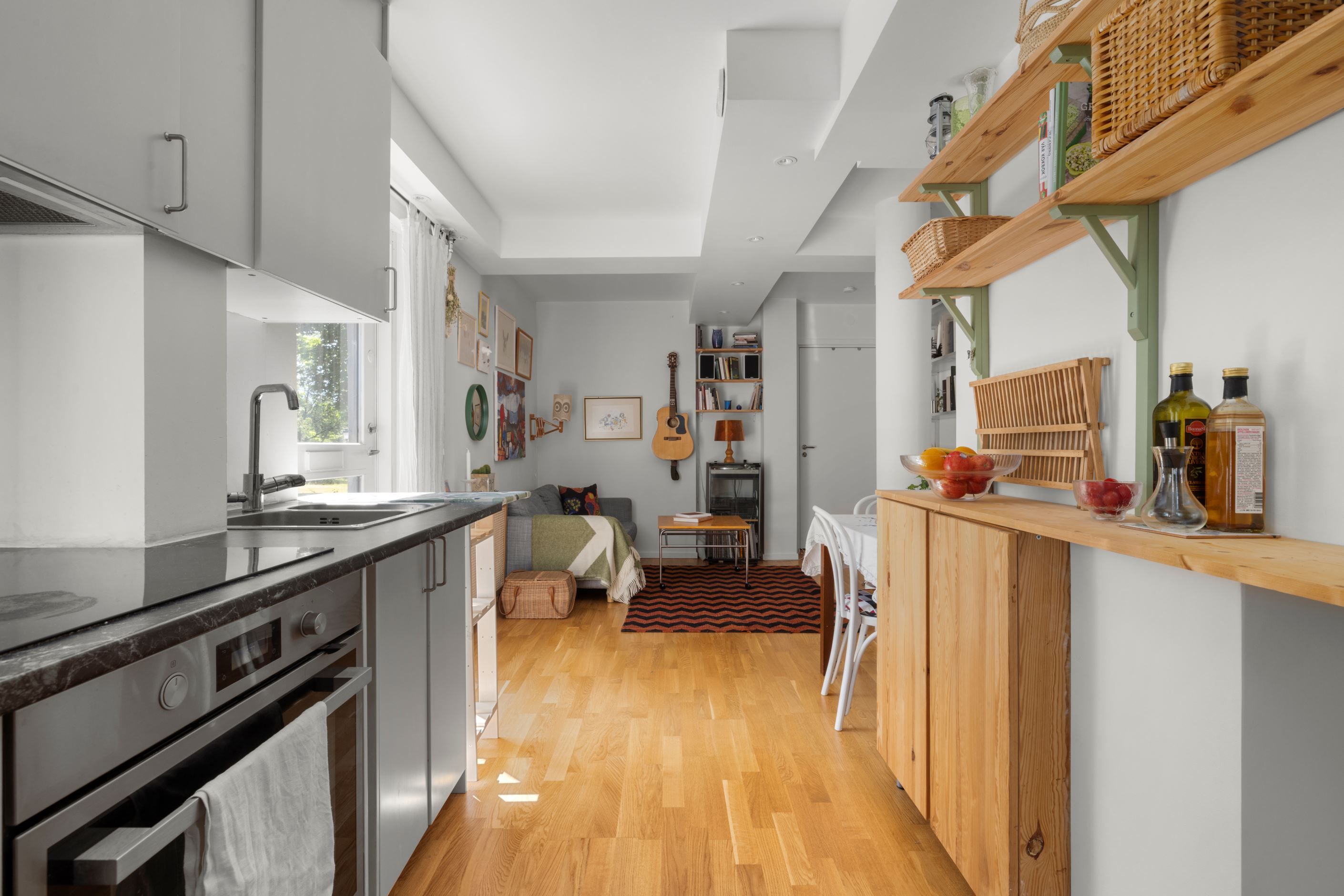 Stora fönsterpartier släpper in ett generöst ljusflöde och bjuder på rogivande utsikt mot grönska. Det rymliga sovrummet rymmer utan problem en dubbelsäng, skrivbord och ytterligare möbler efter behov. Här finns också ett stort, helkaklat badrum med tvättmöjligheter och allt du behöver för en bekväm vardag.