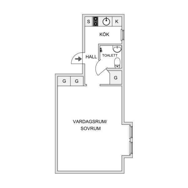 Välkomna till denna trevliga 1:a på Järnvägsgatan 3C!