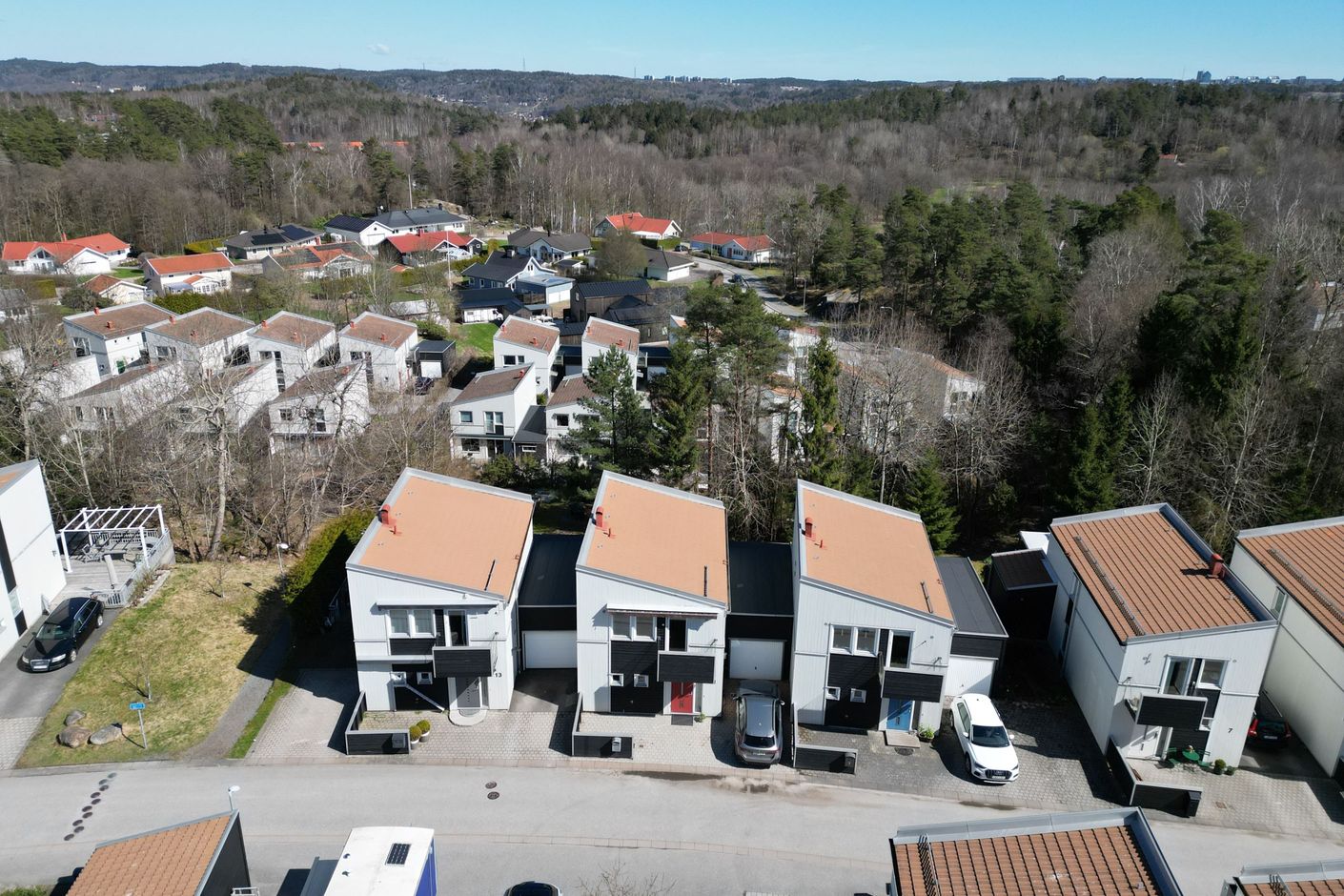 Till bostaden hör garage med elektrisk port samt ett intilliggande förråd som med fördel kan användas som extra förvaring, hobbyutrymme eller liknande. På uppfarten finns dessutom plats för bil, och på framsidan finns en eldriven markis som ger skön skugga under soliga dagar. Här bor ni i ett lugnt och familjevänligt område med närhet till lekplatser, grönområden och fina promenadstråk. Samtidigt har ni smidigt avstånd till service, skolor och butiker i Kärra Centrum samt Bäckebols handelsområde. Goda kommunikationer tar er enkelt in till centrala Göteborg.