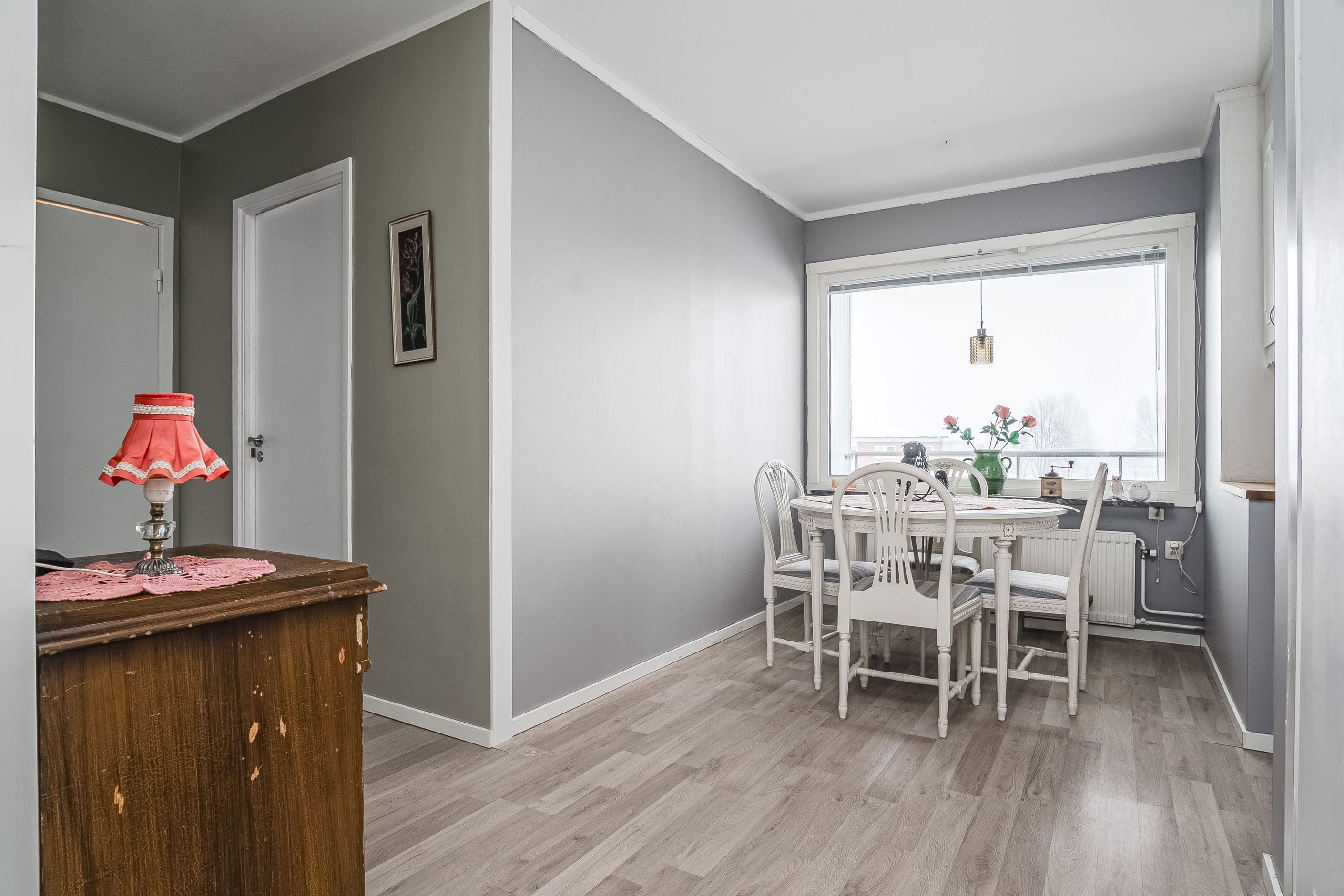 Denna välplanerade och hemtrevliga bostadsrätt om 76,5 kvadratmeter erbjuder ett boende som passar både den lilla familjen och dig som söker en ljus, rymlig och bekväm lägenhet med närhet till allt. Redan när du kliver in möts du av en trevlig planlösning som skapar ett naturligt flöde mellan köket och matplatsen – en perfekt plats för både vardagsliv och sociala tillställningar. I köket finns gott om förvaring, bra arbetsytor och plats för ett matbord där vänner och familj gärna samlas. Från matplats/kök når du bostadens balkong i soligt förmiddagsläge – en härlig plats för morgonkaffet med utsikt över den gröna parken och den intilliggande lekplatsen.