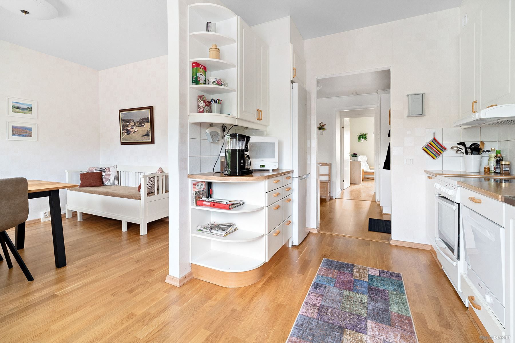 Välkomna till Johannesgatan 1D och denna trivsamma tvåa på våning ett! Lägenheten är ombyggd och har tidigare varit en trea med två hallar. När lägenheten byggdes om revs en halv vägg mellan köket och ett av sovrummen vilket gör att det nu finns ett trivsamt matrum i anslutning till köket. Lägenheten erbjuder, utöver kök med matplats, vardagsrum med balkong i soligt söderläge, badrum med tvättmaskin, gäst-wc och sovrum. Här finns också förvaringsmöjligheter i klädkammare. Bostadens ena hall används idag som ett extra förvaringsrum dörr i dörr med lägenheten. Rummet/hallen har en dörr in till sovrummet, denna dörr används inte idag men går att återta i bruk för den som önskar två separata ingångar. Hallen/rummet lämpar sig bra för förvaring eller som kontor för den som vill ha ett separat arbetsrum.