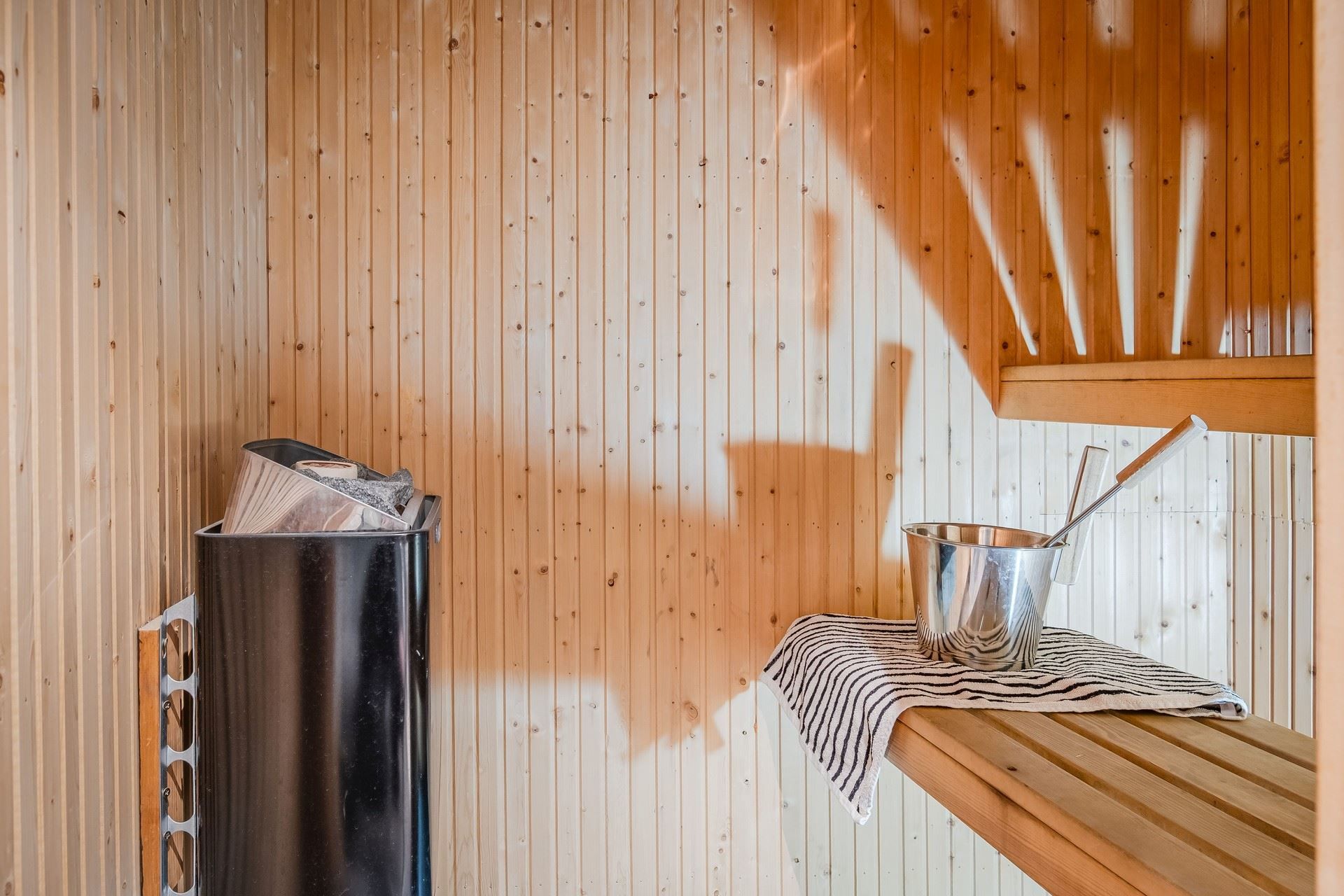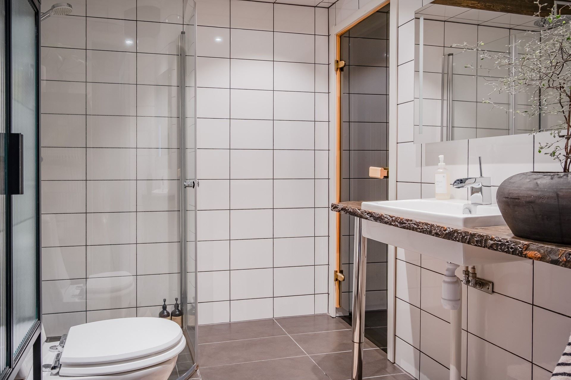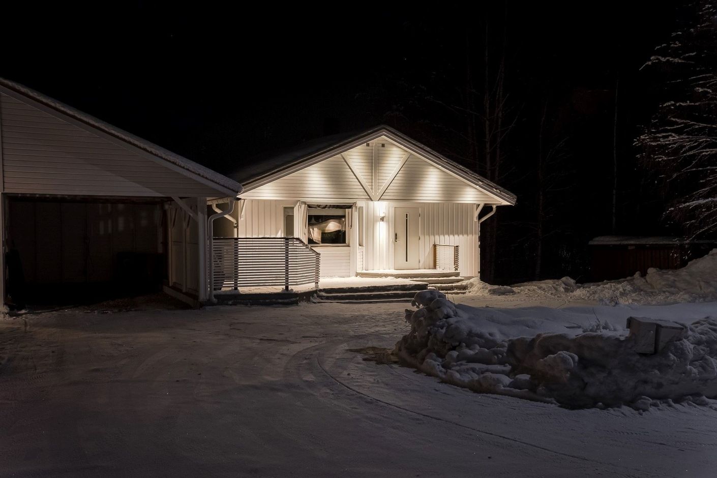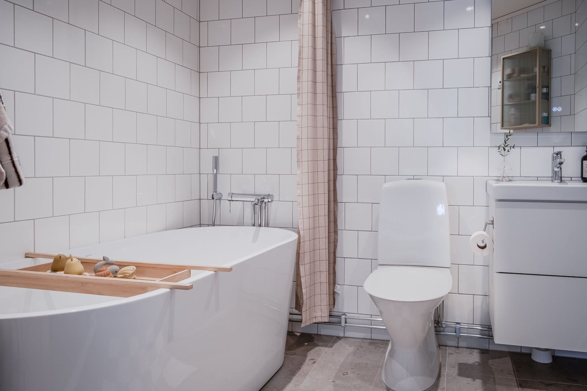 Bostaden har två enhetliga och välutrustade badrum, ett på respektive plan. Det ena med dusch och bastu och det andra med badkar. På nedre plan finns en kamin för extra trivsel och värme. För optimal förvaring finns praktiskt garderobsvägg. Intill finner du utgång till villans bakgård med badtunna, perfekt avkoppling varma sommardagar. Finns 3-4 sovrum, varav ett beläget på entréplan.