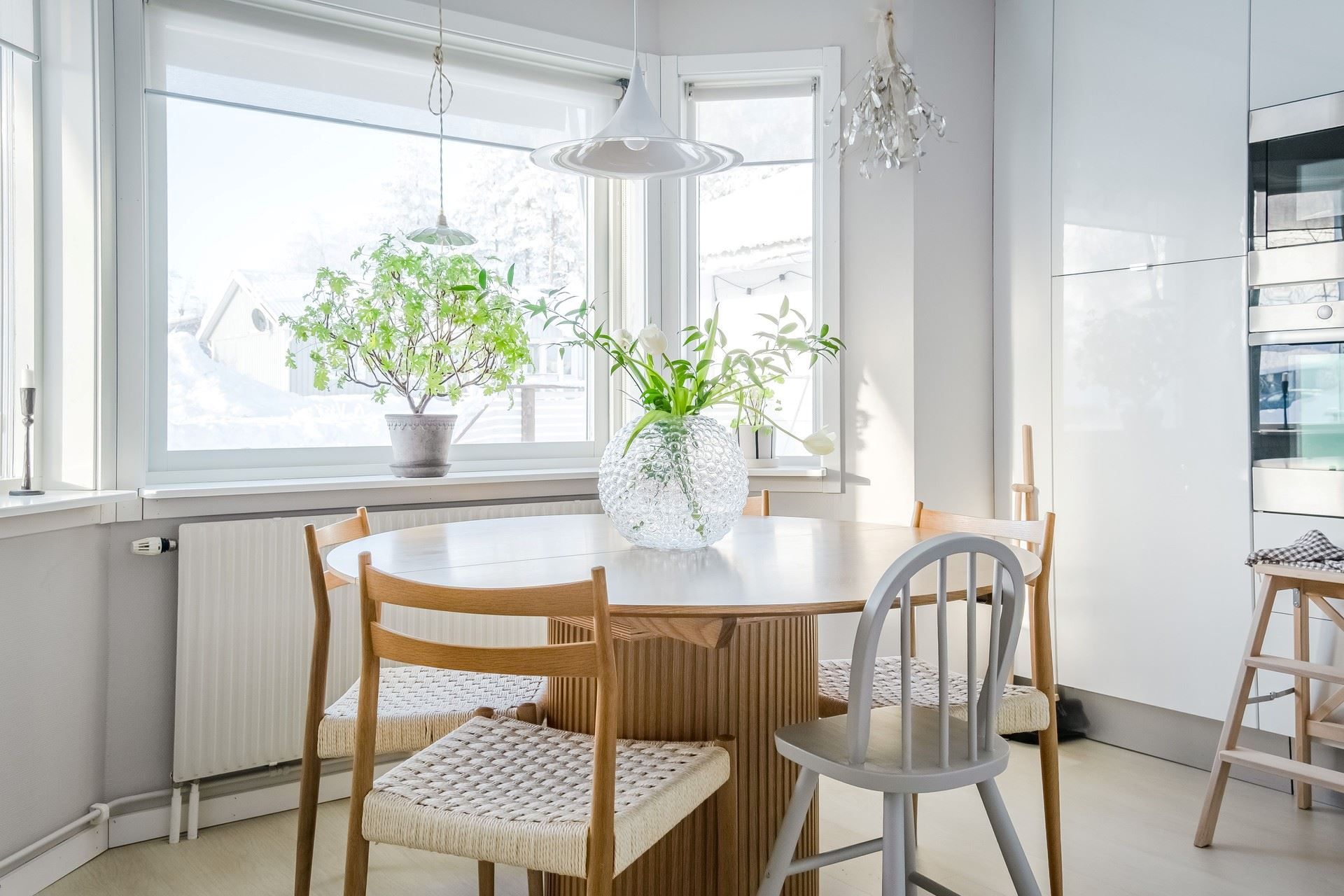 Här erbjuds en modernt renoverad villa om 115 kvadratmeter som ger plats för hela familjen att trivas. Entréplanet välkomnar in till öppen planlösning och generösa sällskapsytor. Köket är stilrent renoverat och har fint burspråk med utsikt mot framsidan. Även väl utrustat med moderna vitvaror. Från köket har du fin överblick mot vardagsrummet. Därifrån når du utgång till balkong mot villans baksida.