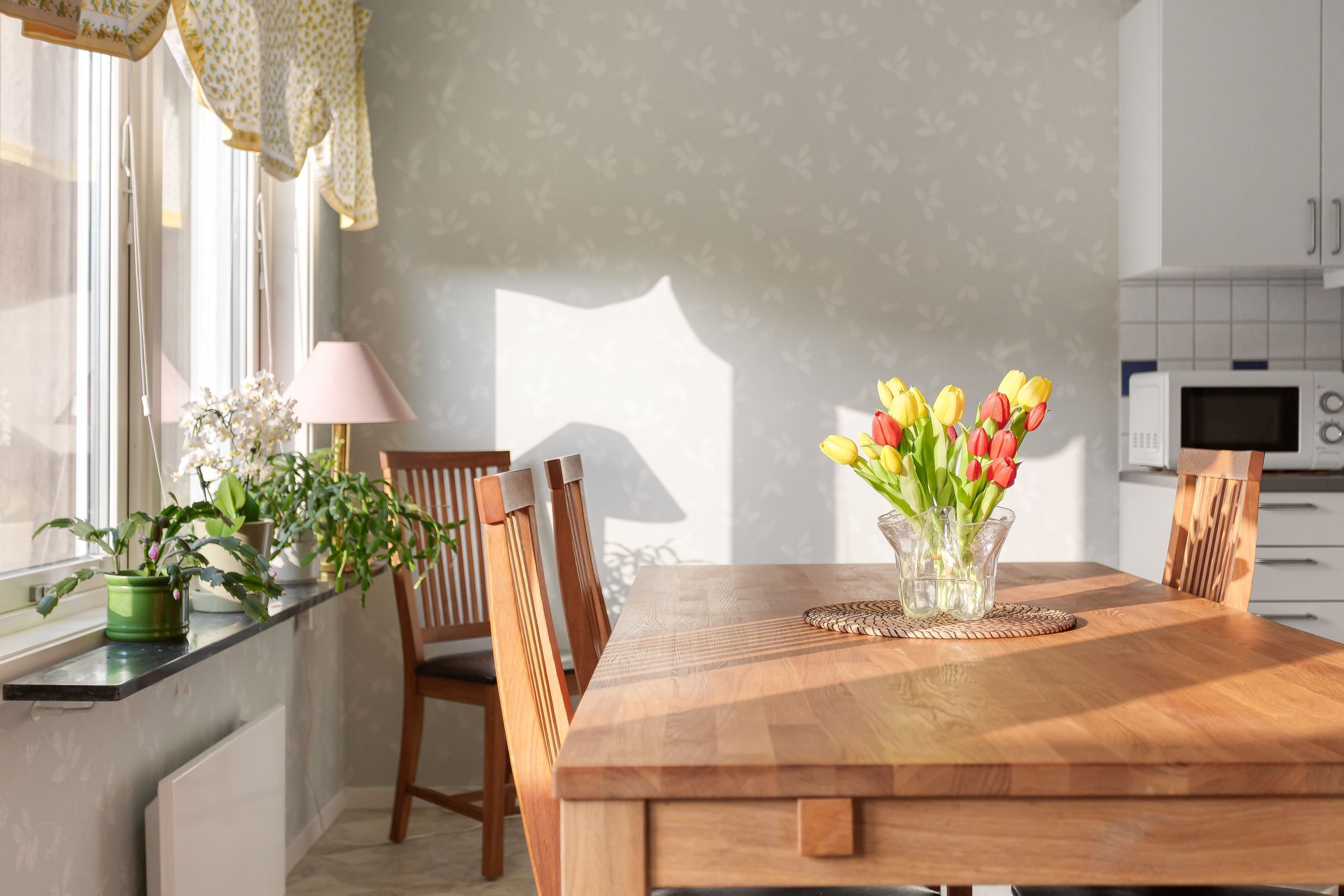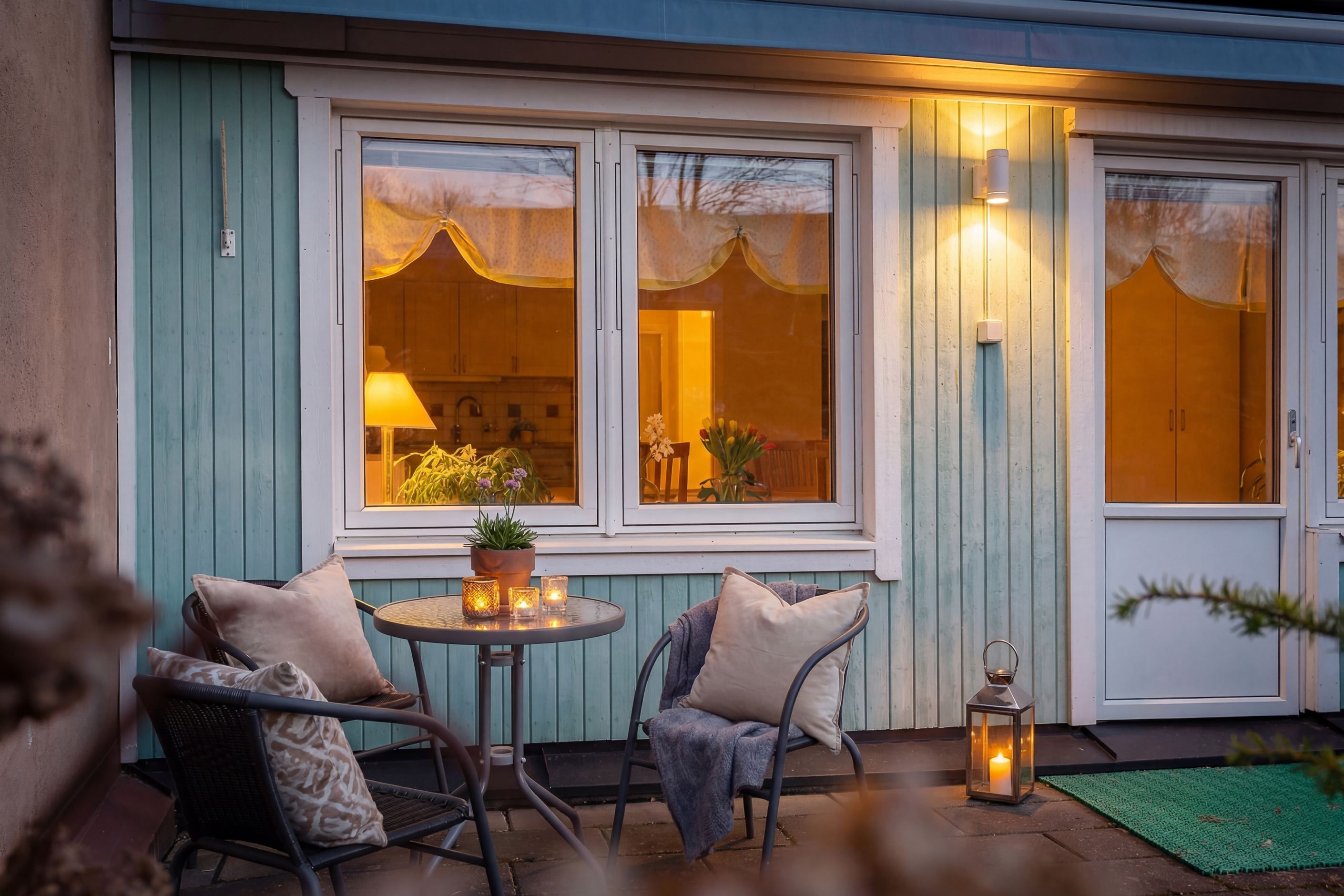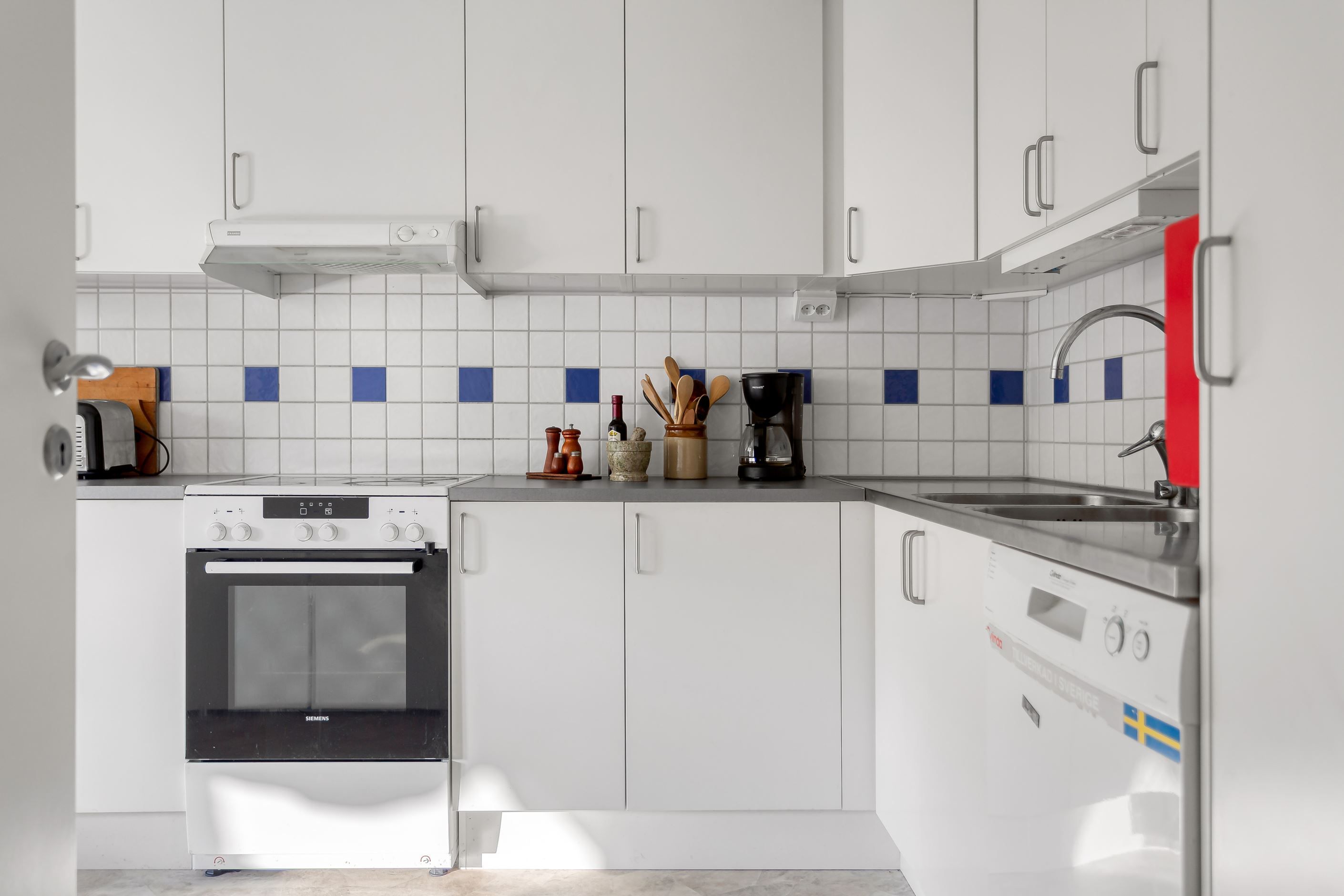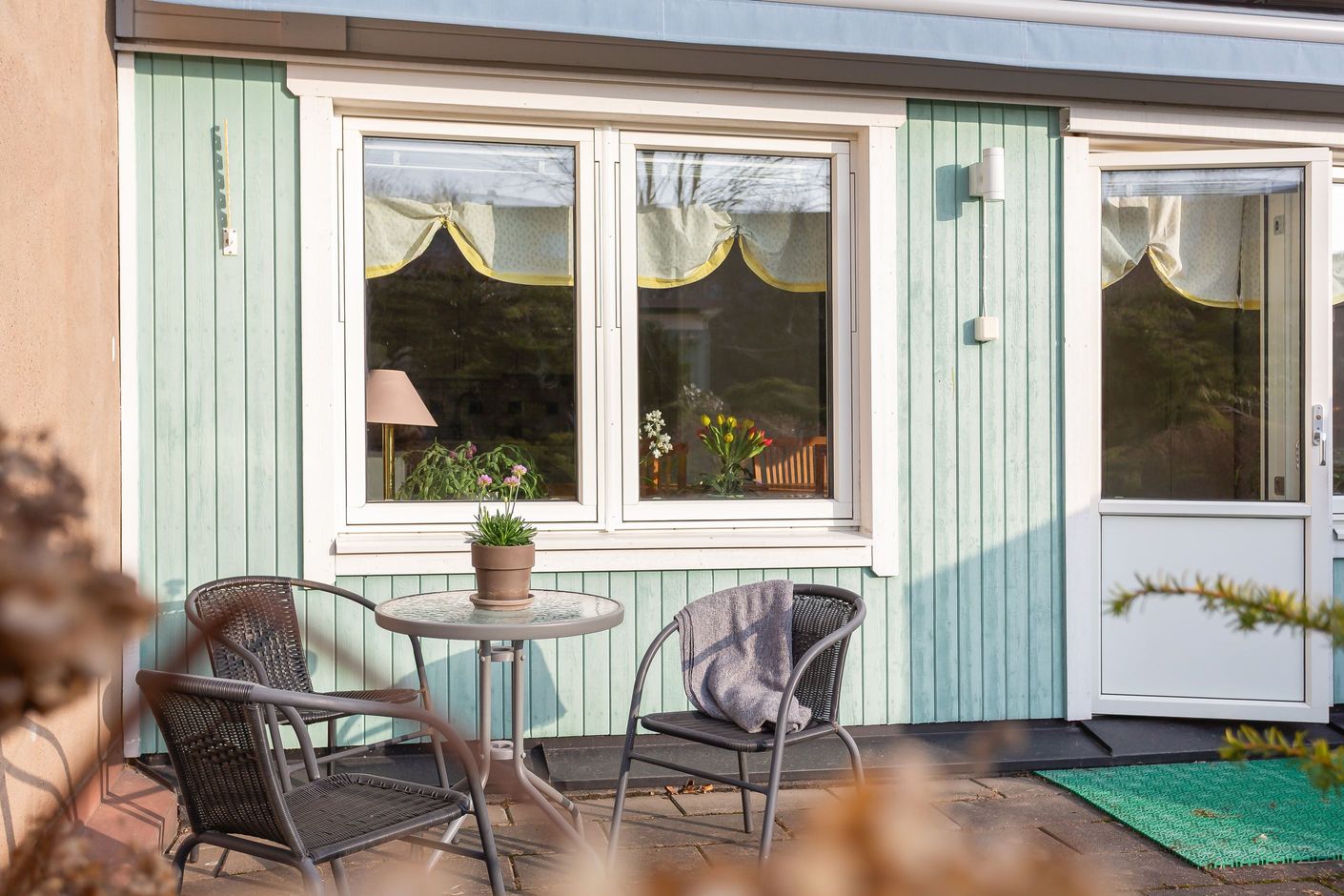 Bostaden renoverades till stora delar under ca. 2016 då hela radhuslängan drabbades av en brand och mycket fick återuppbyggas. Det betyder att det mesta i bostaden är nytt sedan dess, några undantag finns.