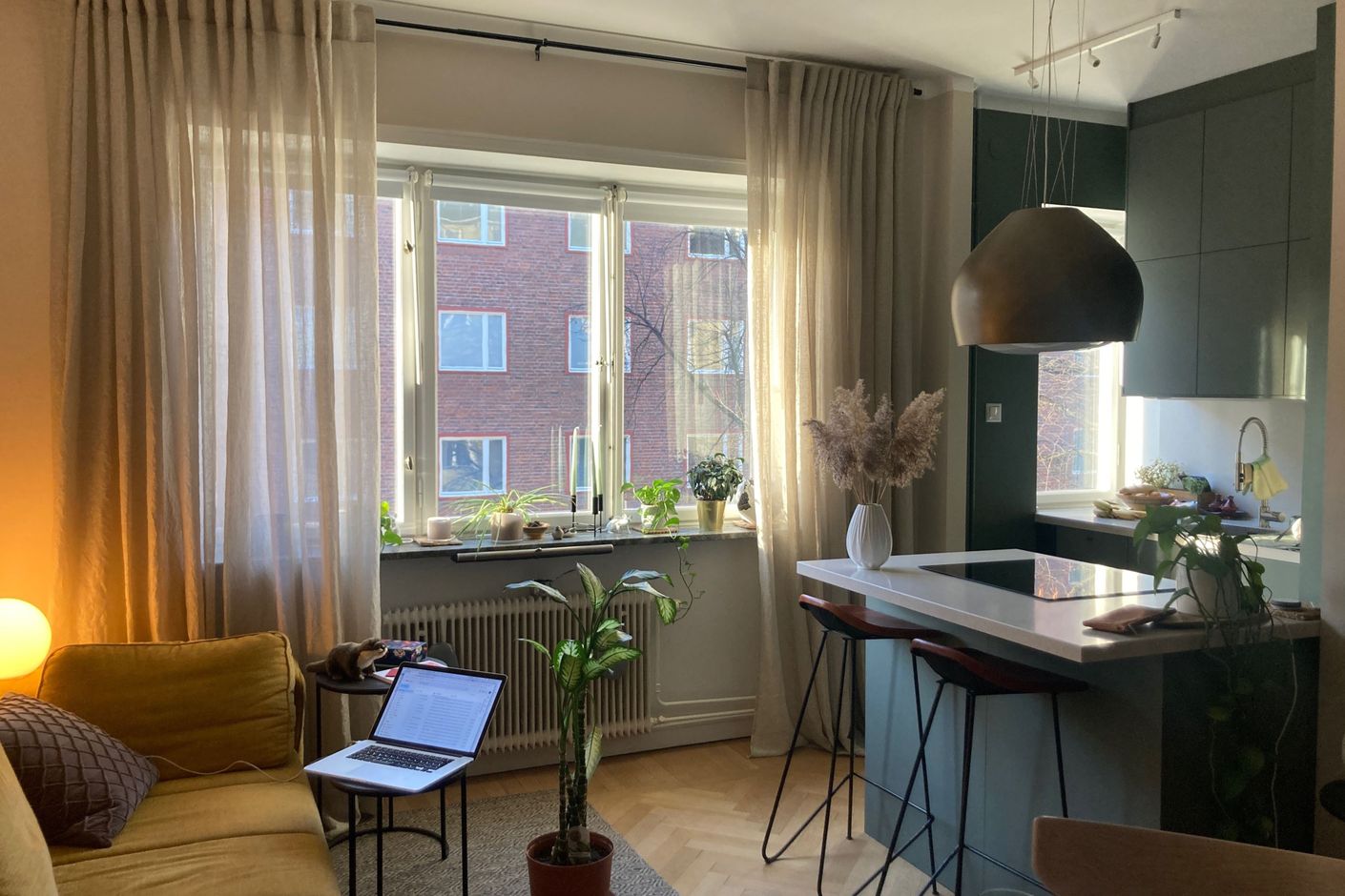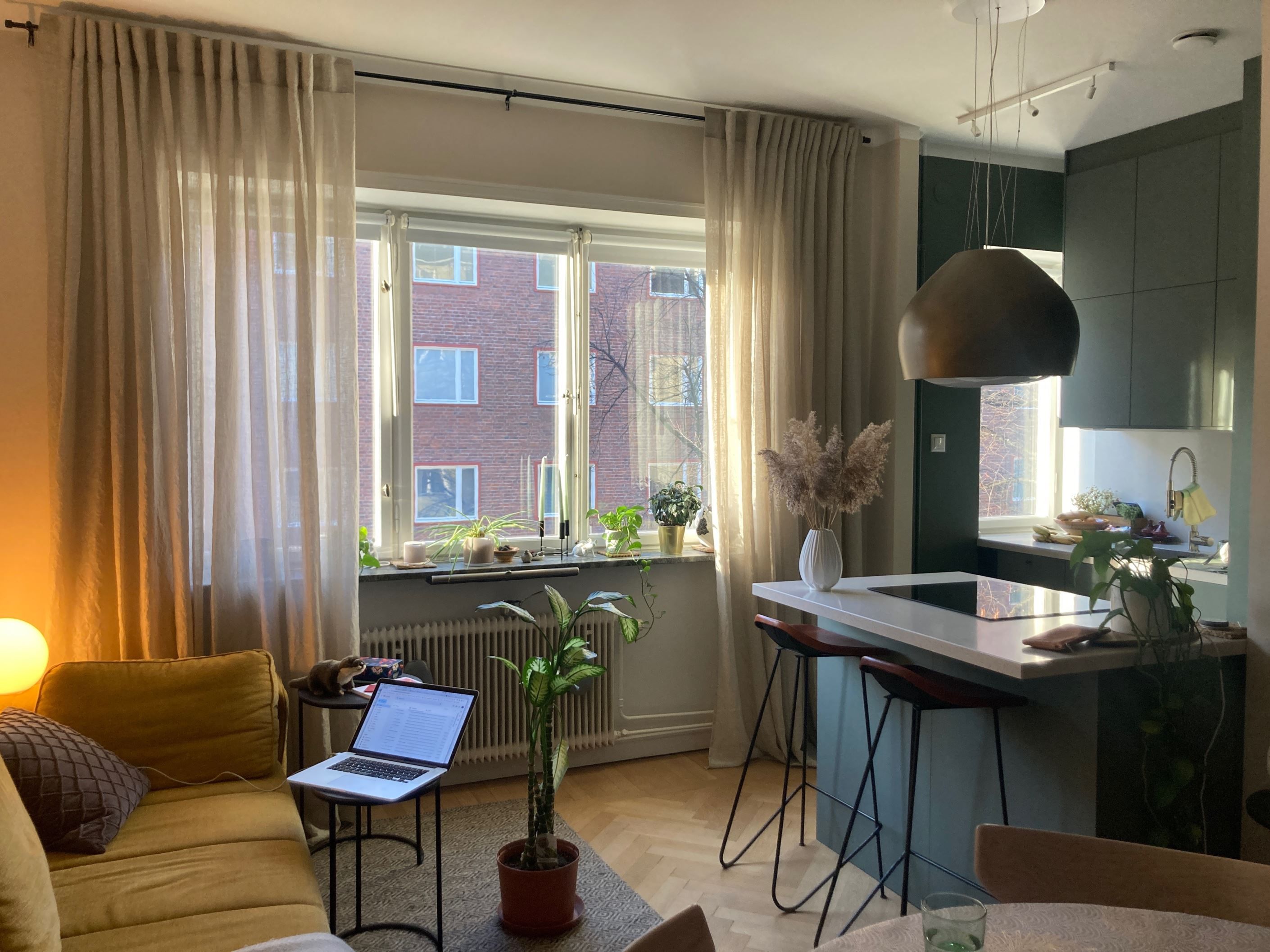 Välkommen till en arkitektritad och smakfullt renoverad etta på bästa adress – ett hem som imponerar med både stil och funktion. Här möts genomtänkt design och hög kvalitet i en perfekt balans. Den luftiga och sociala planlösningen skapar ett hem som känns både rymligt och harmoniskt.