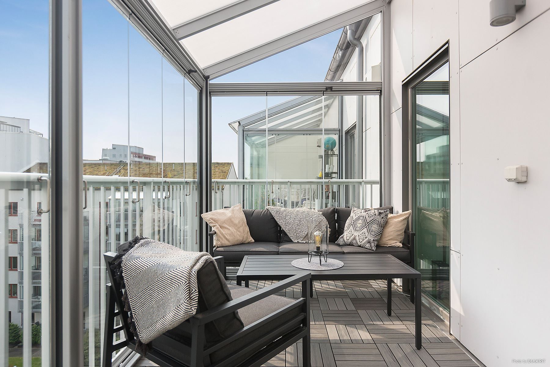 Toppklass, högst upp i huset med stor inglasad balkong!