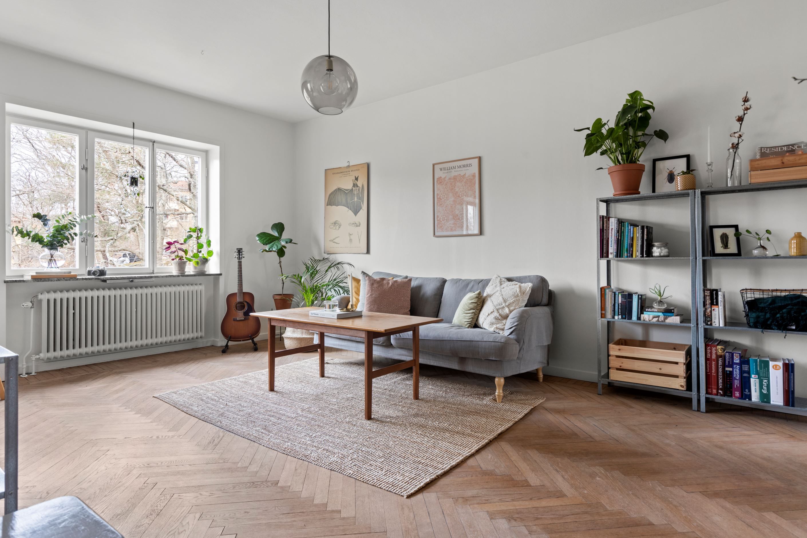 Välkommen till en välplanerad och tilltalande lägenhet med bevarade originaldetaljer högst upp i huset med begränsad insyn. Bostaden har en skön karaktär genom de härligt nötta trägolven som lutats, originalfönster, högt i tak och fönsterpartier mot den lummiga innergården som bjuder på härligt ljusinsläpp. Bostaden har varsamt renoverats med bibehållen funkisstil kombinerat med industriell touch på köket och en genomgående ljus disposition.