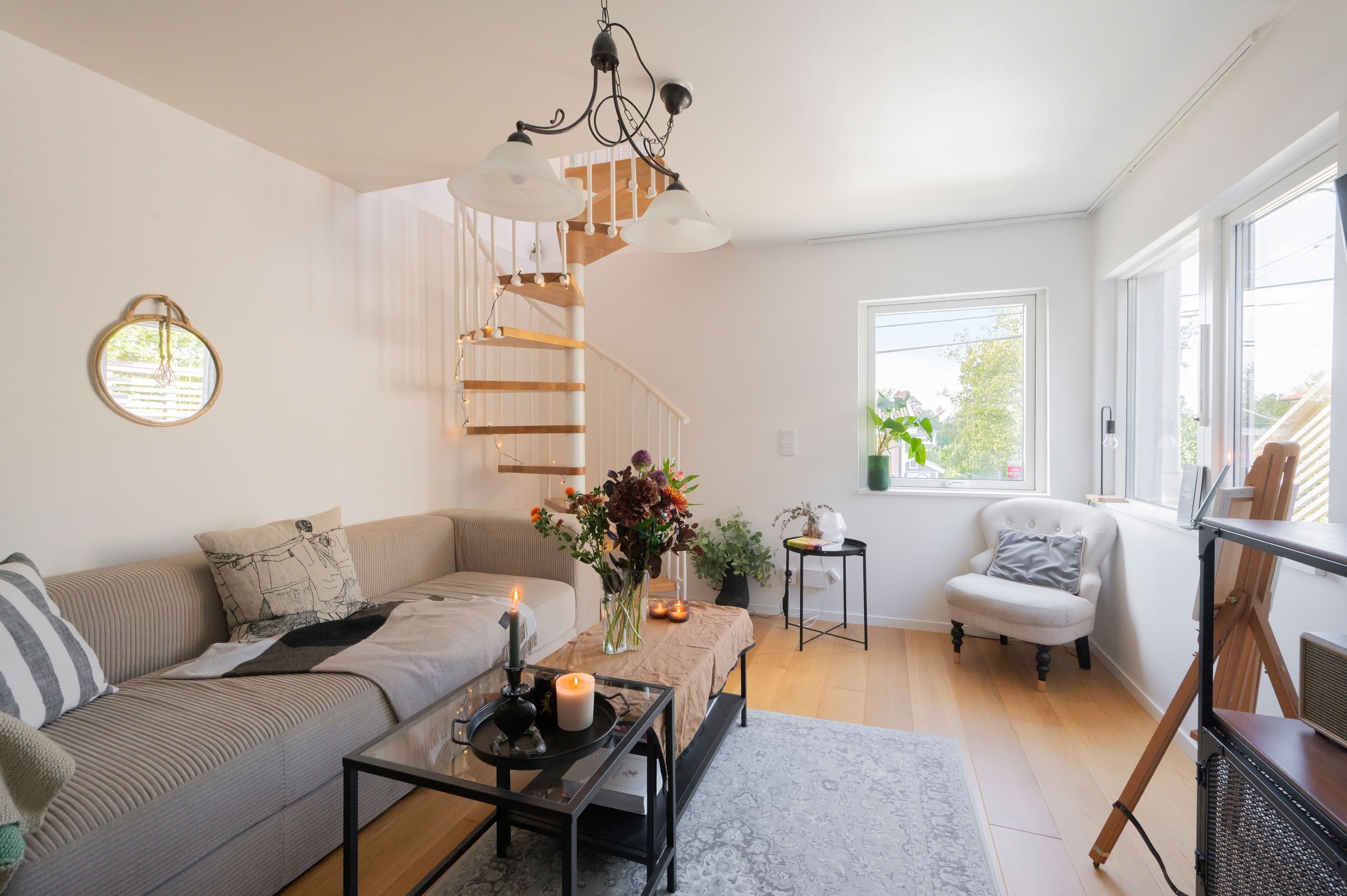 Med sin välgenomtänkta planlösning, genomgående stilrena materialval och effektiva uppvärmningen, är detta ett boende som erbjuder både komfort och funktion och är en möjlighet att ha sitt egna boende utan grannar vägg i vägg. Takhöjden på 2,20 meter ger en luftig känsla, samtidigt som de stora fönsterpartierna släpper in ett härligt ljus i hela bostaden.
