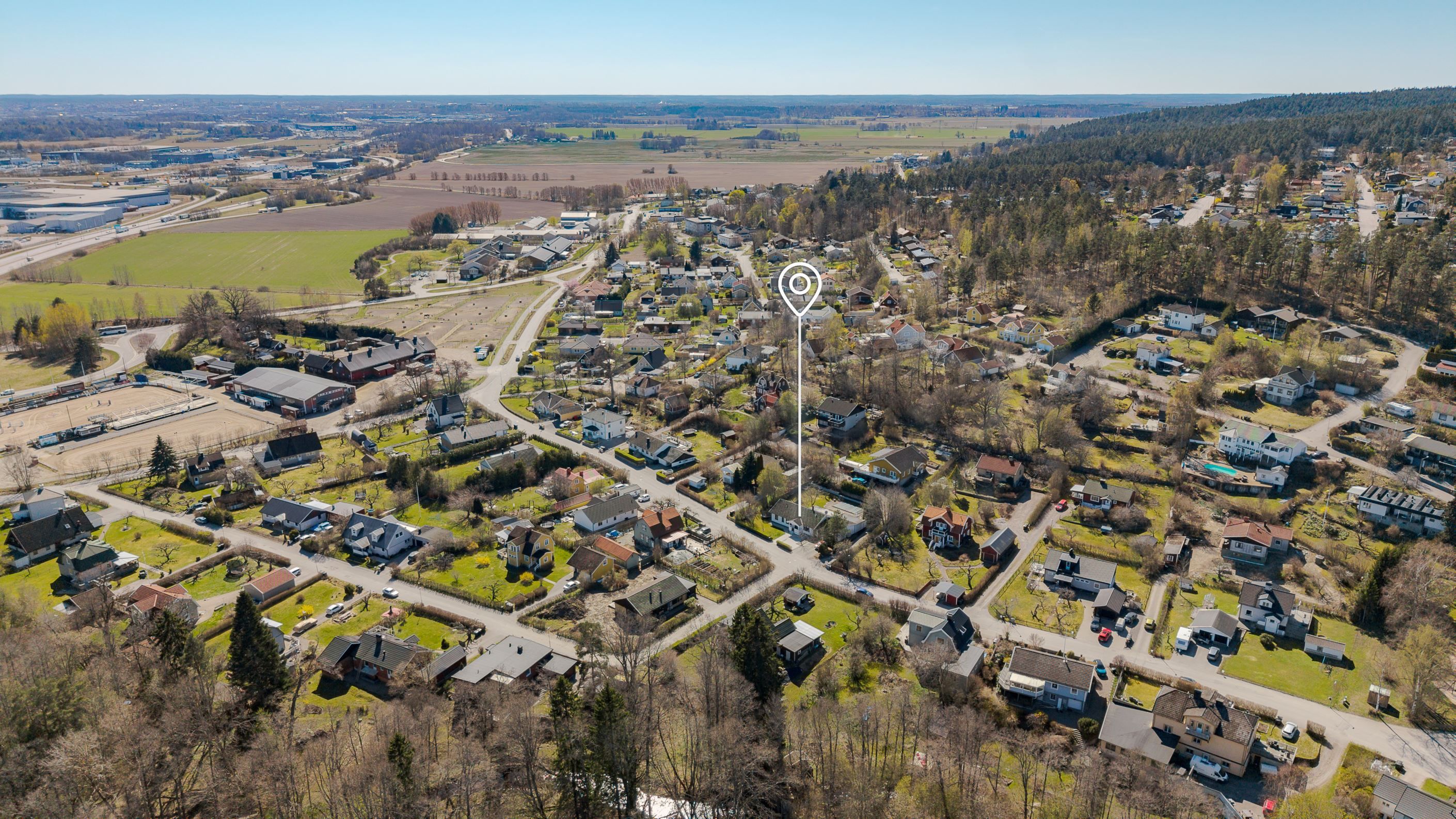 Här bor du naturnära och i ett mycket lugnt område, med direkt närhet till skogspromenader, motionsspår och sjöar som erbjuder både bad sommartid och vinteraktiviteter under årets kallare månader. Trots det lantliga och rofyllda läget är du aldrig långt ifrån stadens bekvämligheter.