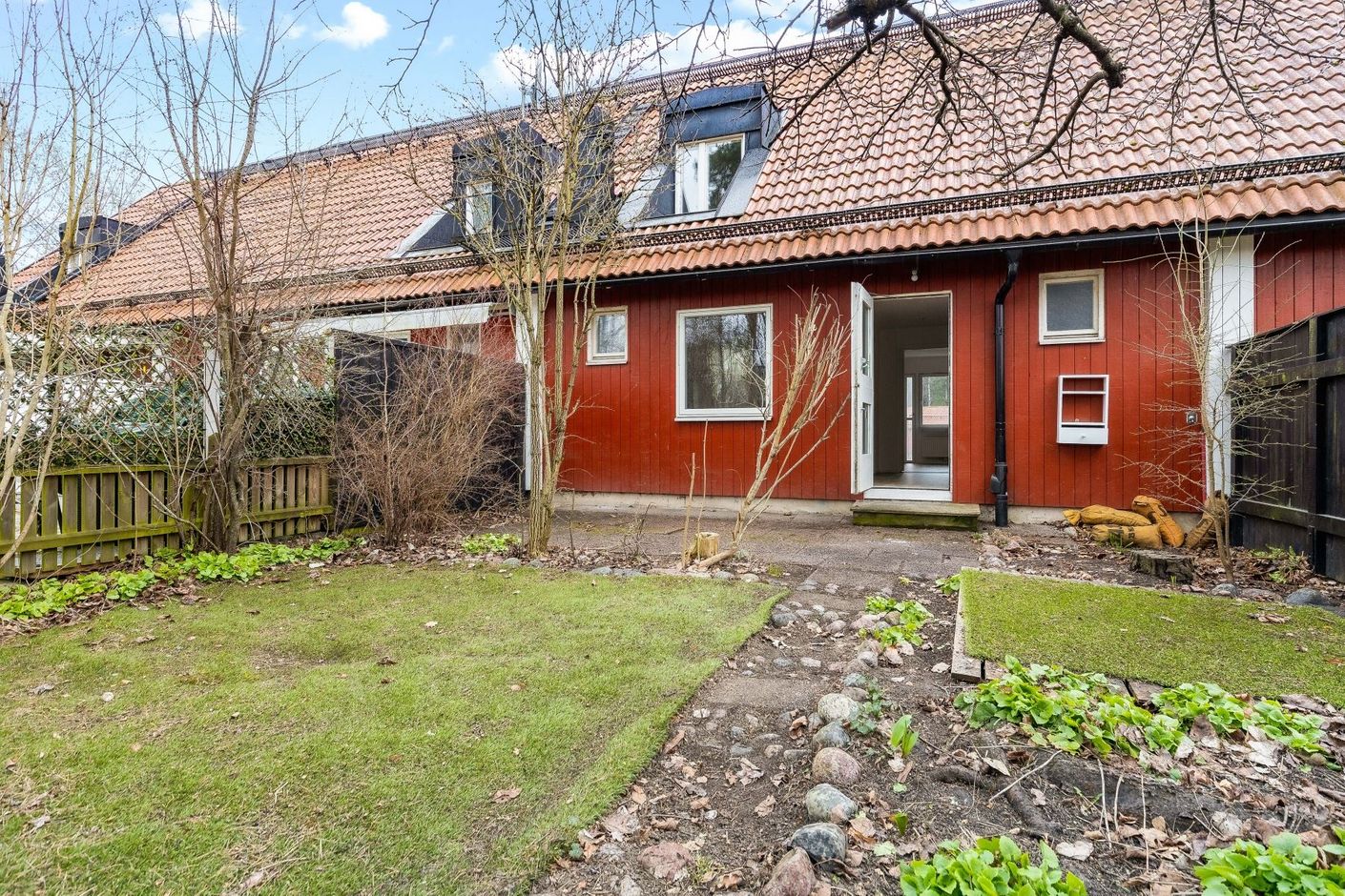 - Bostaden erbjuder 1 vardagsrum och 1 sovrum på det nedre planet tillsammans med ett badrum/tvättstuga, wc samt förråd. På det mellersta planet finner du ett helt nyrenoverat badrum samt kök med stor matplats. På detta plan finns 2 stora rum som kan användas som vardagsrum, matsal eller sovrum. På det översta planet finns ett öppet vardagsrum med takfönster, förråd samt 2 rymliga sovrum. På husets framsidag finns en stor uteplats i sydost-läge mot föreningens trivsamma gård. Från det mellersta planet når du husets andra uteplats i nordväst-läge mot grönskande omgivning.