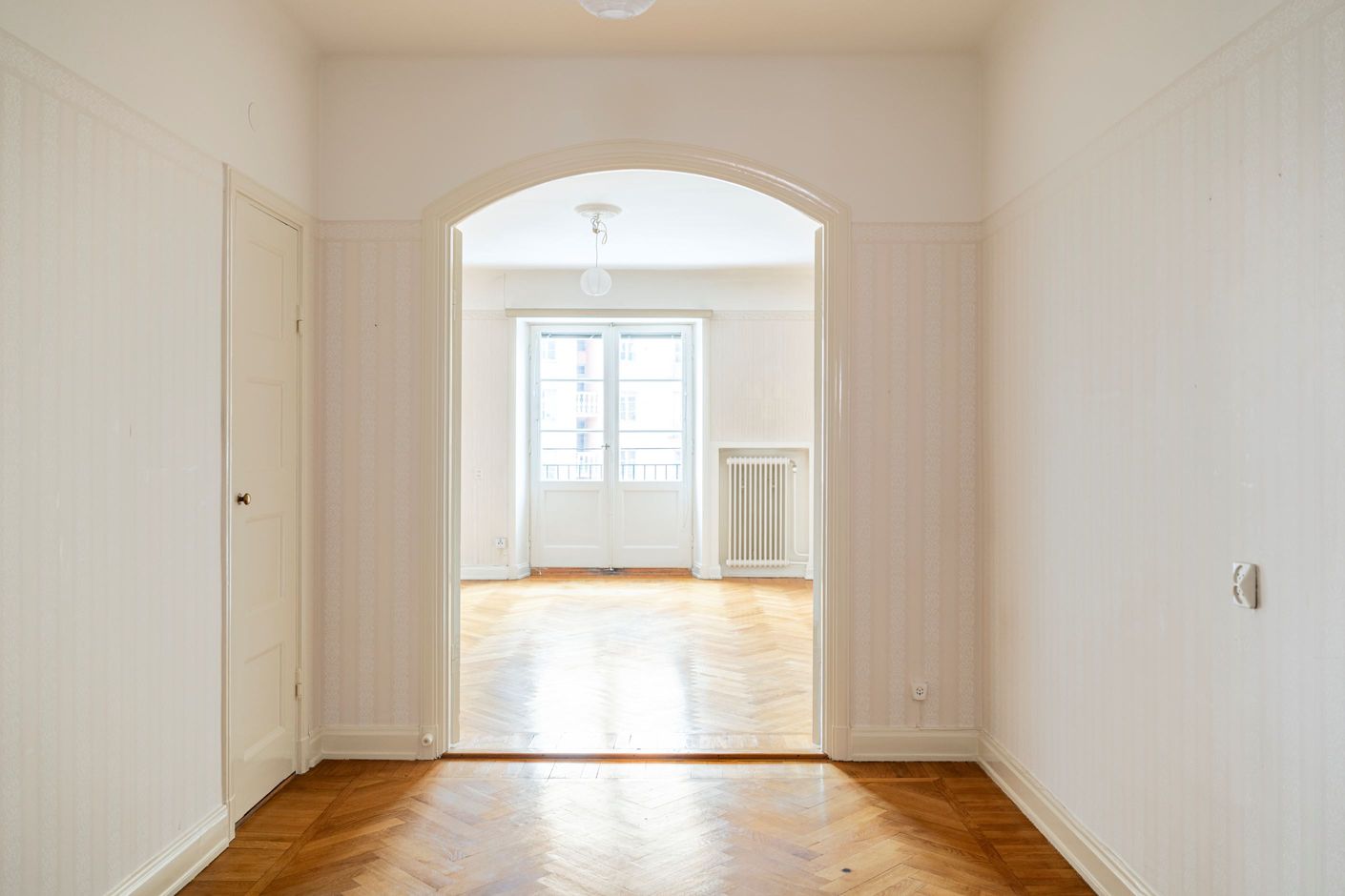 Det stora sovrummet rymmer även en separat del som lämpar sig utmärkt som hemmakontor. Köket kompletteras av ett separat matrum som även kan nyttjas som extra sovrum, alternativt integreras för den som önskar en mer öppen planlösning. Vidare finns ett luftigt vardagsrum med fransk balkong mot den grönskande gården samt en stor, möblerbar hall.