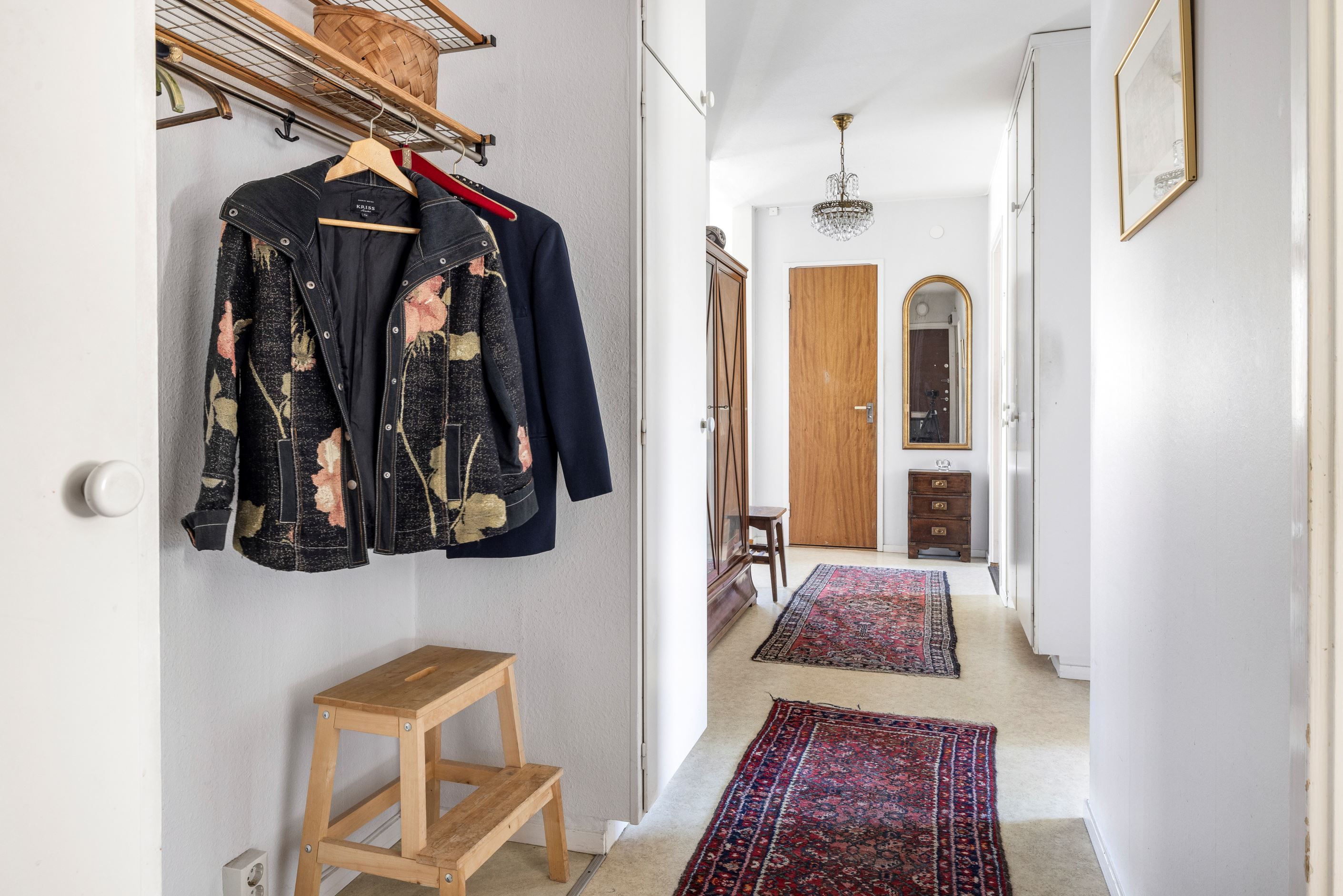 Ljus och välplanerad hörnlägenhet med ett attraktivt läge. Den generösa inglasade balkongen blir ett extra rum större delen av året och bjuder på härligt solläge med utsikt över föreningens grönskande och rofyllda innergård. Här bor du med ett fint ljusinsläpp från flera väderstreck och en smart planlösning som skapar både rymd och funktion – ett hem att trivas i från första stund. Bostaden ligger bekvämt en halv trappa upp från entrén med smidig access men ändå högt nog för att slippa insyn.