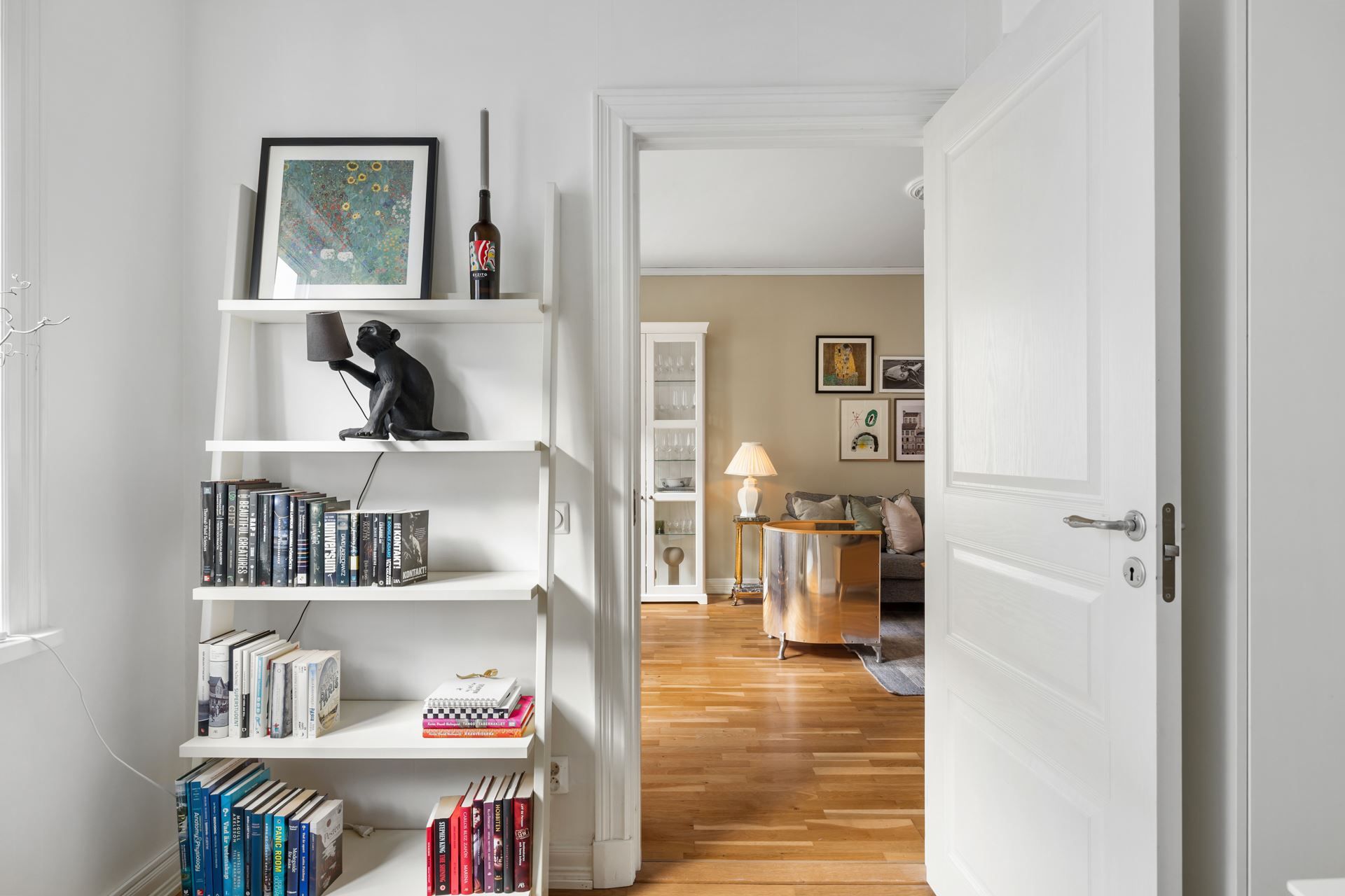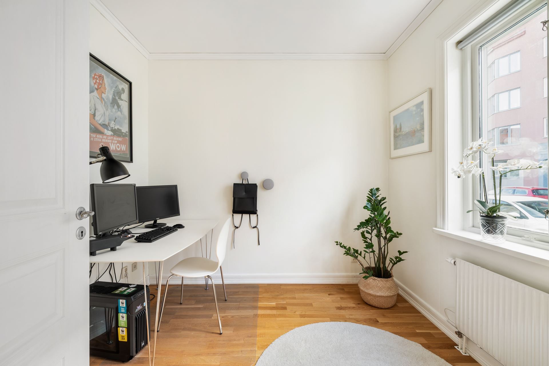 Väggarna är genomgående släta i lägenheten och på golvet vilar ett stilrent parkettgolv. Högt i tak vilket upplevs rymligt, här är det bara att flytta in! Solig gemensam innergård som är ett måste att nyttja under sommarmånaderna eller en härlig höstkväll.