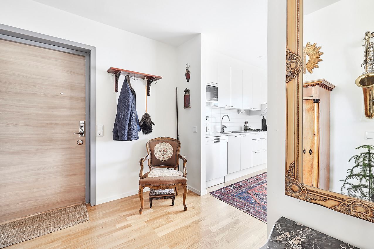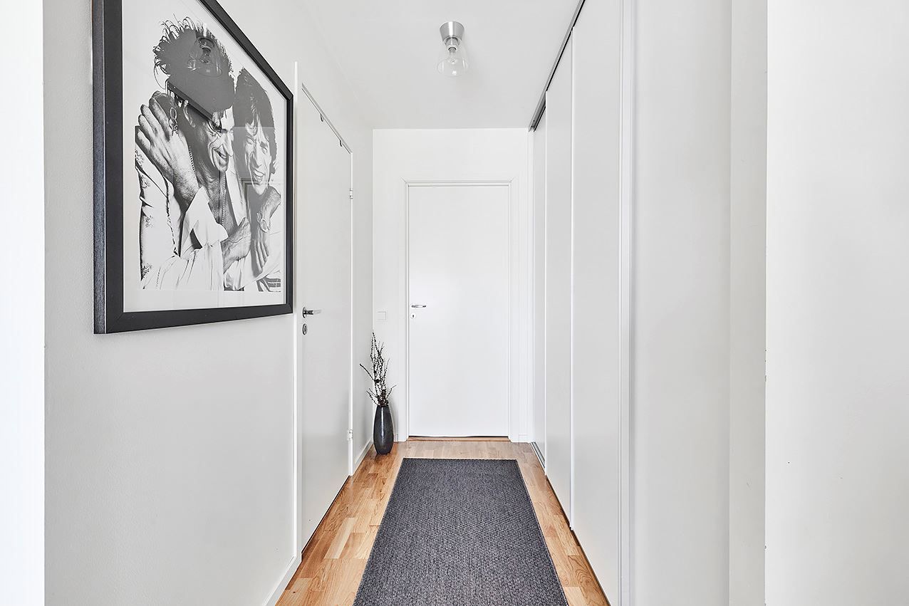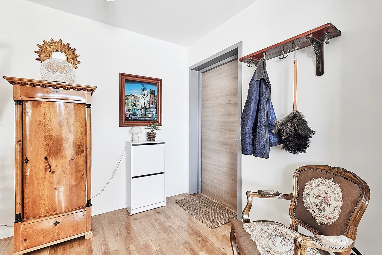 Interiört finner du materialval av hög kvalité, välplanerade ytor in i minsta detalj för praktiska lösningar, god förvaring och flexibel möblering. En välkomnande hall som öppnar upp mot både kök och vardagsrum och möjliggör ett härligt cirkulärt rörelsemönster. Här finns avhängningsmöjligheter direkt till vänster.