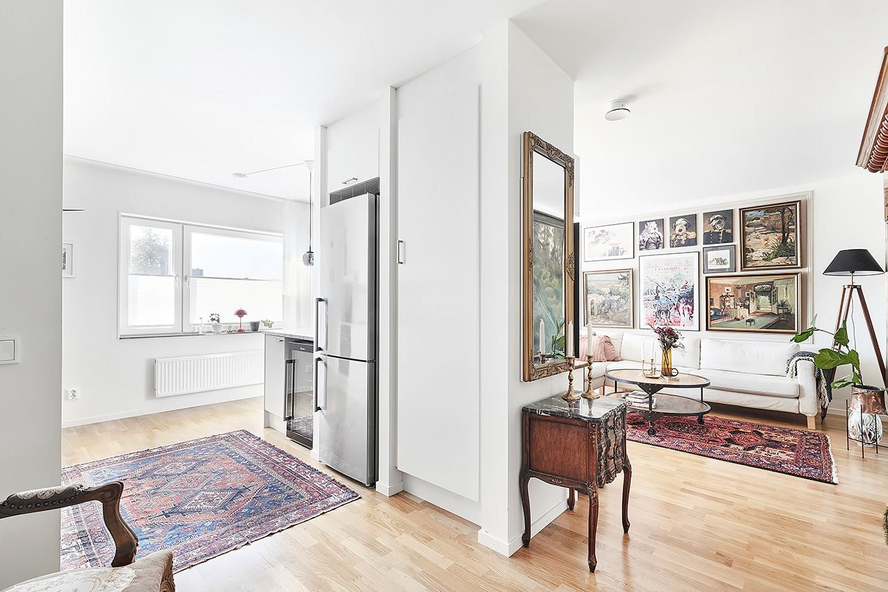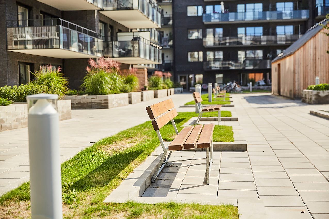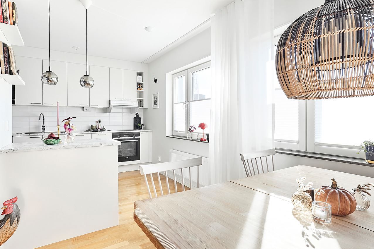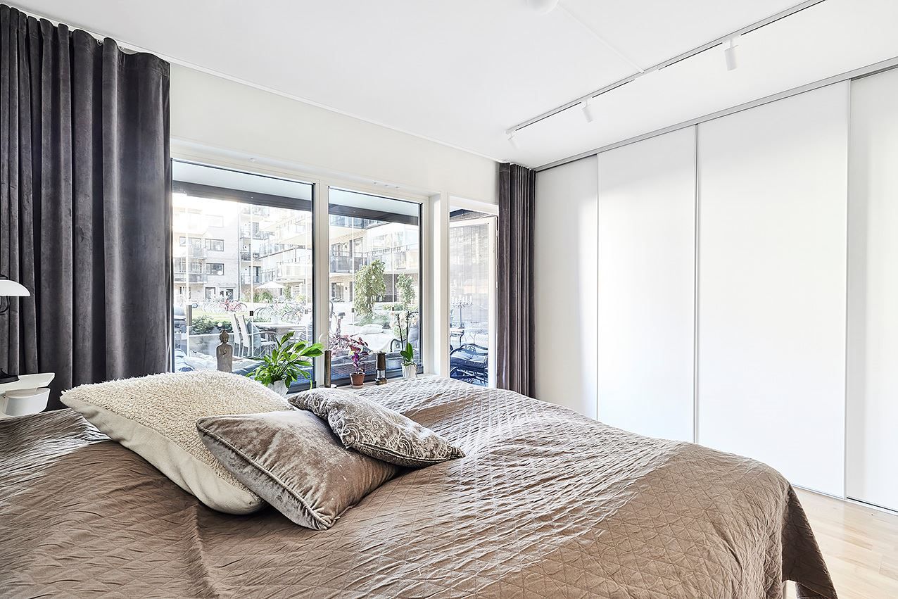 Köket är ett fint vitt kvalitétskök som öppnar upp mot allrummet och de sociala ytorna. Köket är även utrustat med köksö och vinkyl och är som gjutet för socialt häng! Sovrummet är välplanerat och stort vilket möjligör god möblering med både säng och skrivbord om så önskas. Även här finns mycket förvaring och här når du även den inglasade balkongen och uteplatsen mot den moderna och grönskande innergården. Här blir grillkvällarna både många och långa under sommarhalvåret!