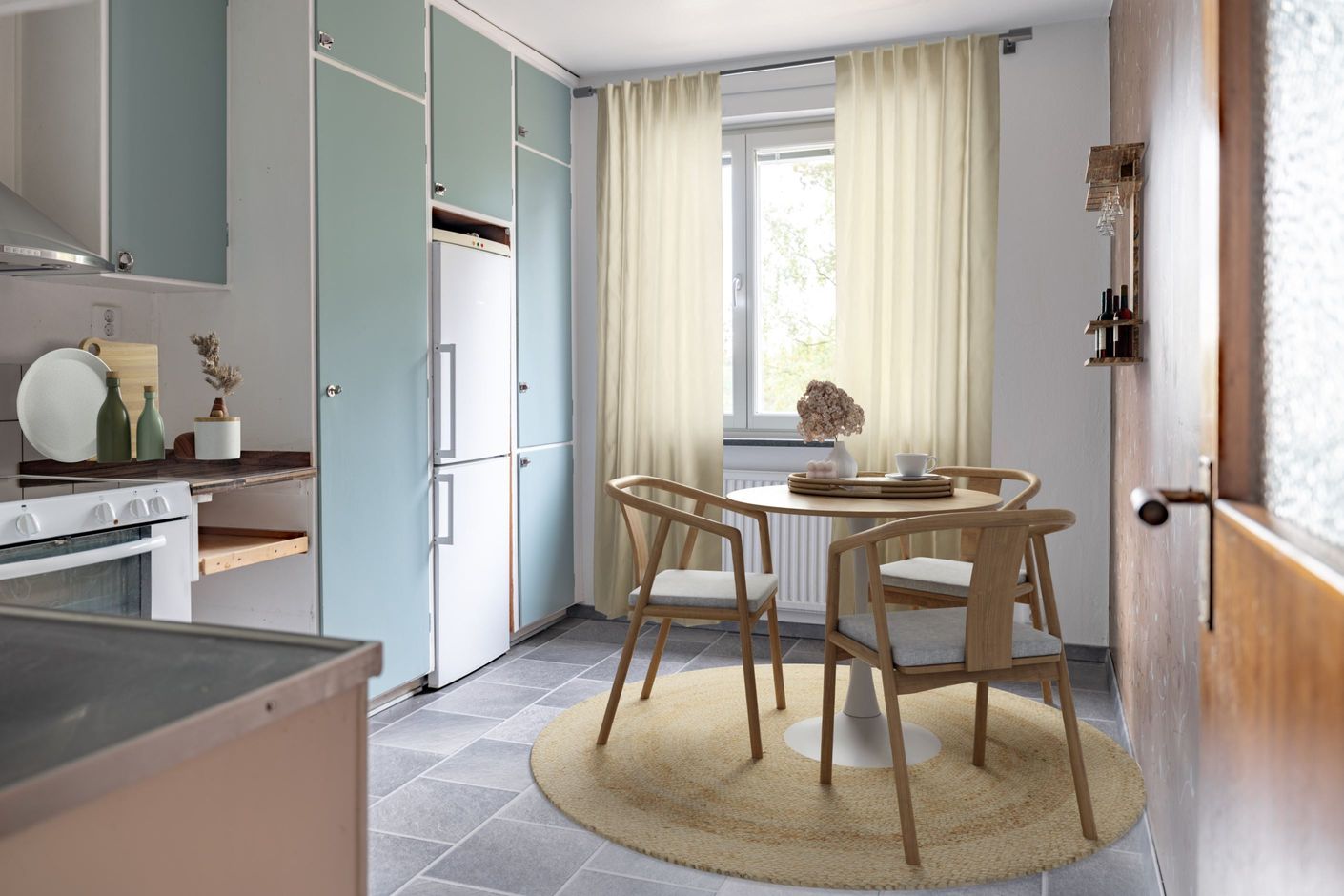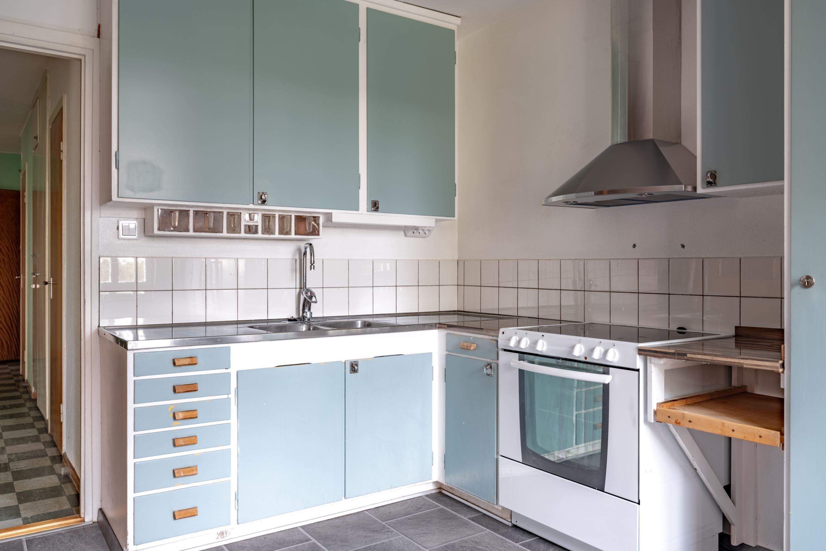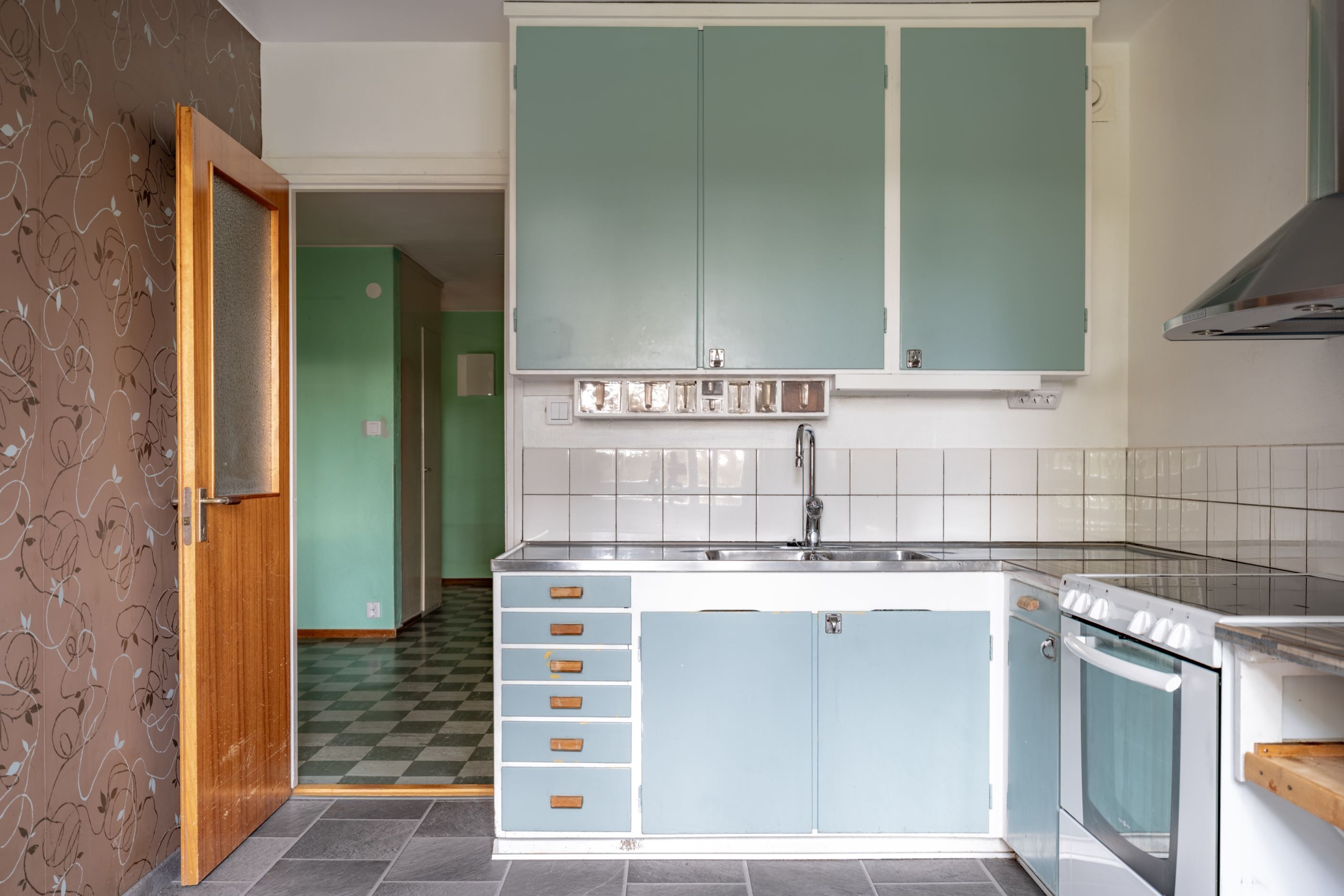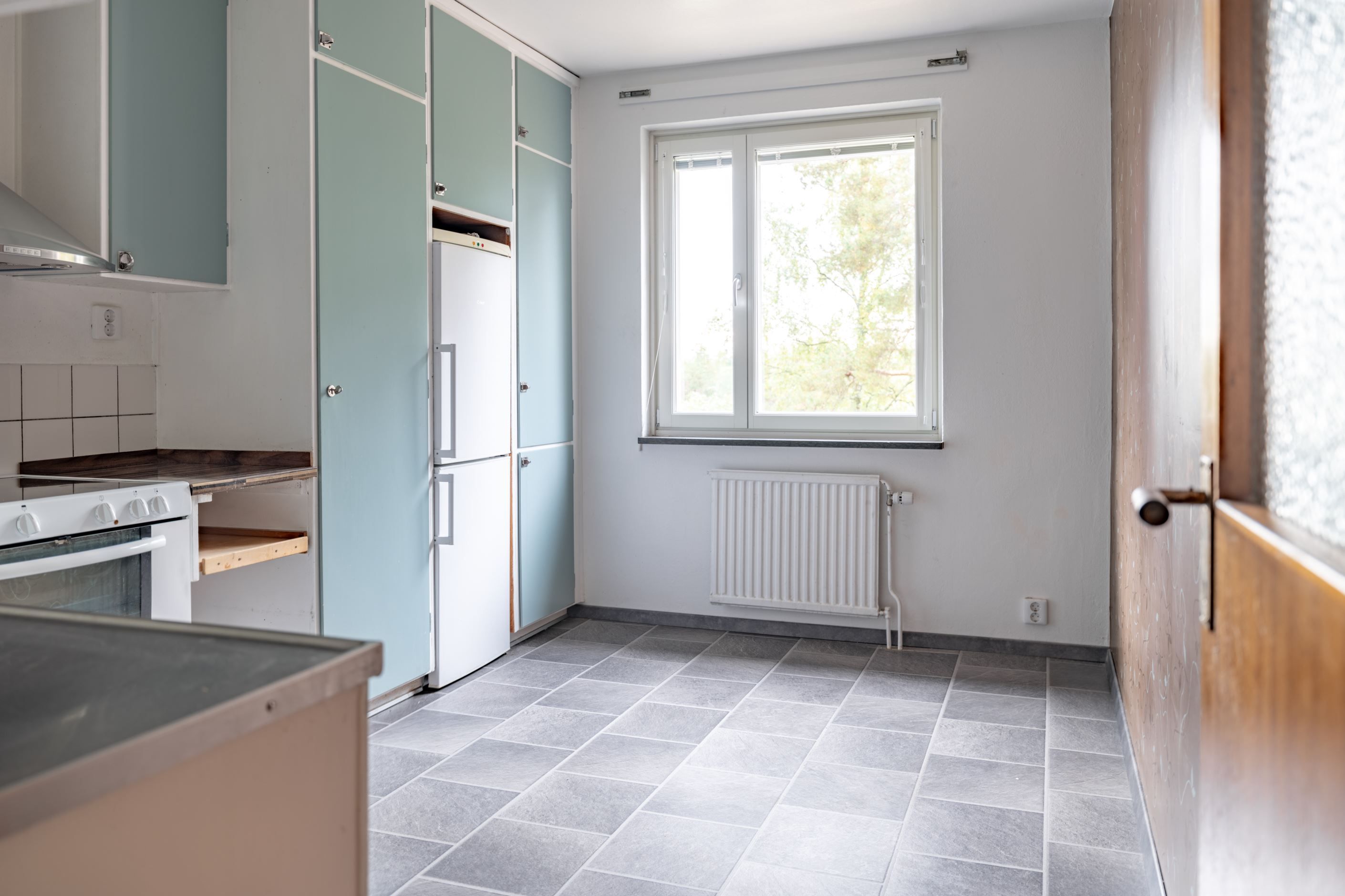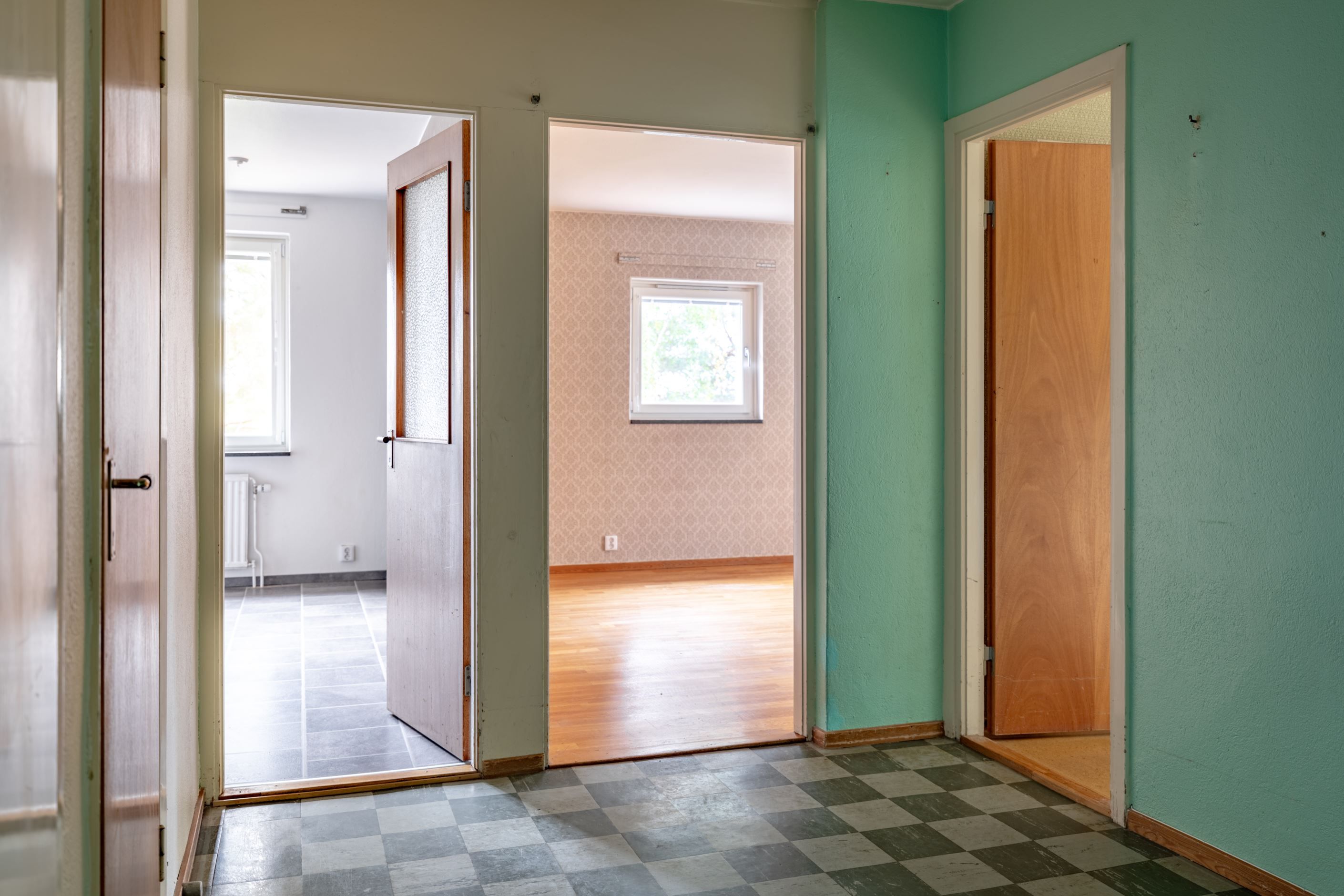 Bostaden är i behov av renovering, vilket ger en fantastisk möjlighet för dig som vill sätta din egen prägel och skapa ett hem helt efter eget tycke och smak. Kök och ytskikt är i original, och planlösningen lämpar sig väl för den som önskar öppna upp mellan kök och vardagsrum för en mer modern och social planlösning.