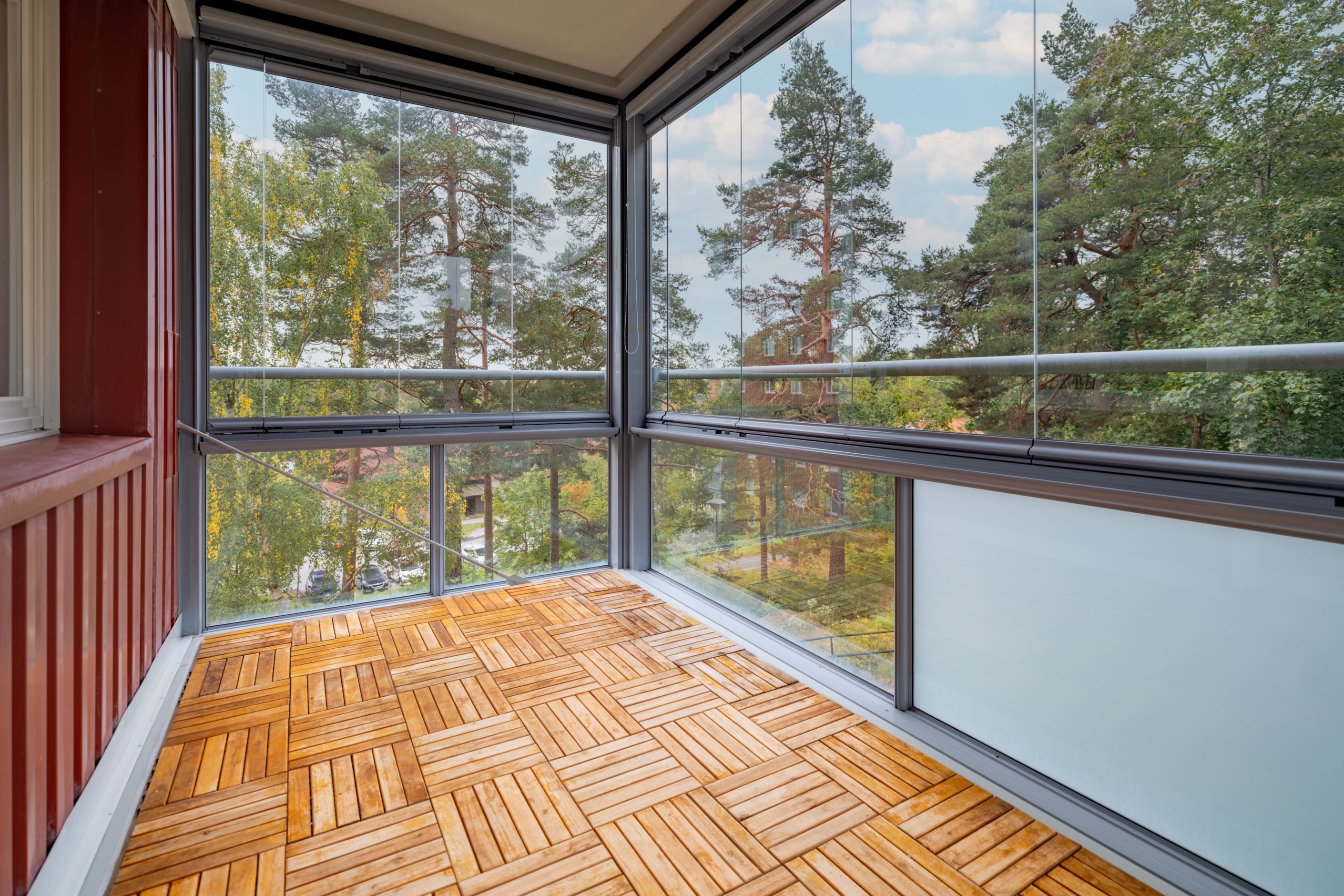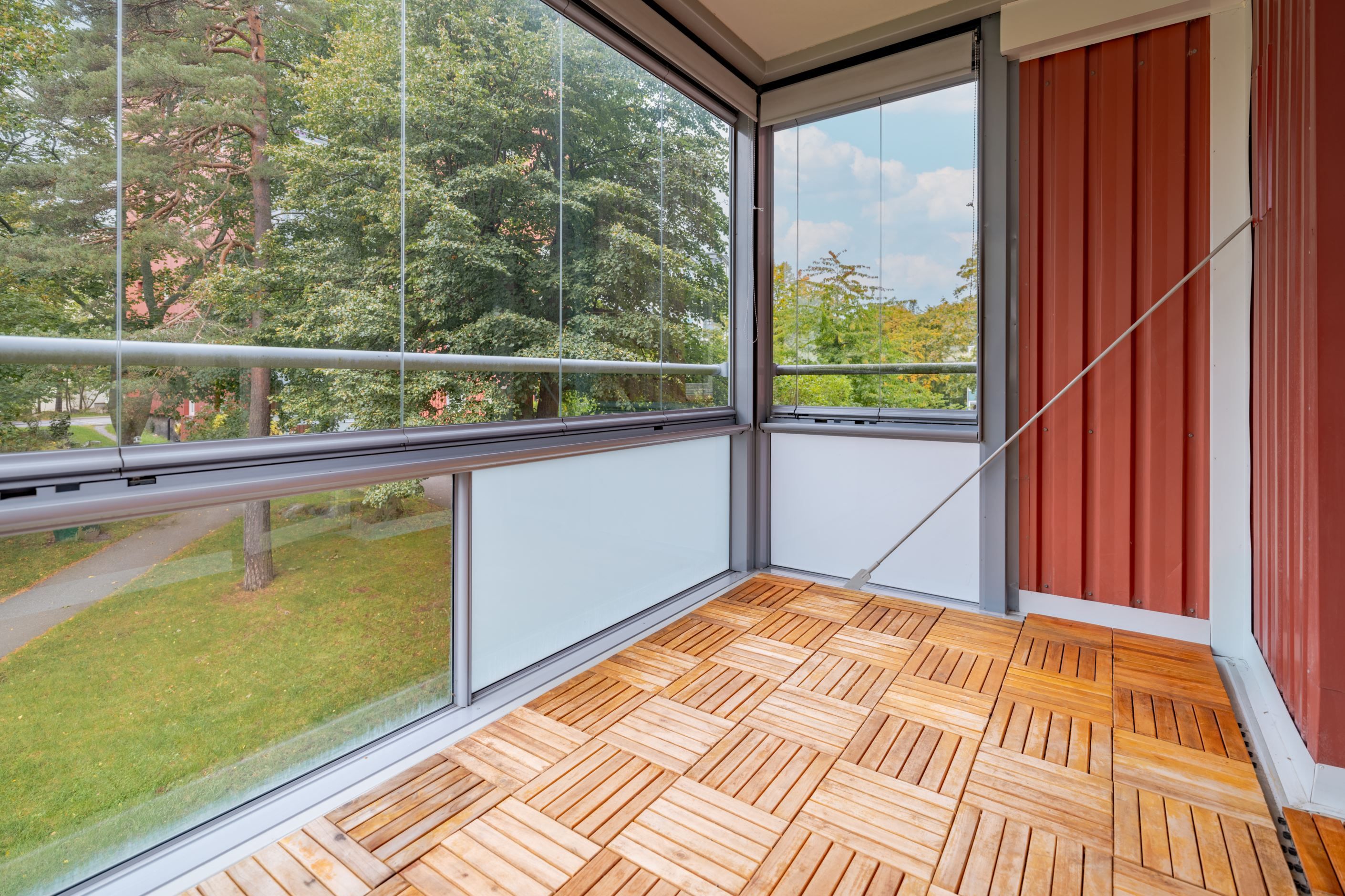 Ljus och luftig hörnlägenhet med härlig inglasad balkong i fritt västerläge
