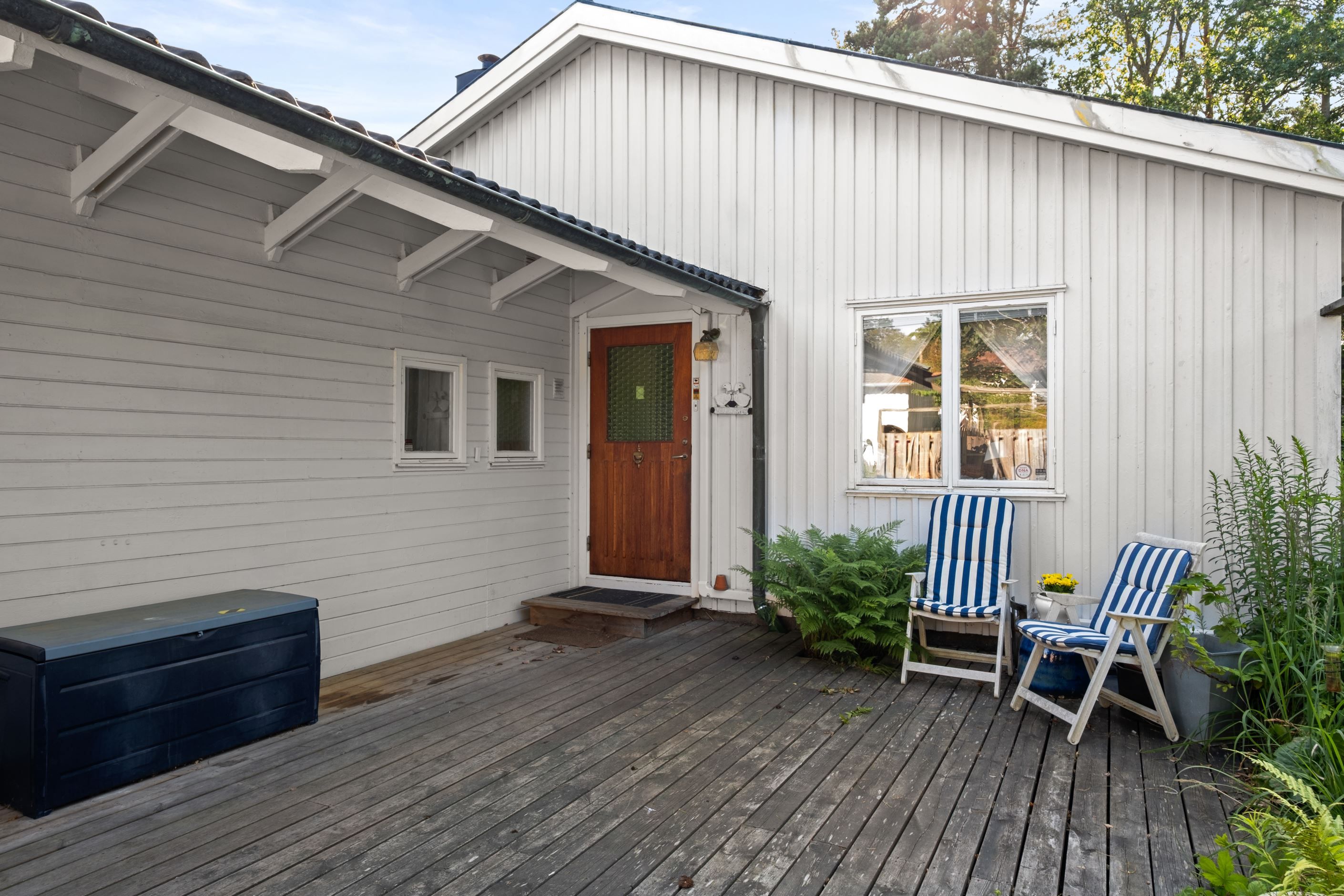 Bostaden erbjuder en hall, tre sovrum i bra storlek samt en praktiskt placerad WC. Hemmets naturliga samlingspunkt är det ljusa vardagsrummet, där en kamin skapar extra mysfaktor under årets kallare månader. Vid entrén når du dessutom en stor altan som bjuder in till långa sommarmiddagar, grillkvällar och avkoppling i solen – med direktkontakt ut mot den härliga trädgården.