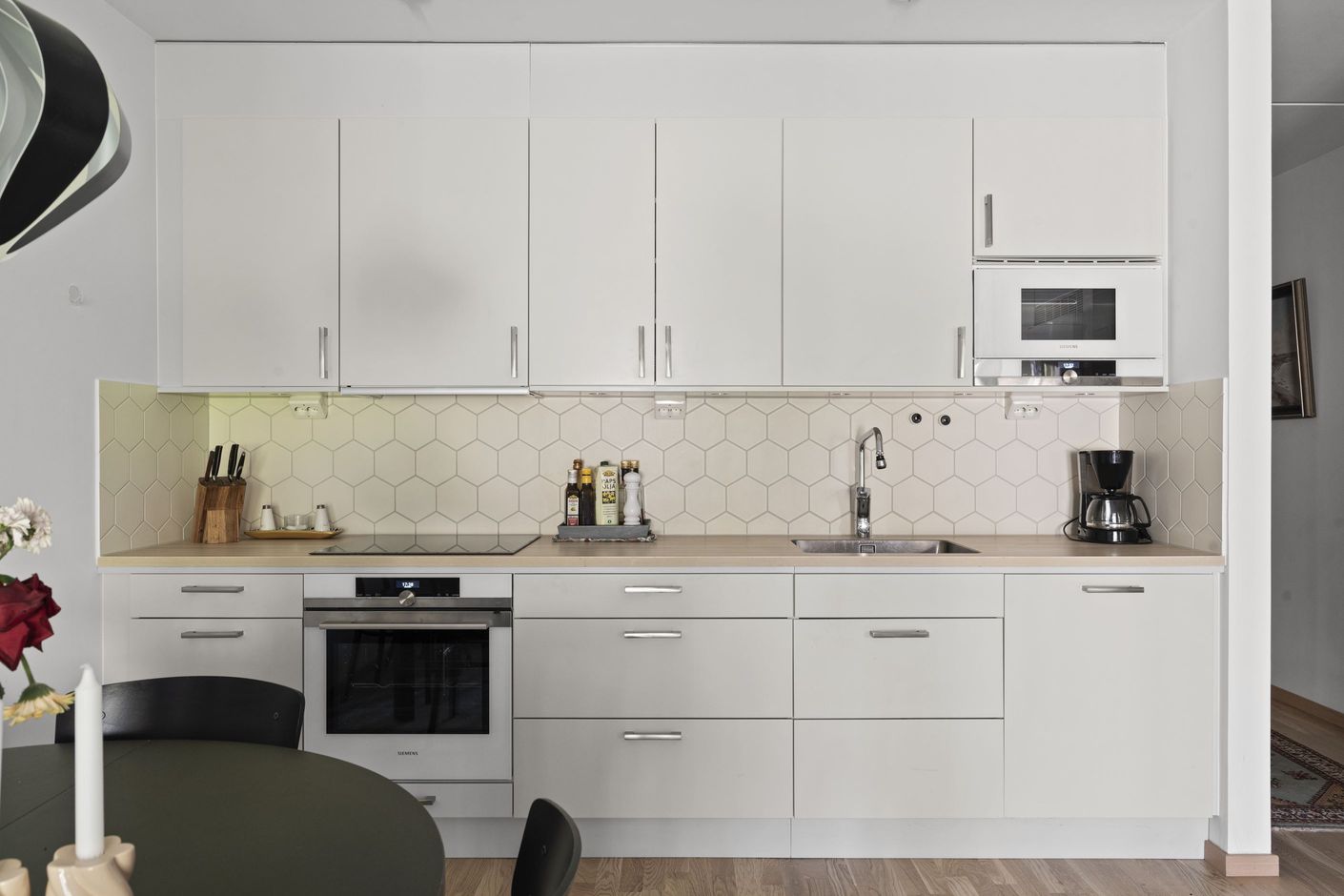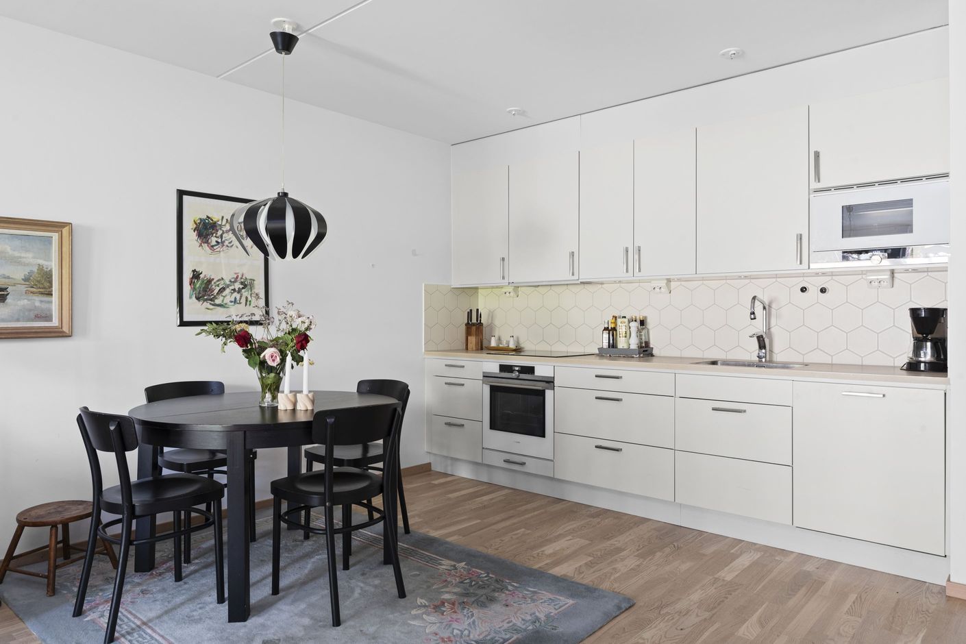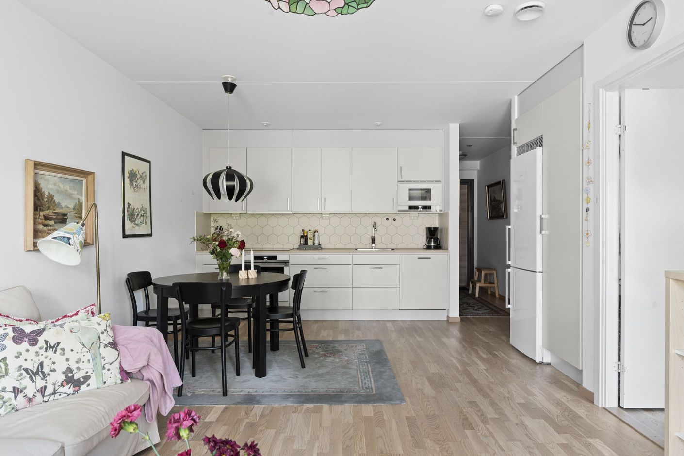 På bottenvåningen finner du denna fina och luftiga tvåa i Roslags-Näsby, idealisk för den som söker komfort och närhet till allt. Denna bostadsrätt erbjuder 49 kvadratmeter med öppen planlösning, där moderna och klassiska materialval harmoniserar. Det stilrena köket med exklusiva rostfria Siemens-vitvaror förenas med ett ljust vardagsrum, där stora fönster och glasdörrar leder ut till en rymlig altan.
