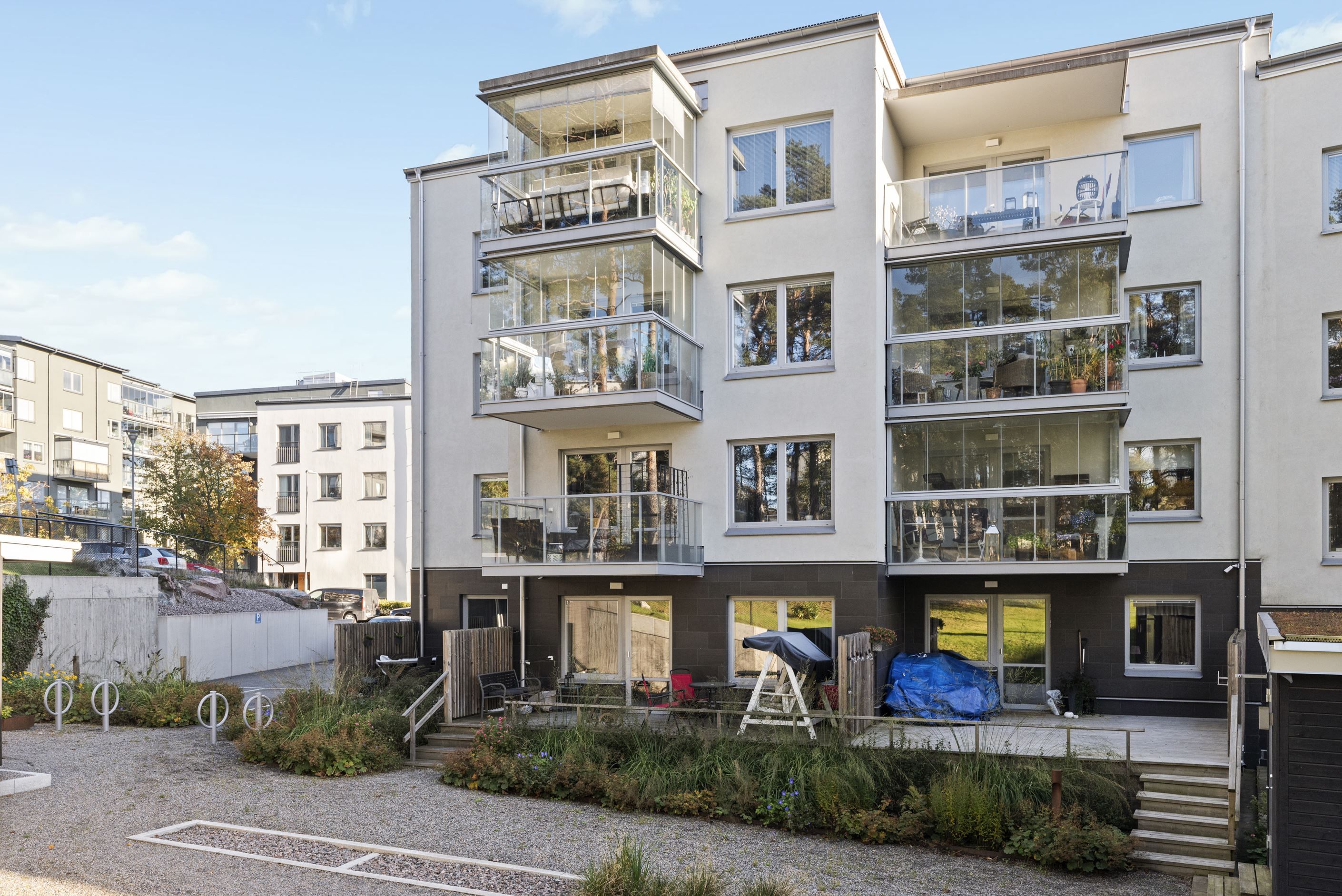 Den välskötta 55+ föreningen utstrålar kvalitet med låga driftskostnader och imponerande faciliteter som garage, cykelrum, bastu och övernattningslägenhet. Beläget lugnt och avsides, med en vacker innergård, har du ändå bara ett stenkast till Roslags-Näsbys centrum och utmärkta kommunikationer, inklusive Roslagsbanan och flera busslinjer. Här bor du bekvämt med allt du behöver inom räckhåll, från butiker och restauranger till naturområden och sportfaciliteter.