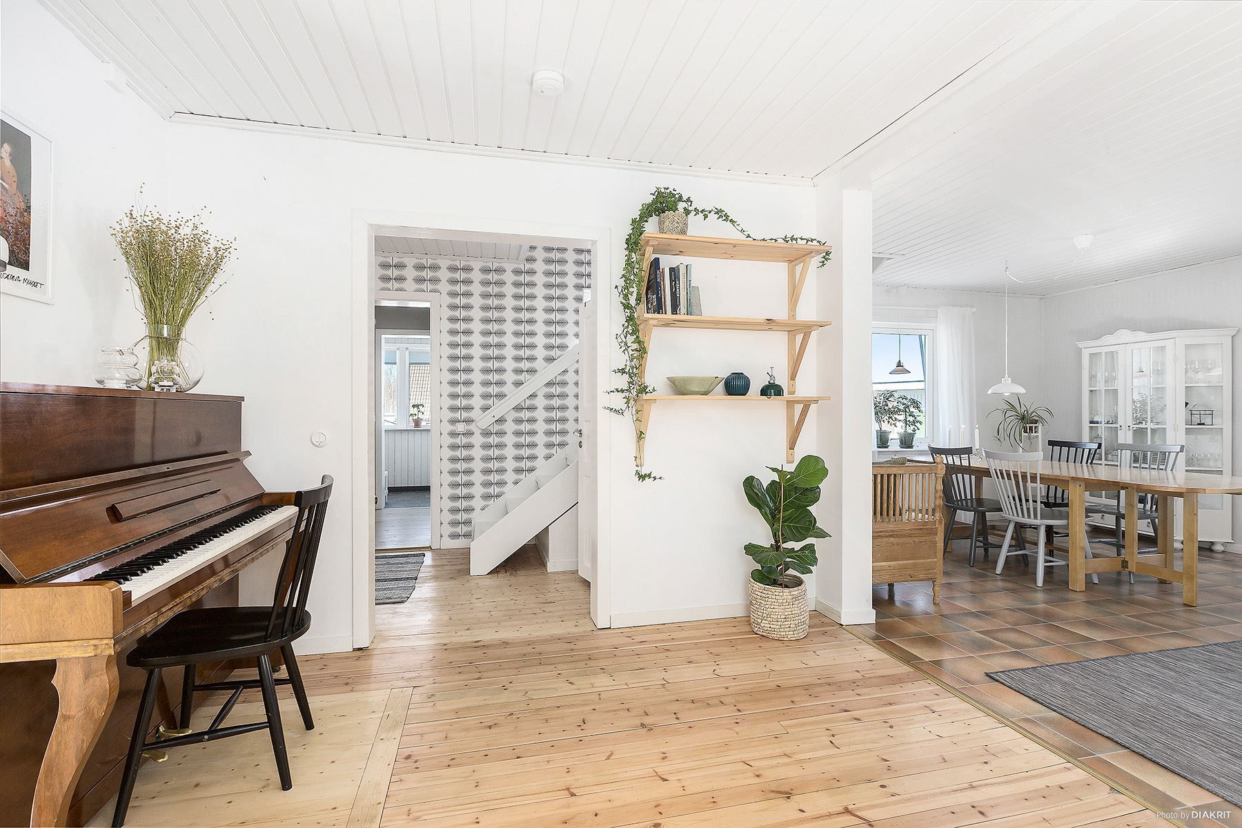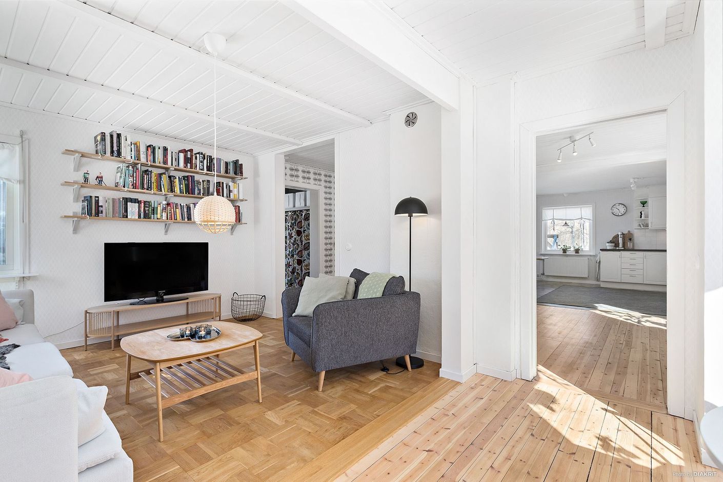 Välkommen till en charmig villa i ett bra läge i Kyrkbyn, beläget 5 minuters promenad från Stadsön och bussar. Husets innergård ligger i syd- västläge med sol hela dagen och hela kvällen, det är även denna del av tomten som vetter mot stora grönområden och skog. Huset har en trivsam nedre plan med charmiga plankgolv och stora samvaroytor. Intill köket finns även plats för stort matbord med plats för över 10 personer. Nedre plan inrymmer även ett badrum med klinker och golvvärme.