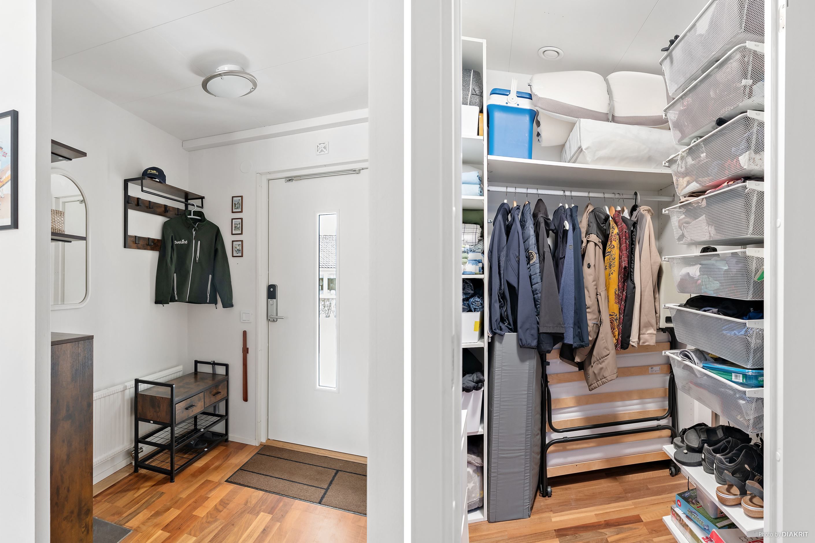 Redan när du kliver in genom den nya ytterdörren med modernt Yale-lås (installerad 2025) möts du av en ombonad och välkomnande känsla. Den genomtänkta planlösningen, de enhetliga ytskikten och de mjuka färgvalen skapar ett harmoniskt flöde genom hela bostaden. Hallen erbjuder goda avhängningsmöjligheter och härifrån leds blicken vidare genom bostaden, vilket förstärker känslan av ljus, rymd och hemtrevnad.