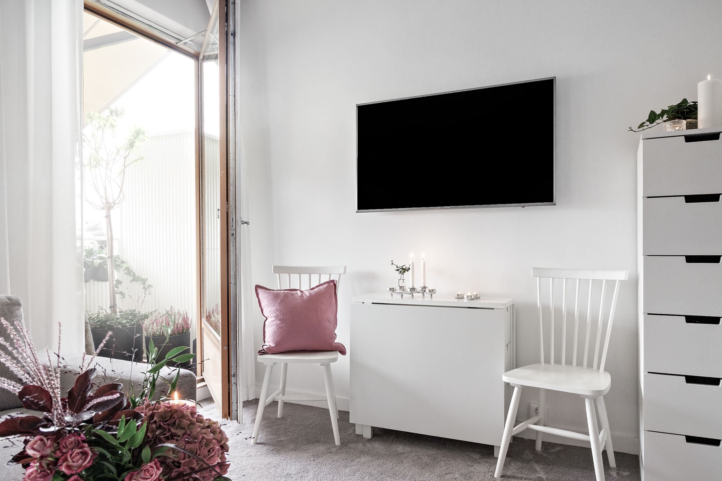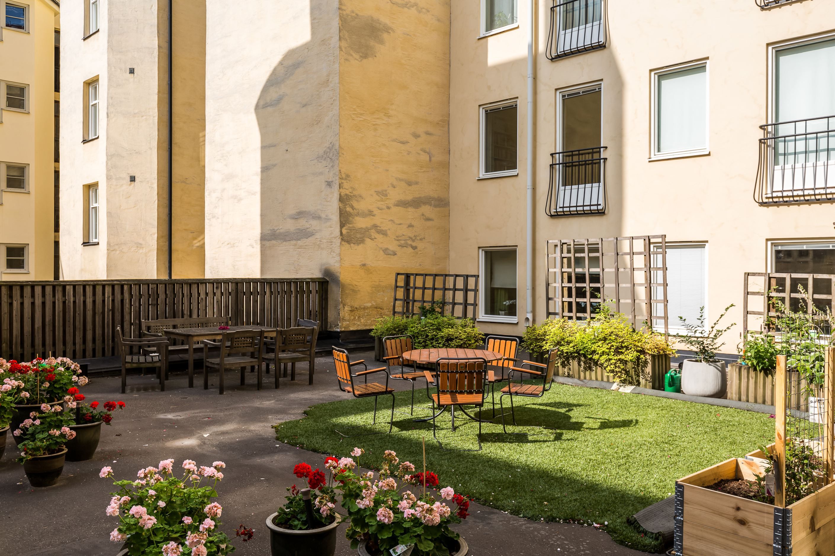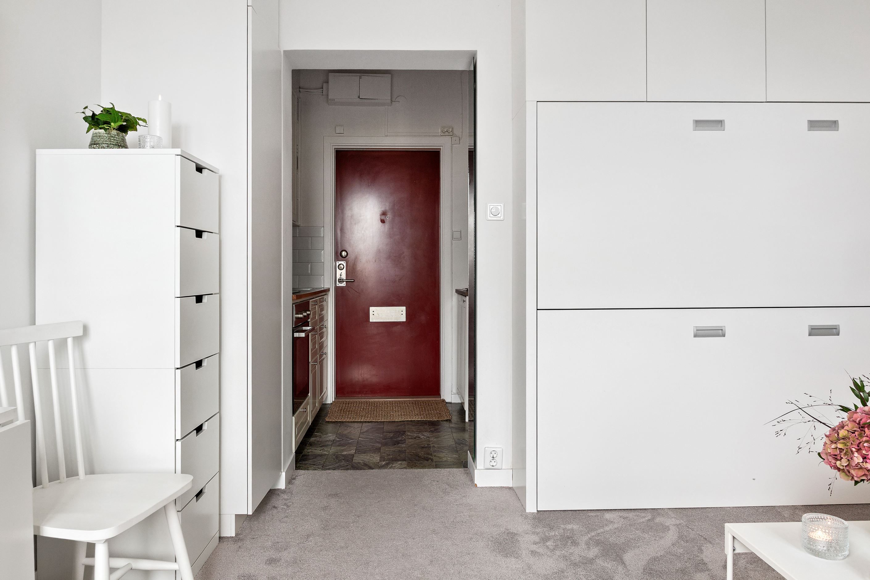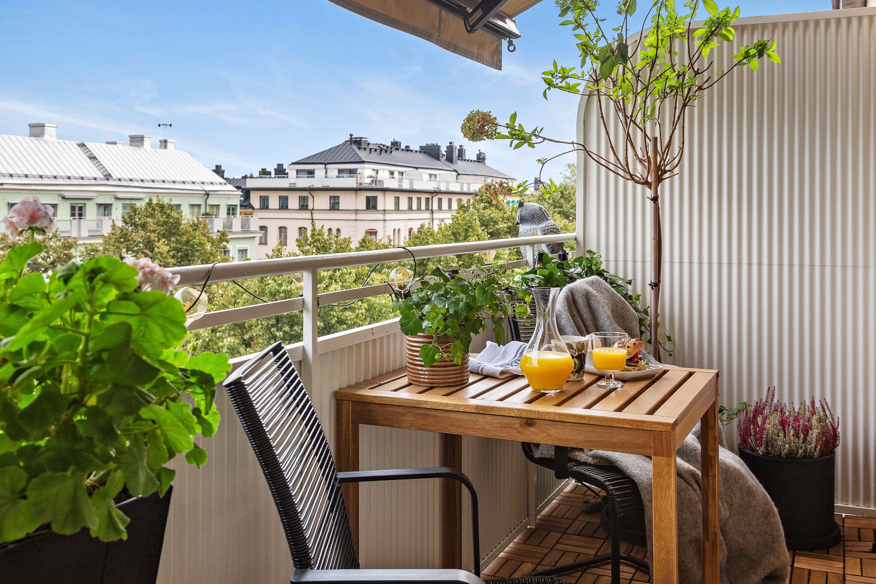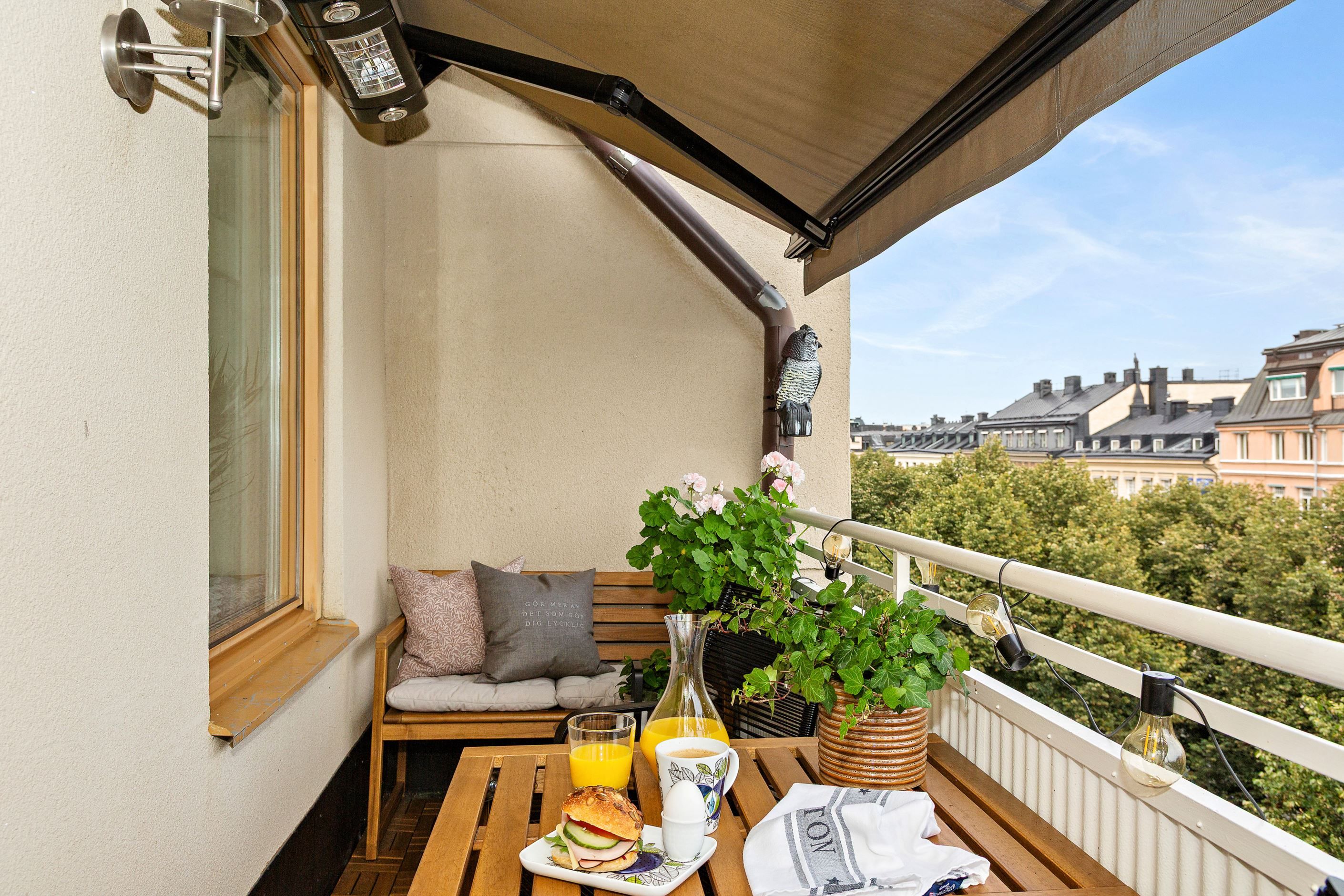 Utomordentligt väldisponerad lägenhet om 21 kvm med generös balkong och utsikt högt över trädtoppar och hustak.