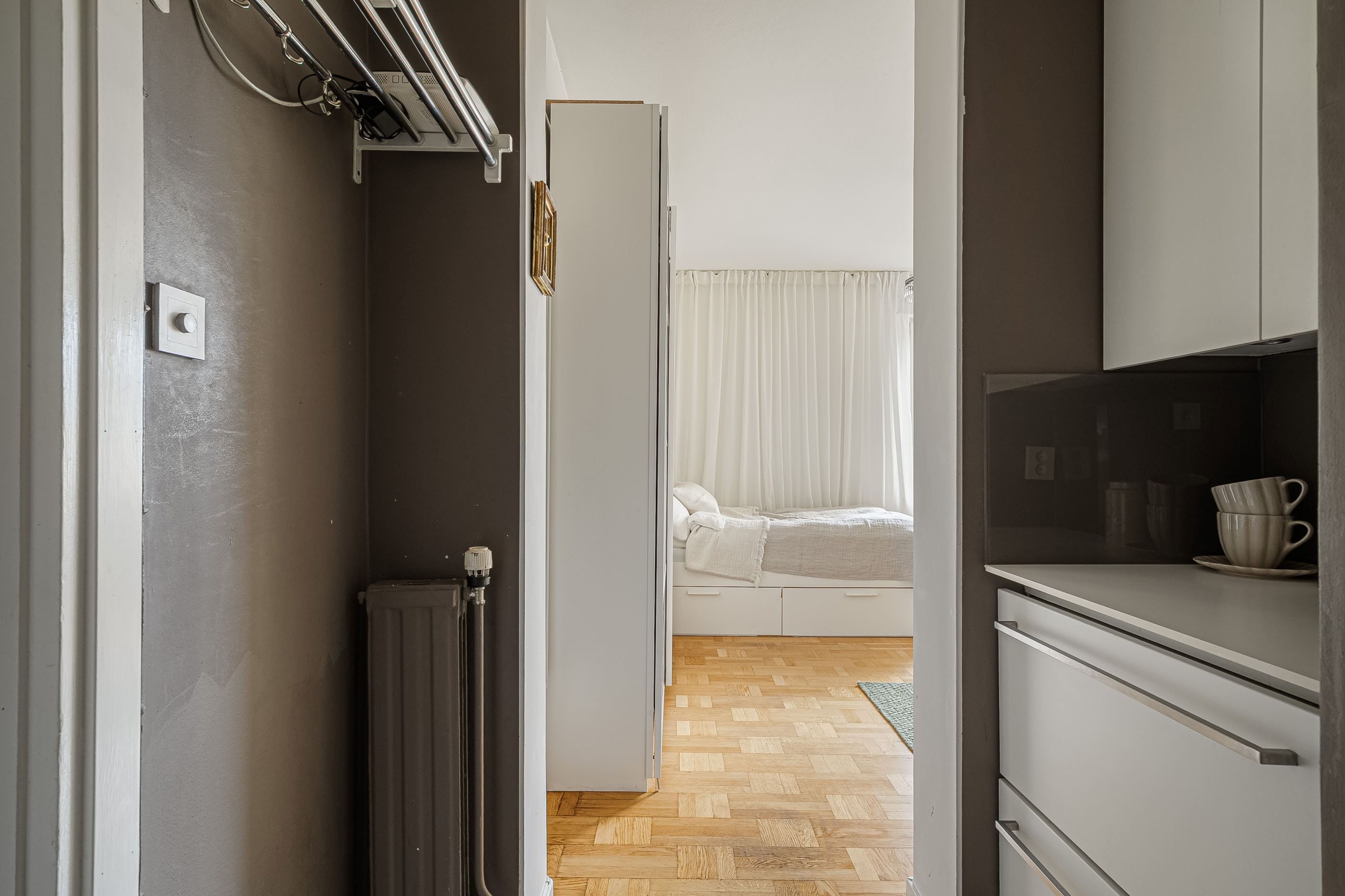 Välkommen till en charmig och välplanerad etta högt upp i huset på en av Stockholms mest eftertraktade adresser. Lägenheten bjuder på generös takhöjd och rofylld utsikt mot en lugn innergård.