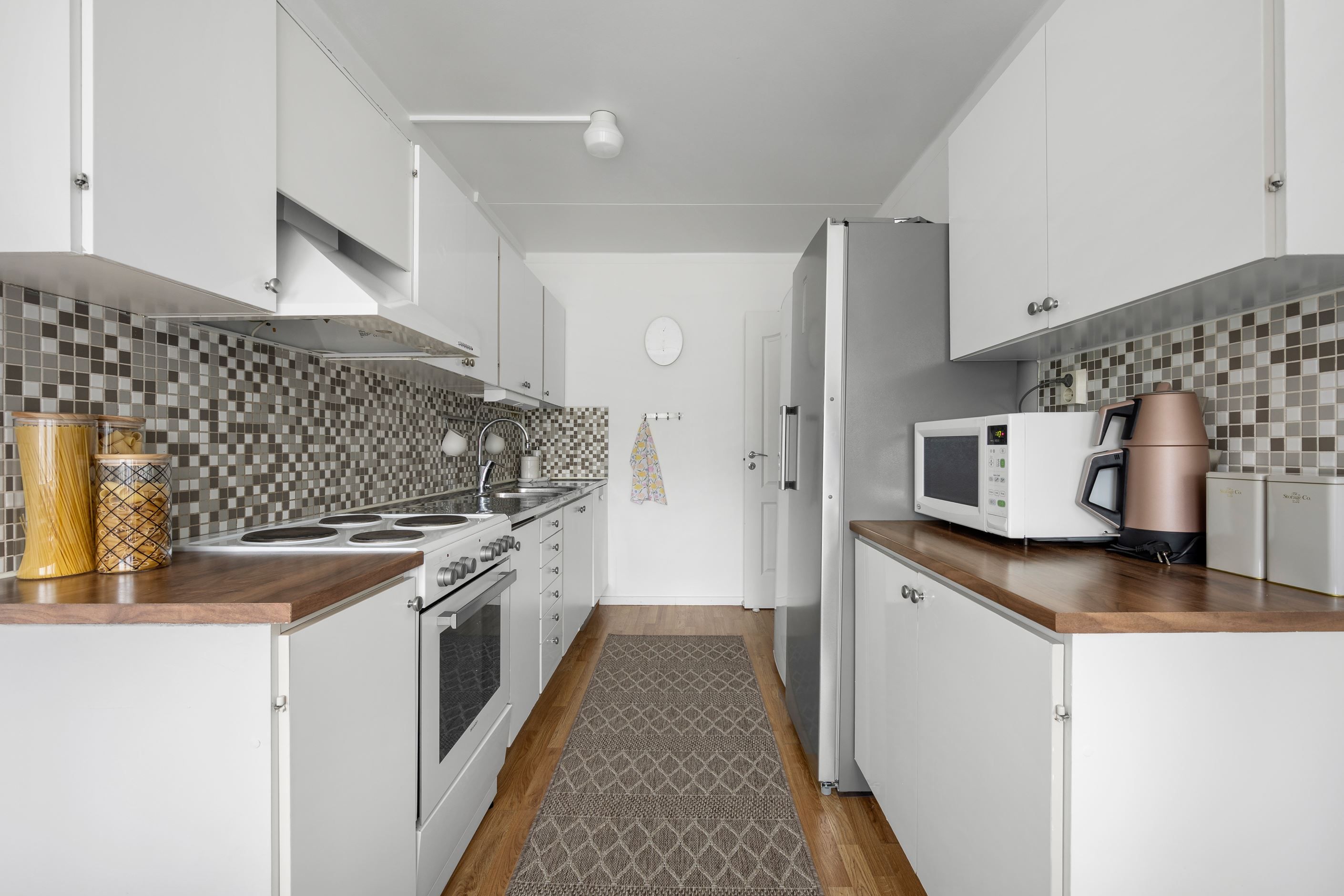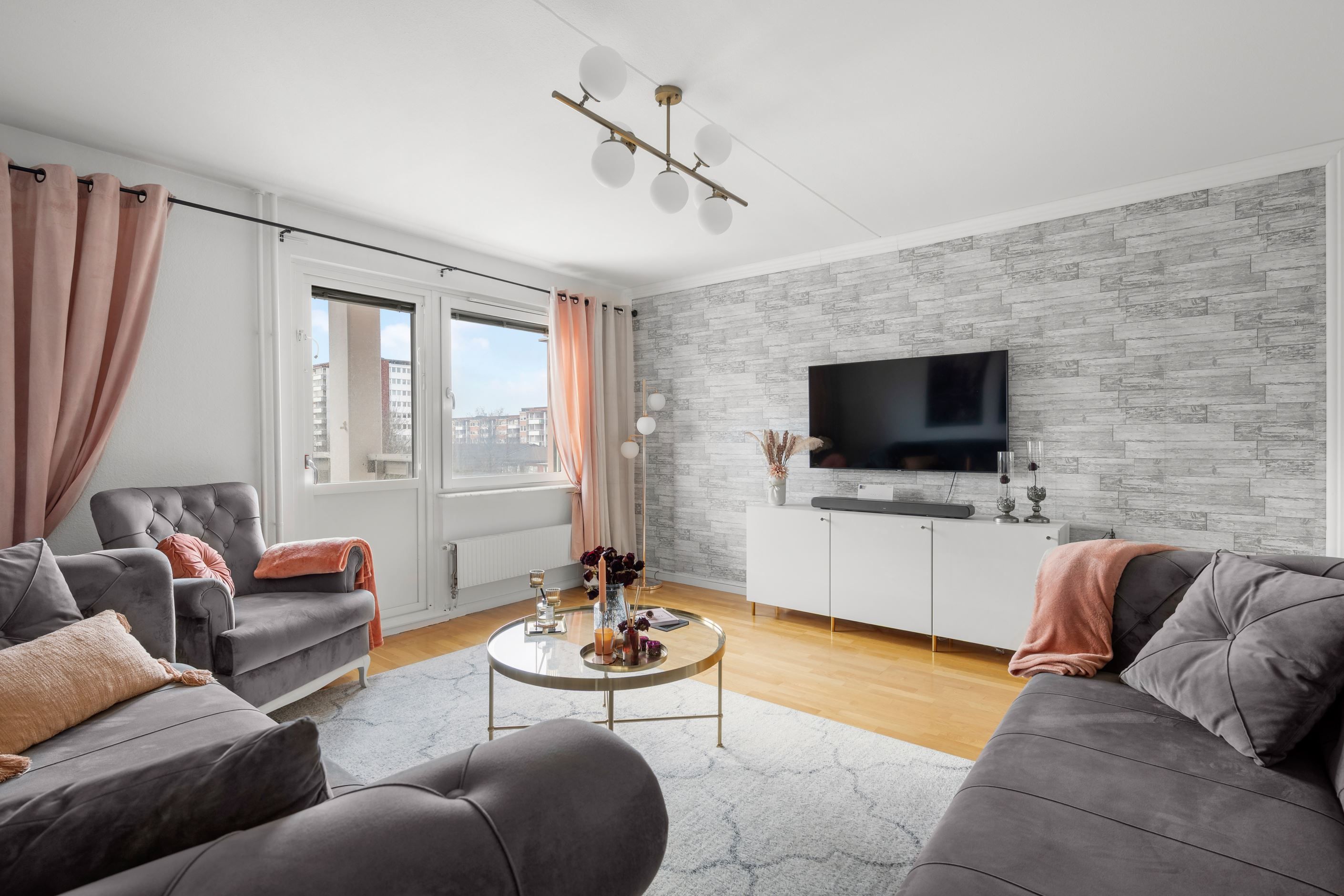 - Populär planlösning med separat kök och vardagsrum. Möjligt att göra en öppen planlösning eller göra om bostaden till en 4:a för den som önskar. 2 stora sovrum med trägolv och ljusa väggar samt platsbyggda garderober. Genomgående fina parkettgolv och ljust målade väggar. Vitt kök med stor kyl, frys samt diskmaskin. Stor hall med säkerhetsdörr samt tillhörande klädkammare. Modernt badrum med plastmatta och våtrumstapet i gråa kulörer samt plats för tvättmaskin. Möjligt att bygga om matplatsen till ett sovrum för den som önskar. Ljust vardagsrum med utgång till balkong i söderläge mot föreningens härliga innergård med grönska, grillplatser, fotbollsplan samt lekplatser!